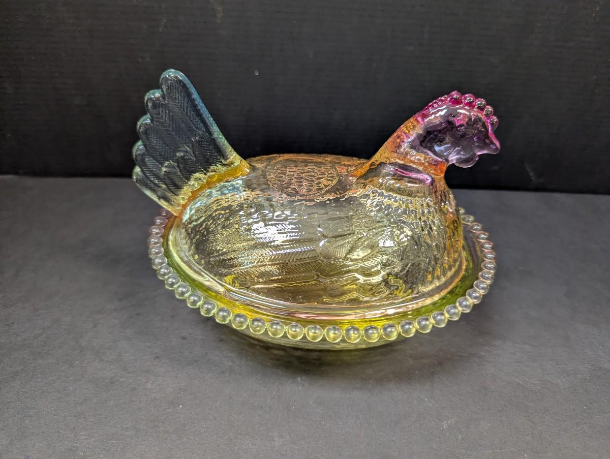 Rainbow Glass Nesting Hen