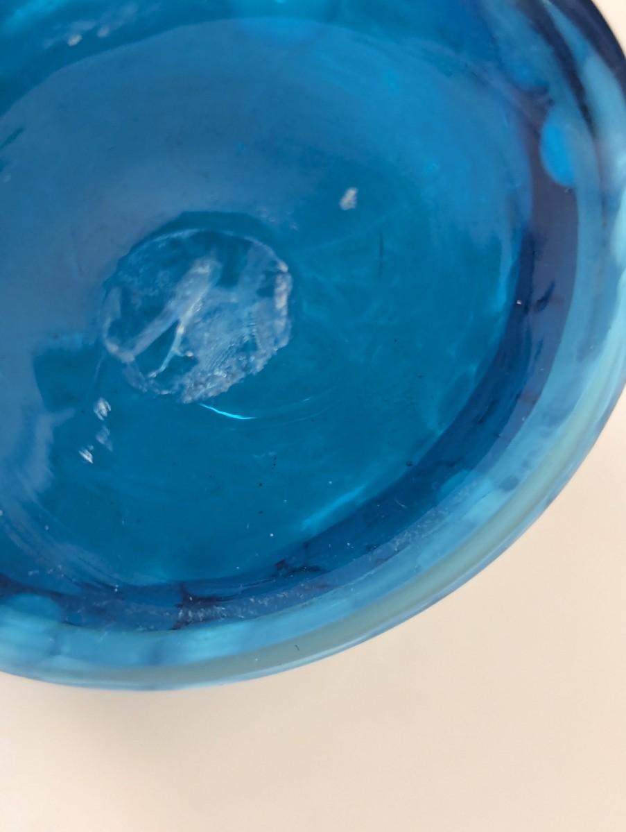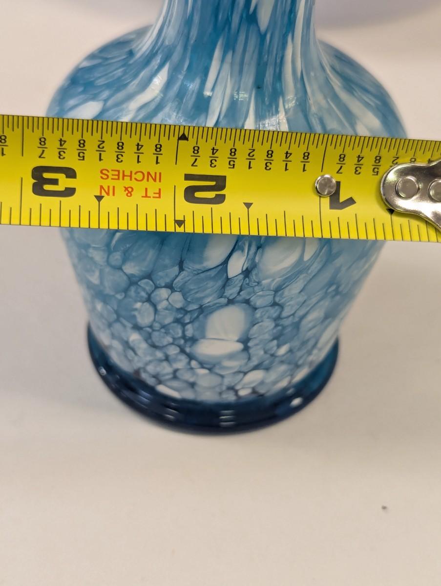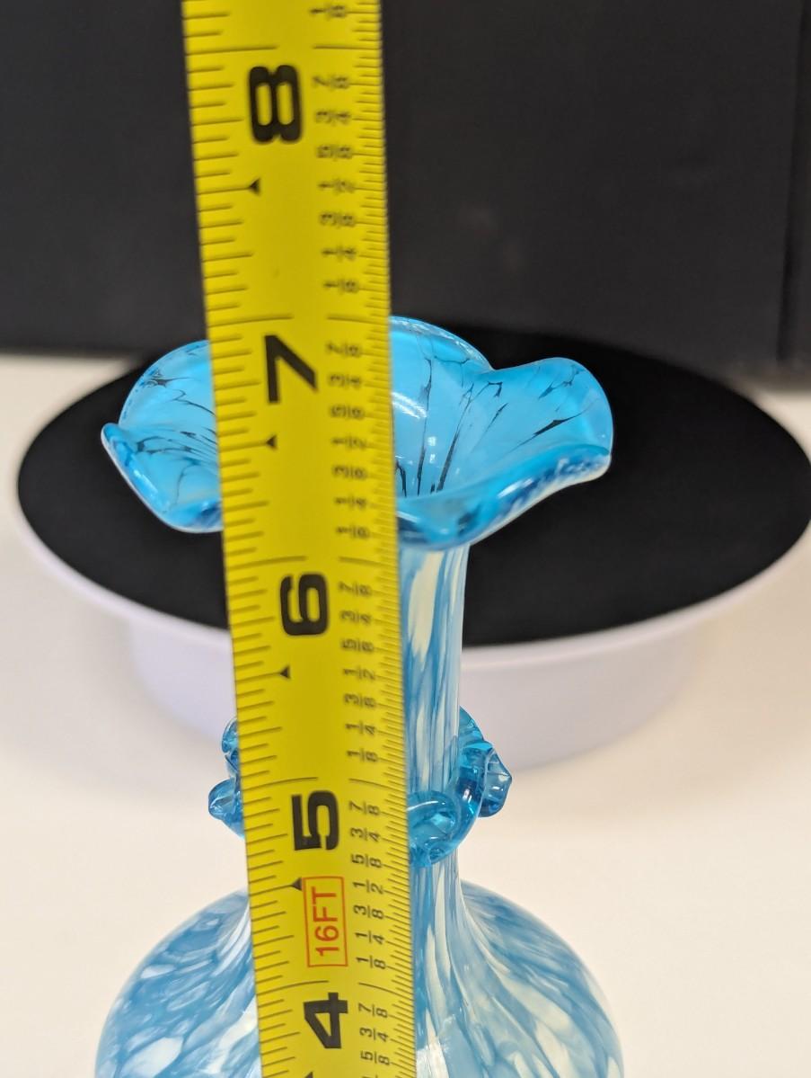 Hand Blown Blue Splatter Art Glass w/ Ruffle Top