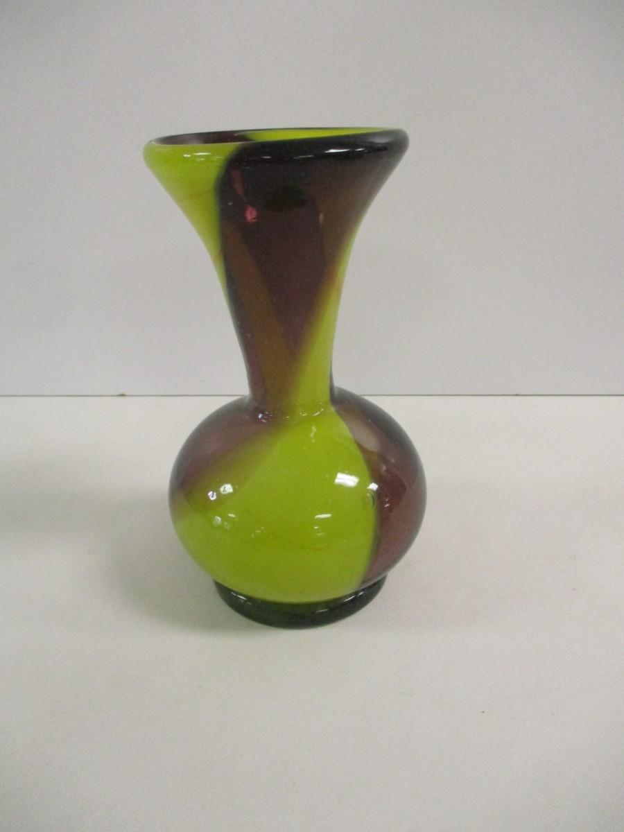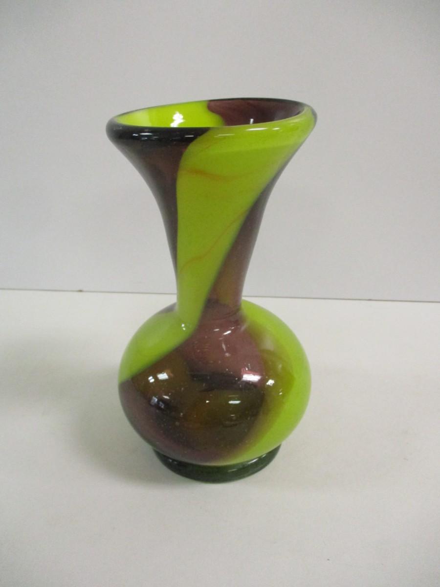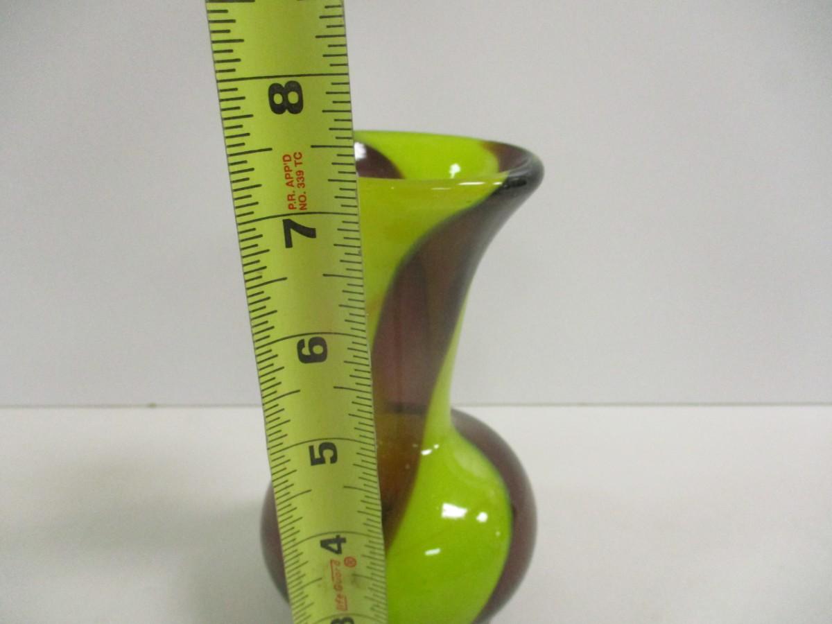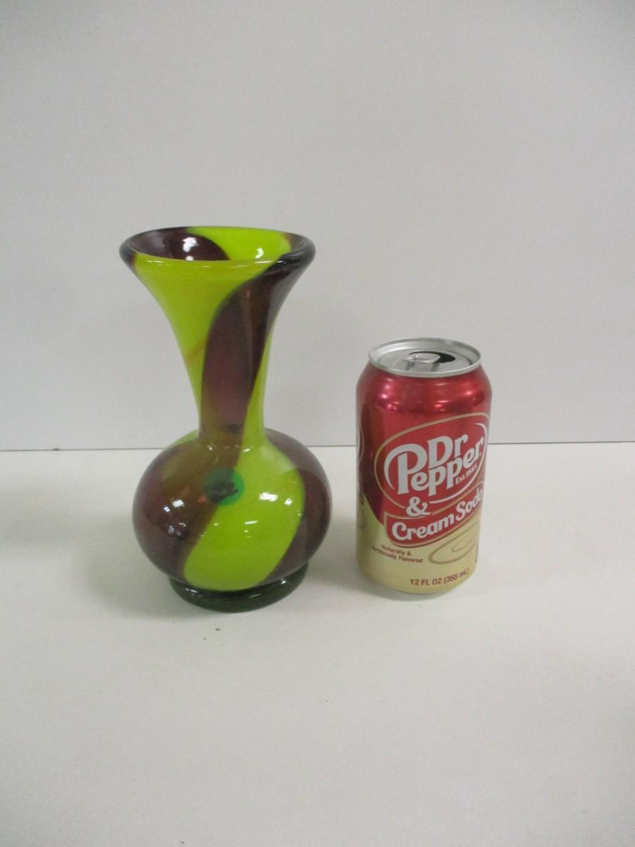 Hand Blown Carlo Morett Marbled Yellow & Brown Murano Vase Approx 7 1/4" Tall #22