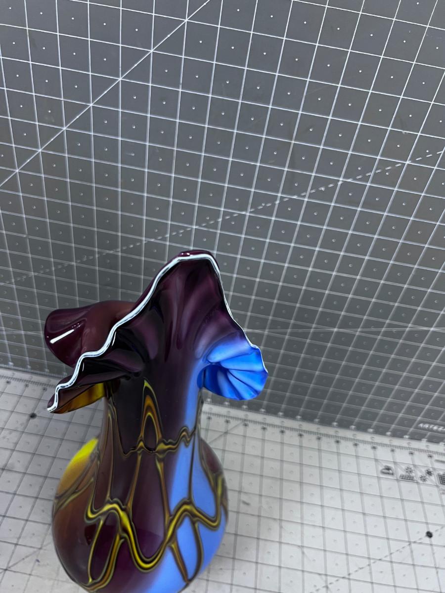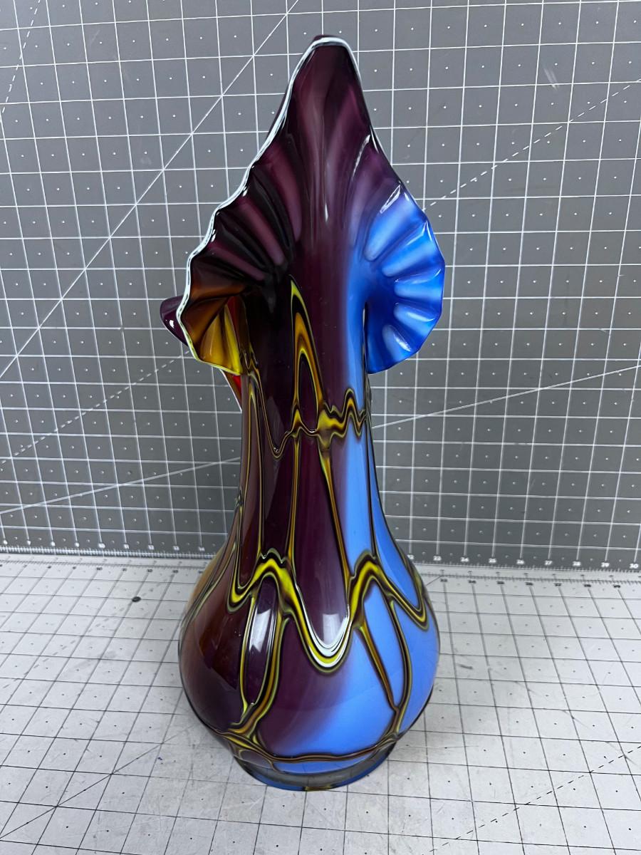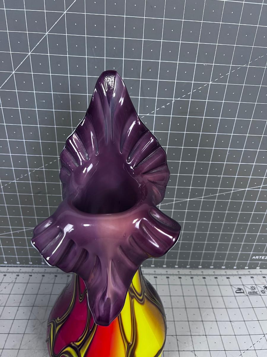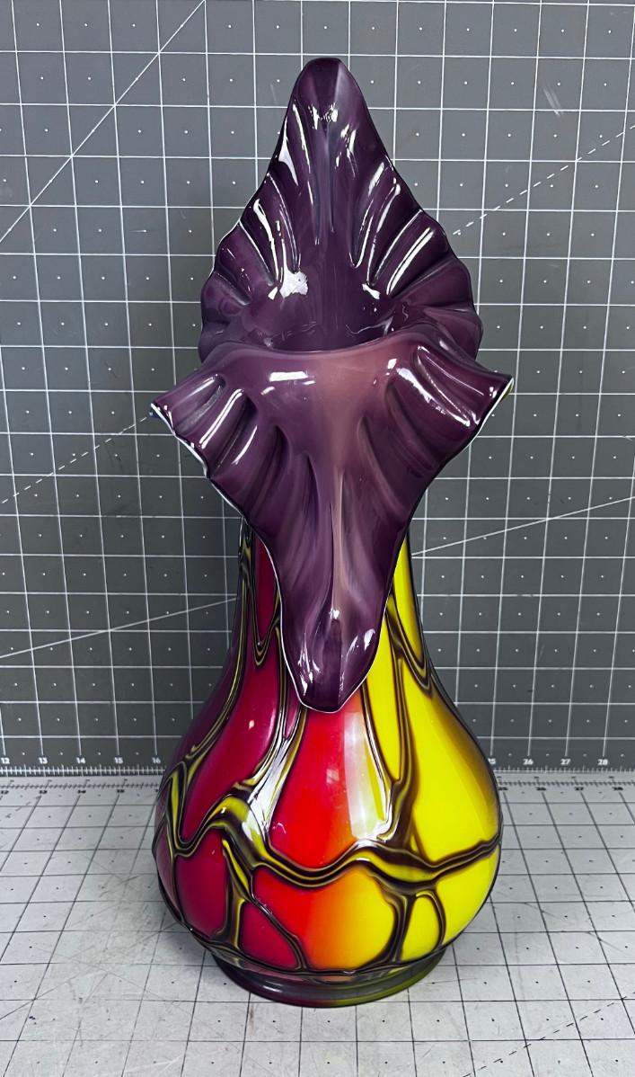 17" Tall by 7" Wide Purplish Inside and red, yellow, blue outside. UNIQUE!