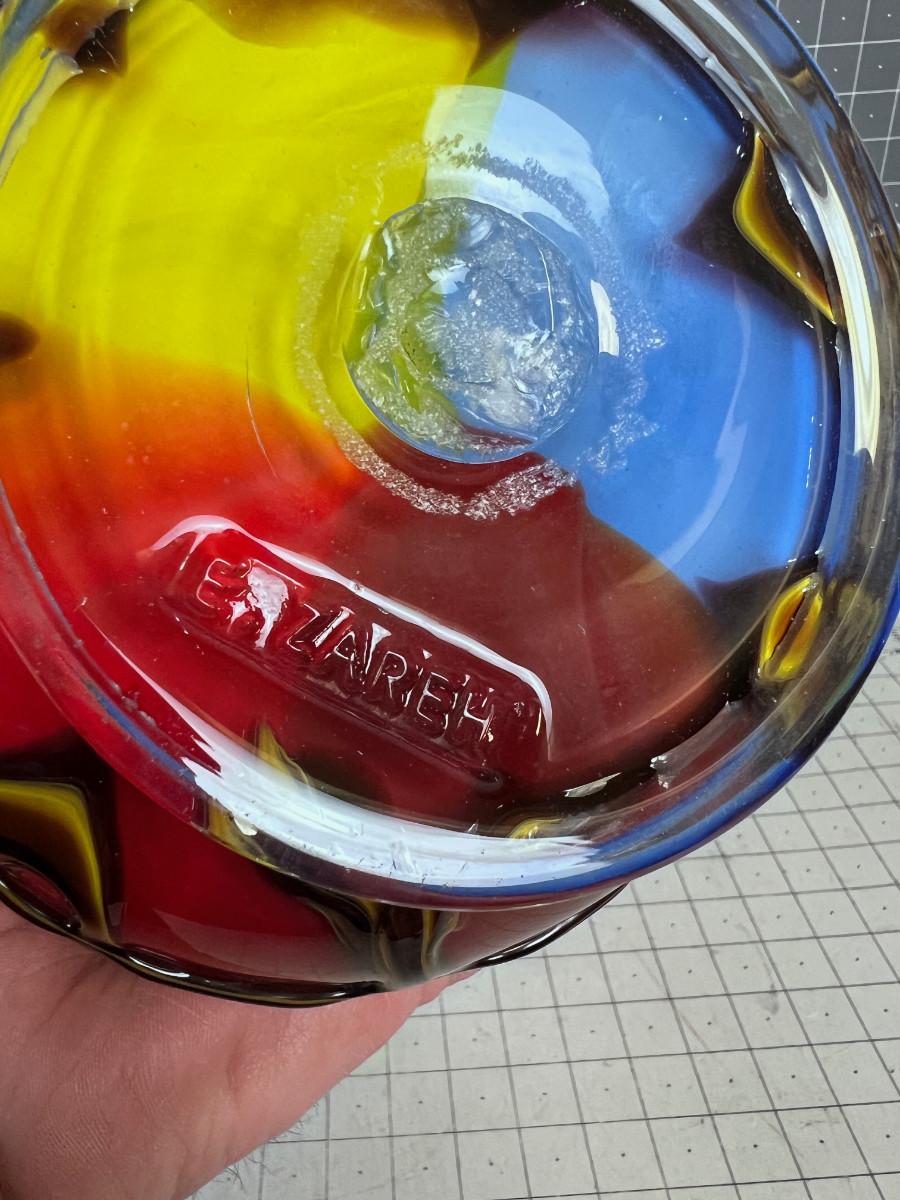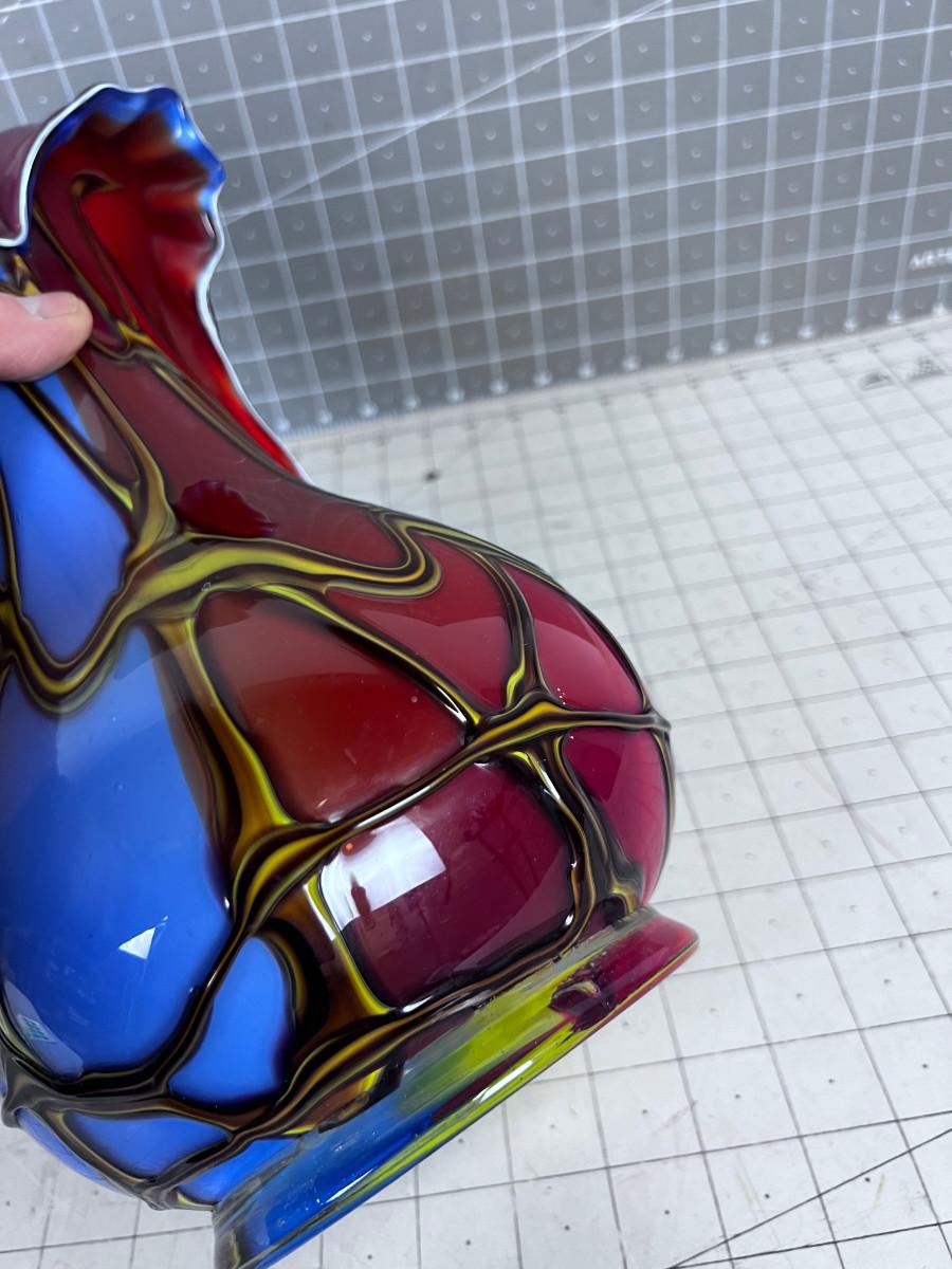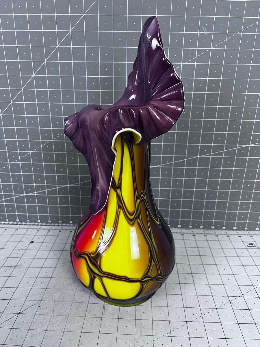17" Tall by 7" Wide Purplish Inside and red, yellow, blue outside. UNIQUE!