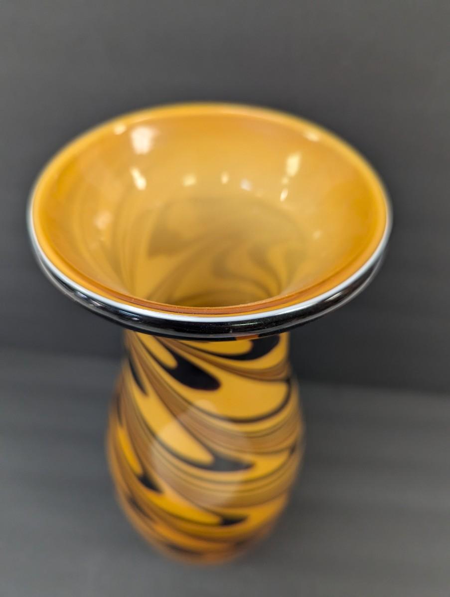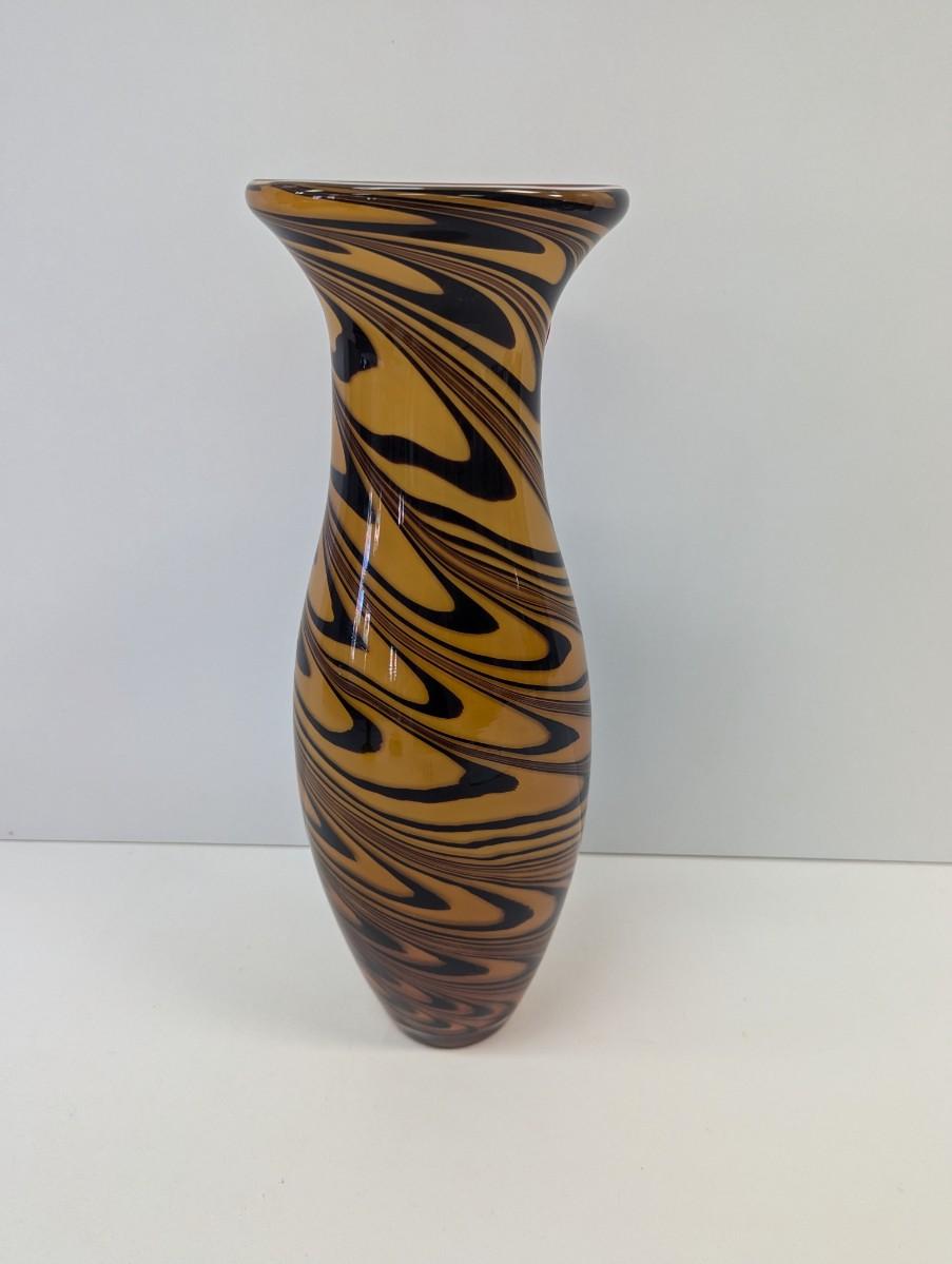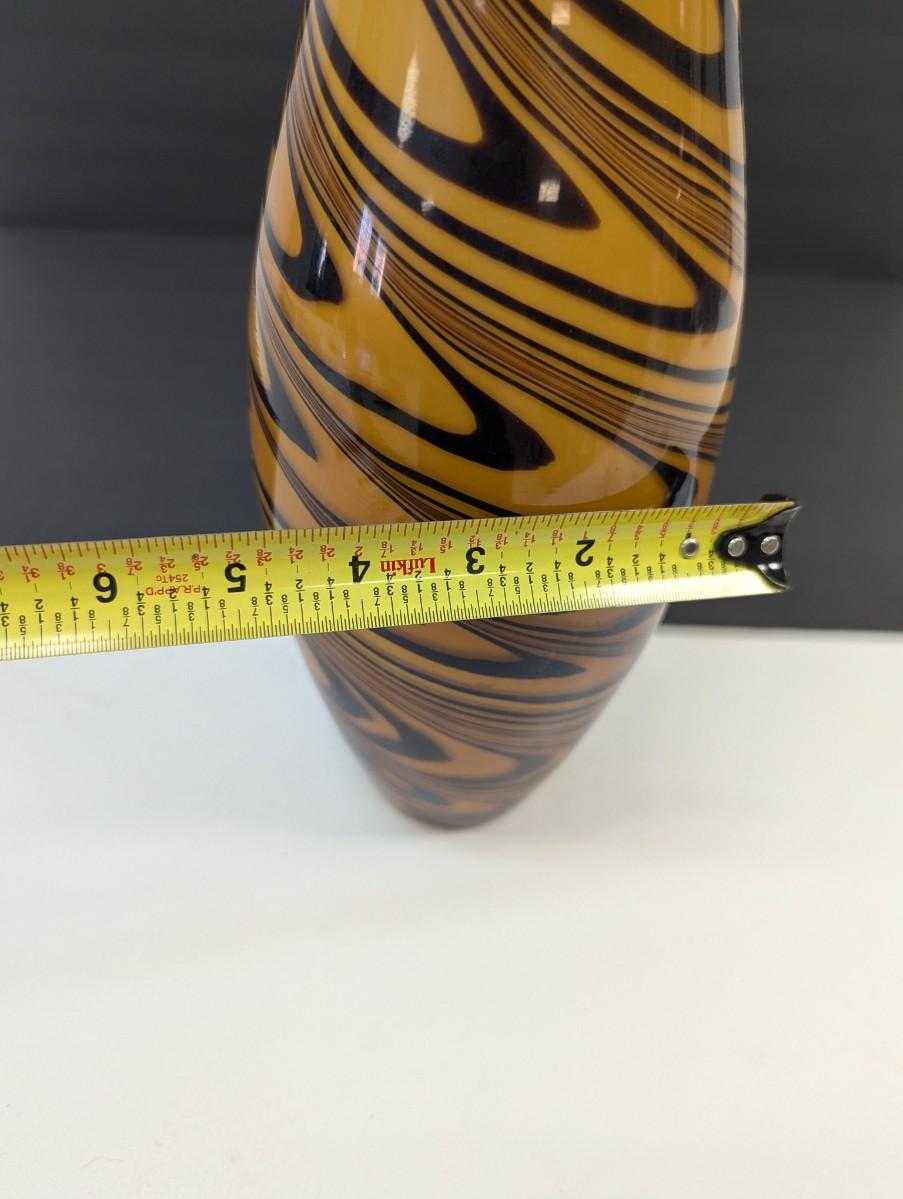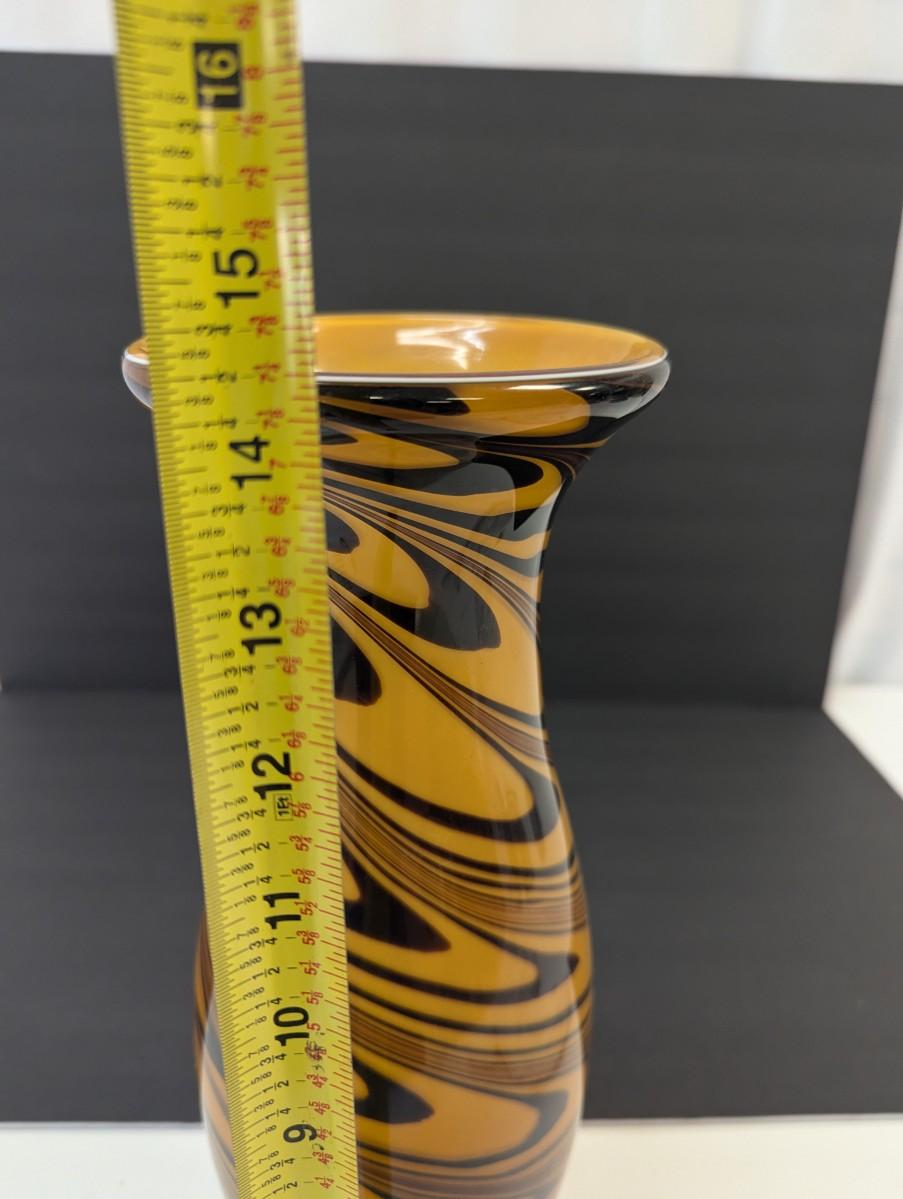 Hand Blown Cased Glass Vase Orange & Black Approx 14 1/2" Tall #11