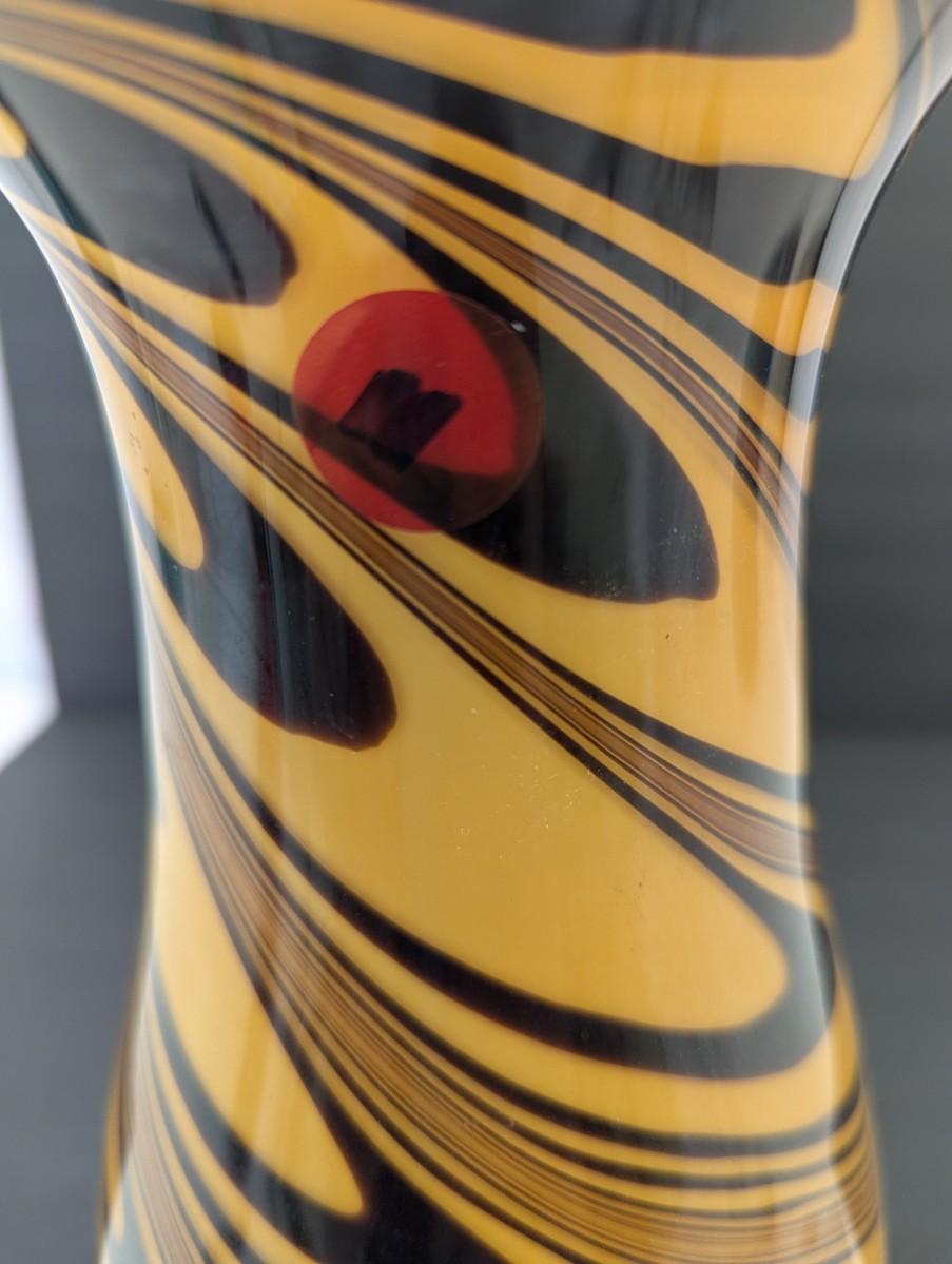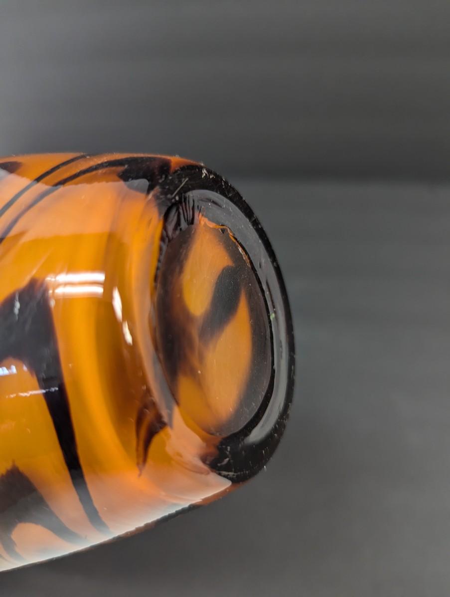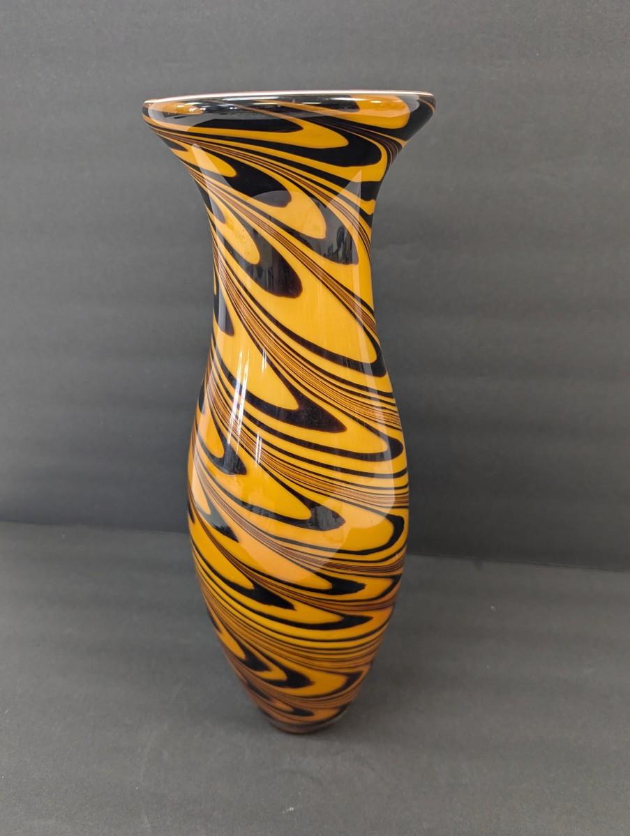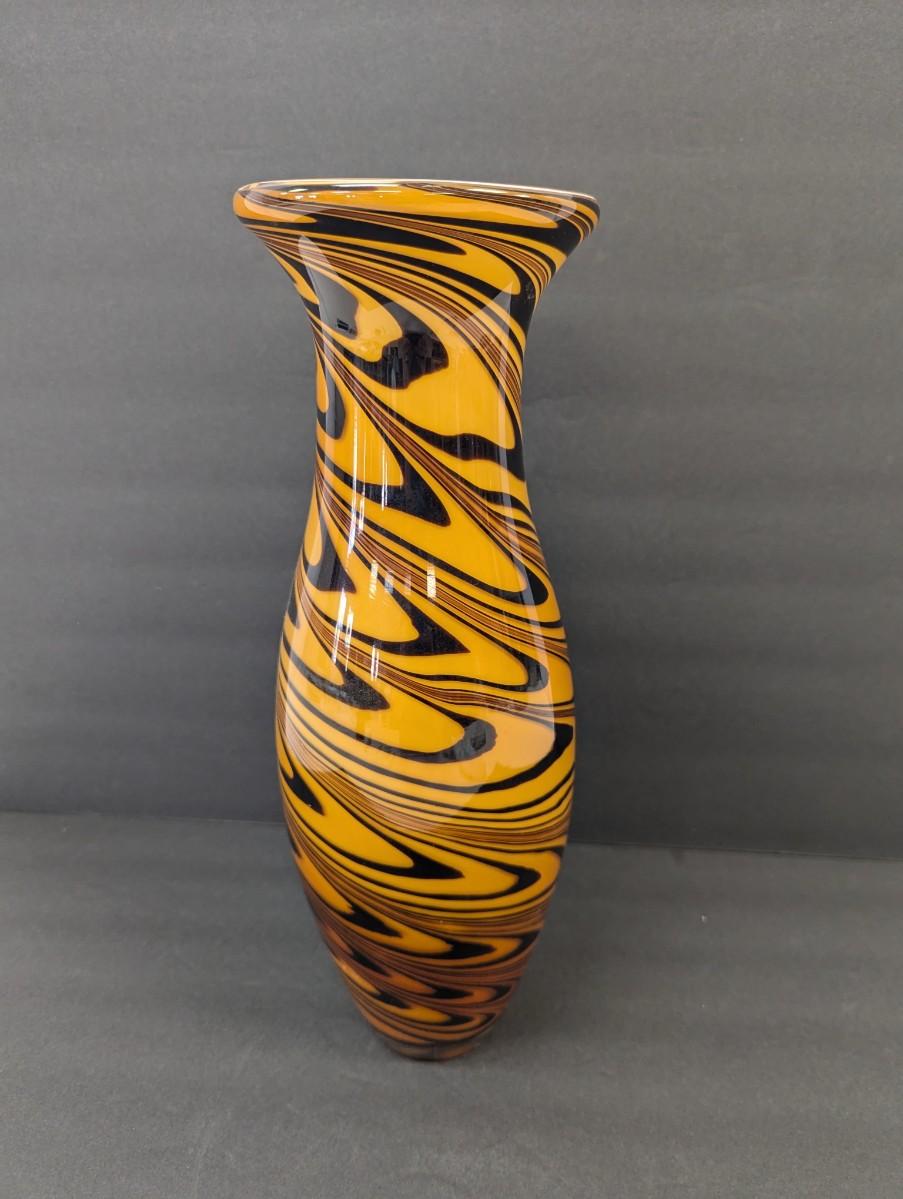 Hand Blown Cased Glass Vase Orange & Black 14 1/2" #11