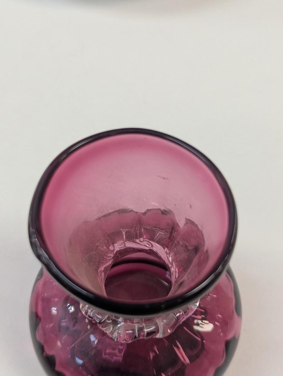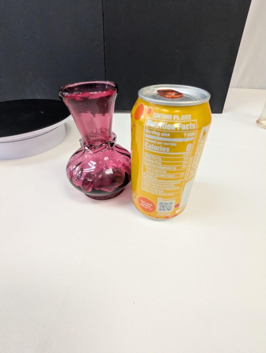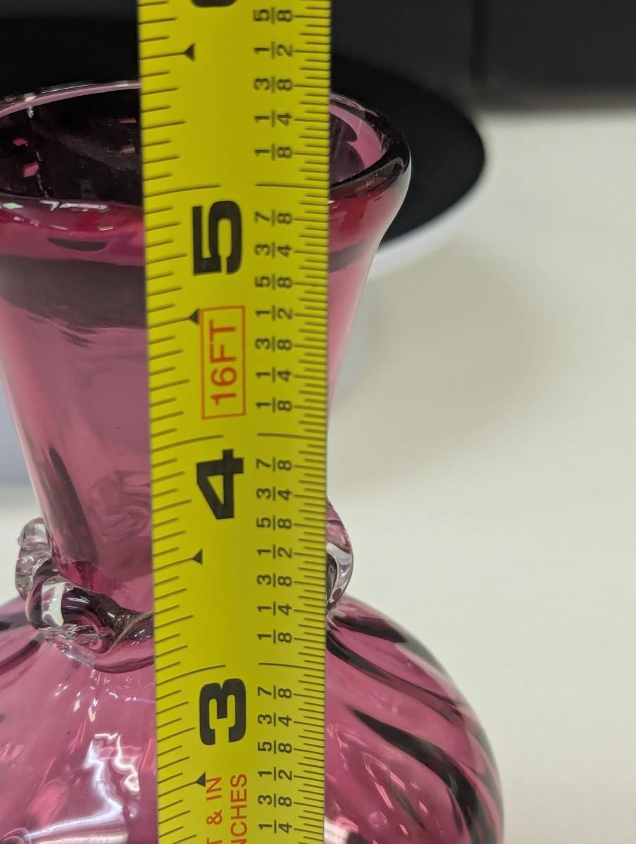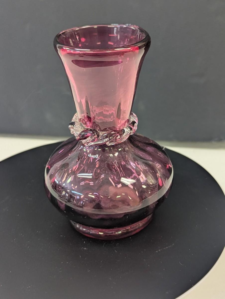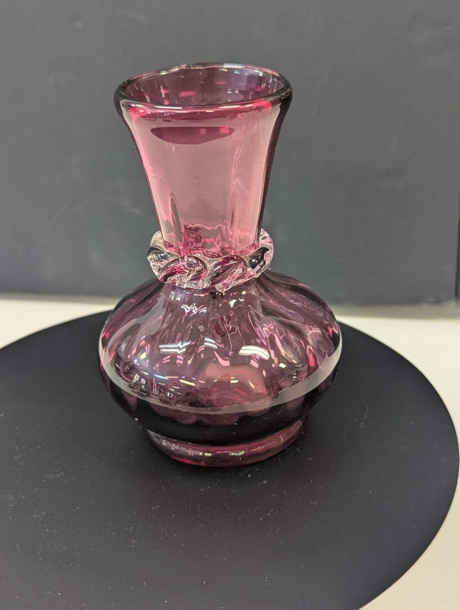 Hand Blown Cranberry Vase w/ Artist Mark On The Bottom
