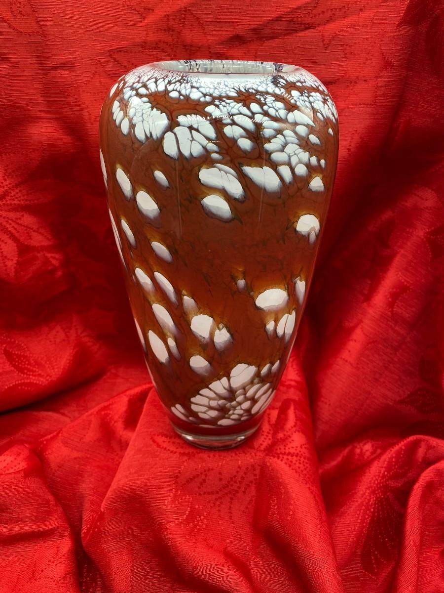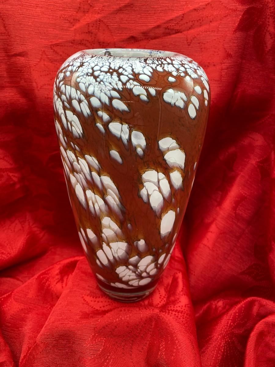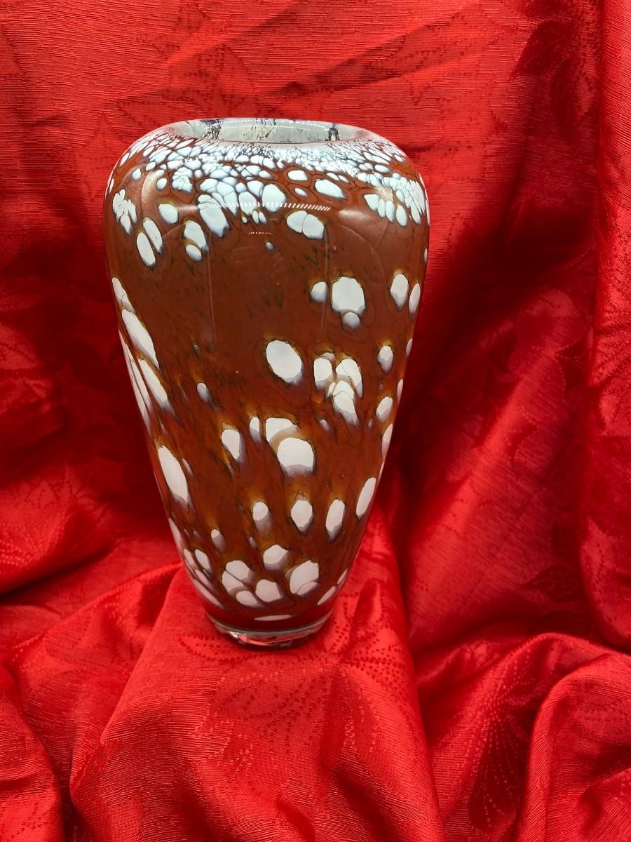 A vase within a vase. Brown and off-white colors. 11 inchs tall.