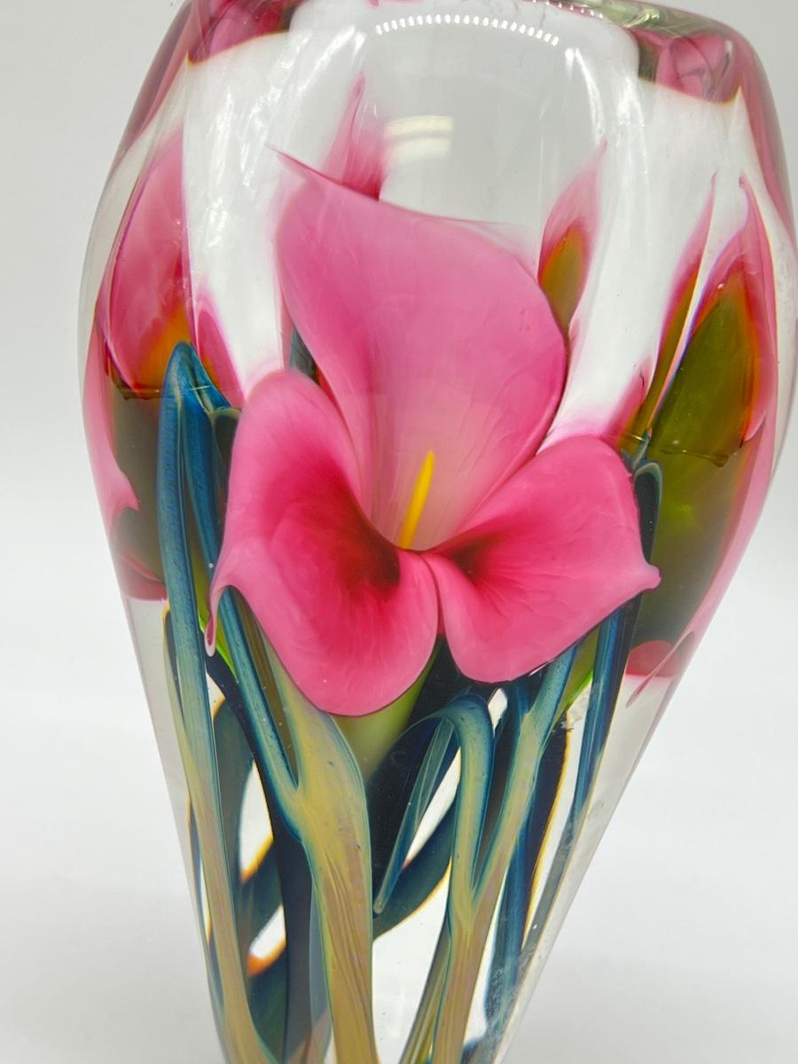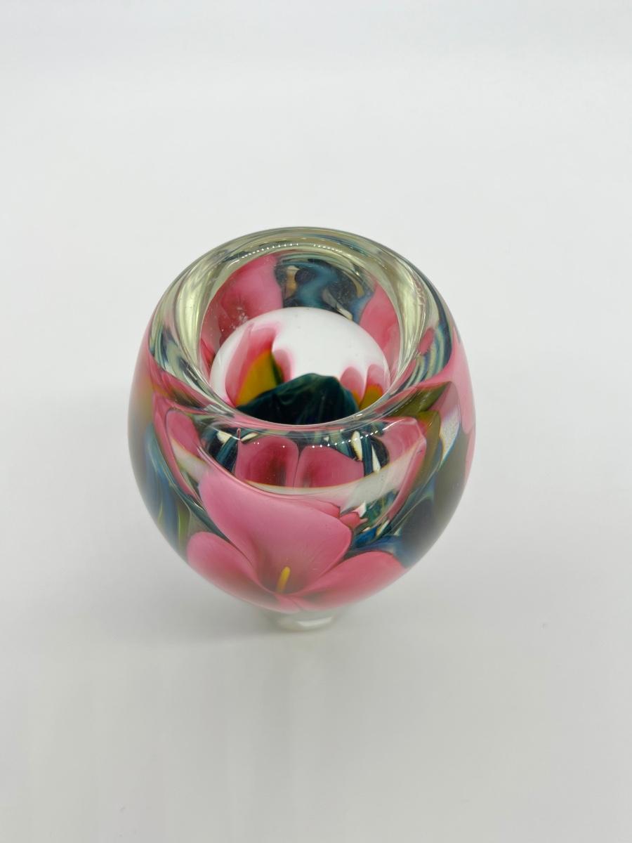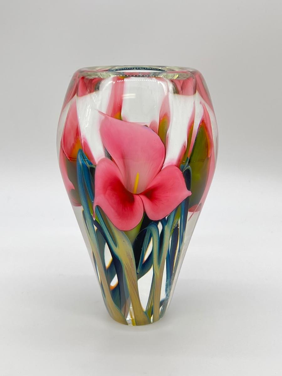 Lotton Studios ~ Jerry Heer, Artist ~ Hand Blown Pink Floral Glass Vase