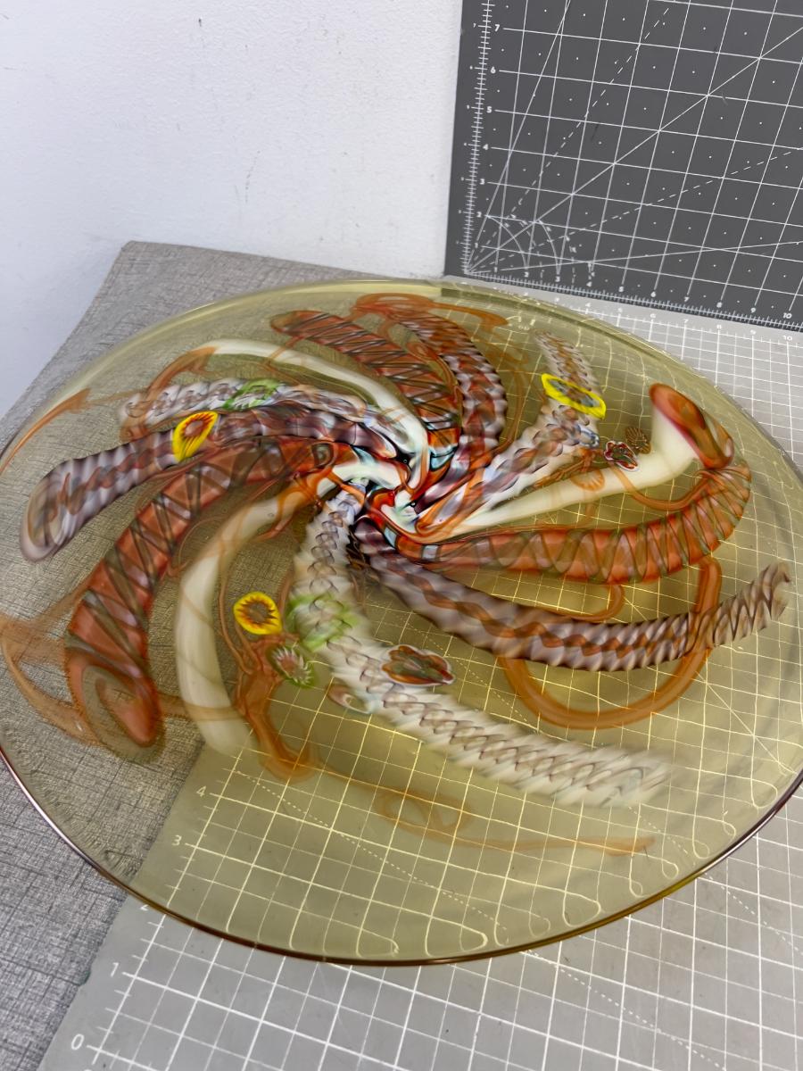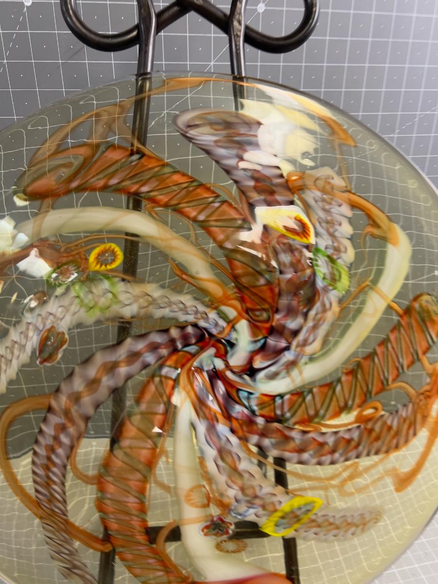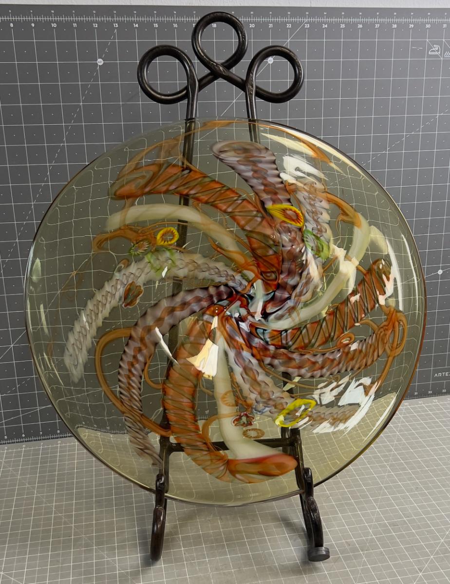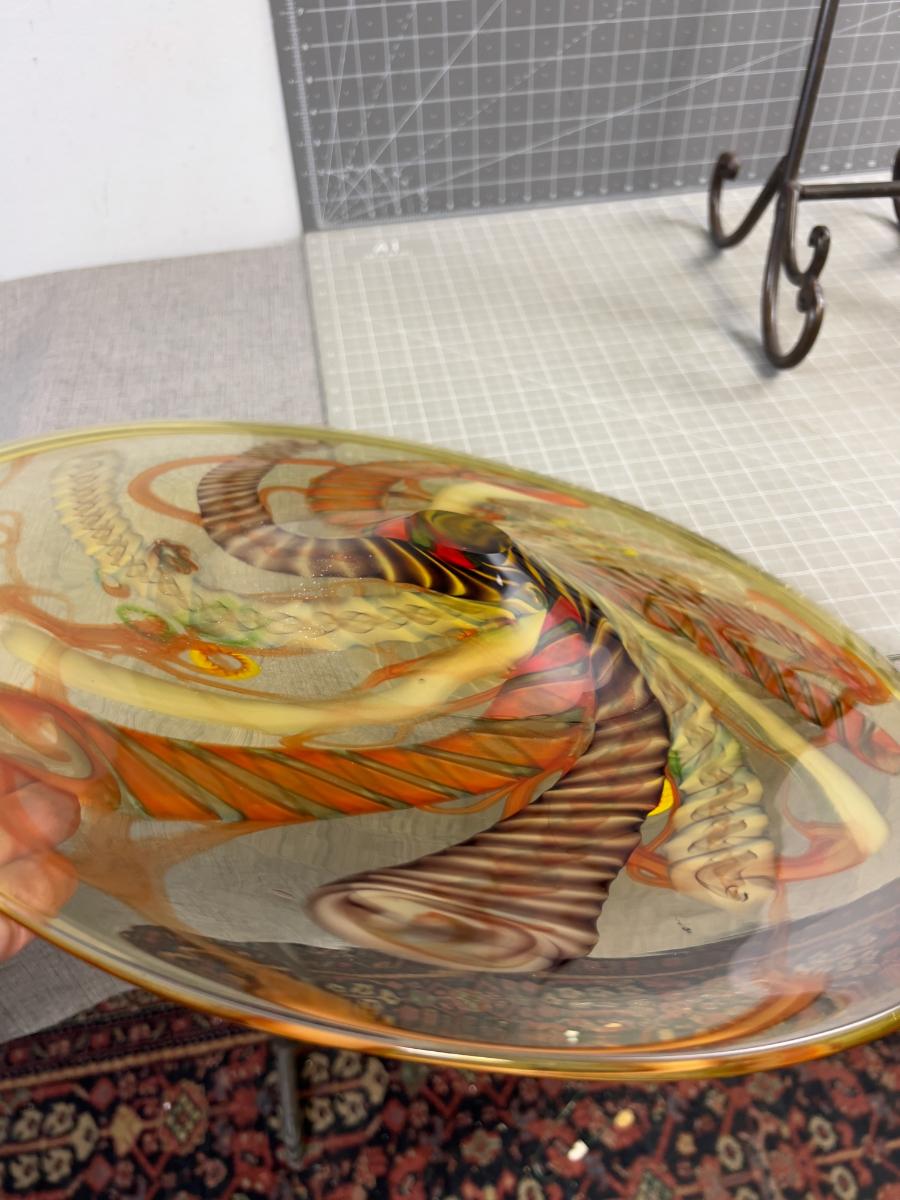 18" Diameter. Will Sit Flat on a Table If you do not want to use Stand LOVELY!
