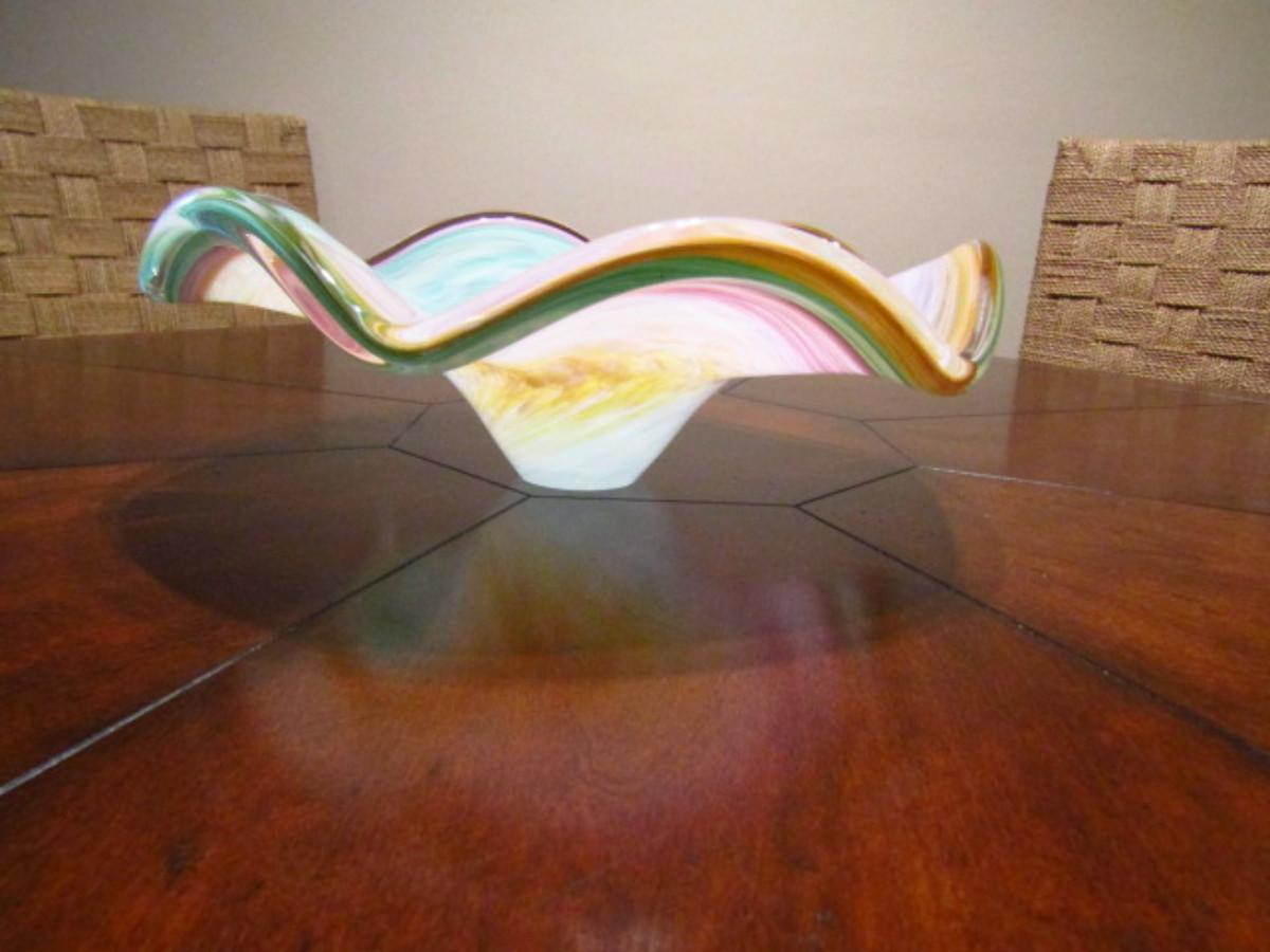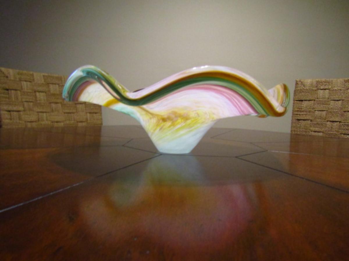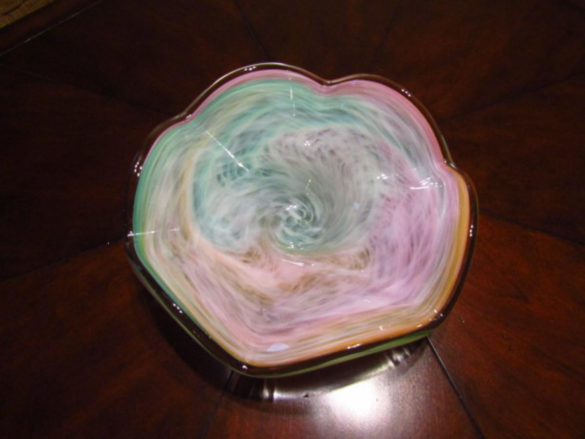 Hand Blown Glass Bowl with Ruffled Edge in Lovely Pastel Hues