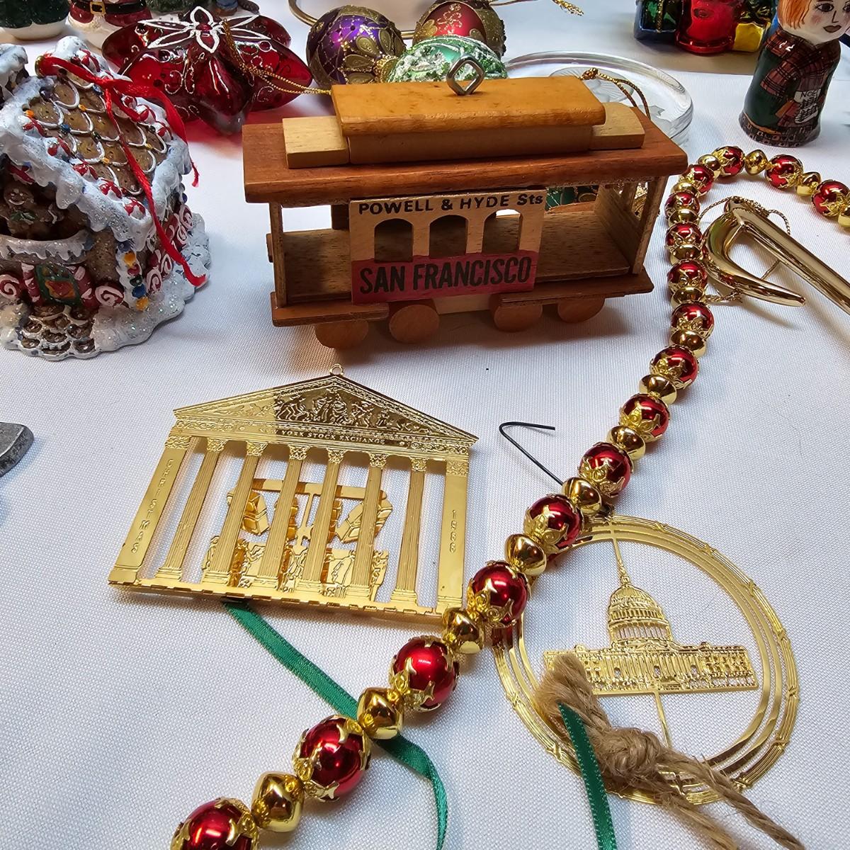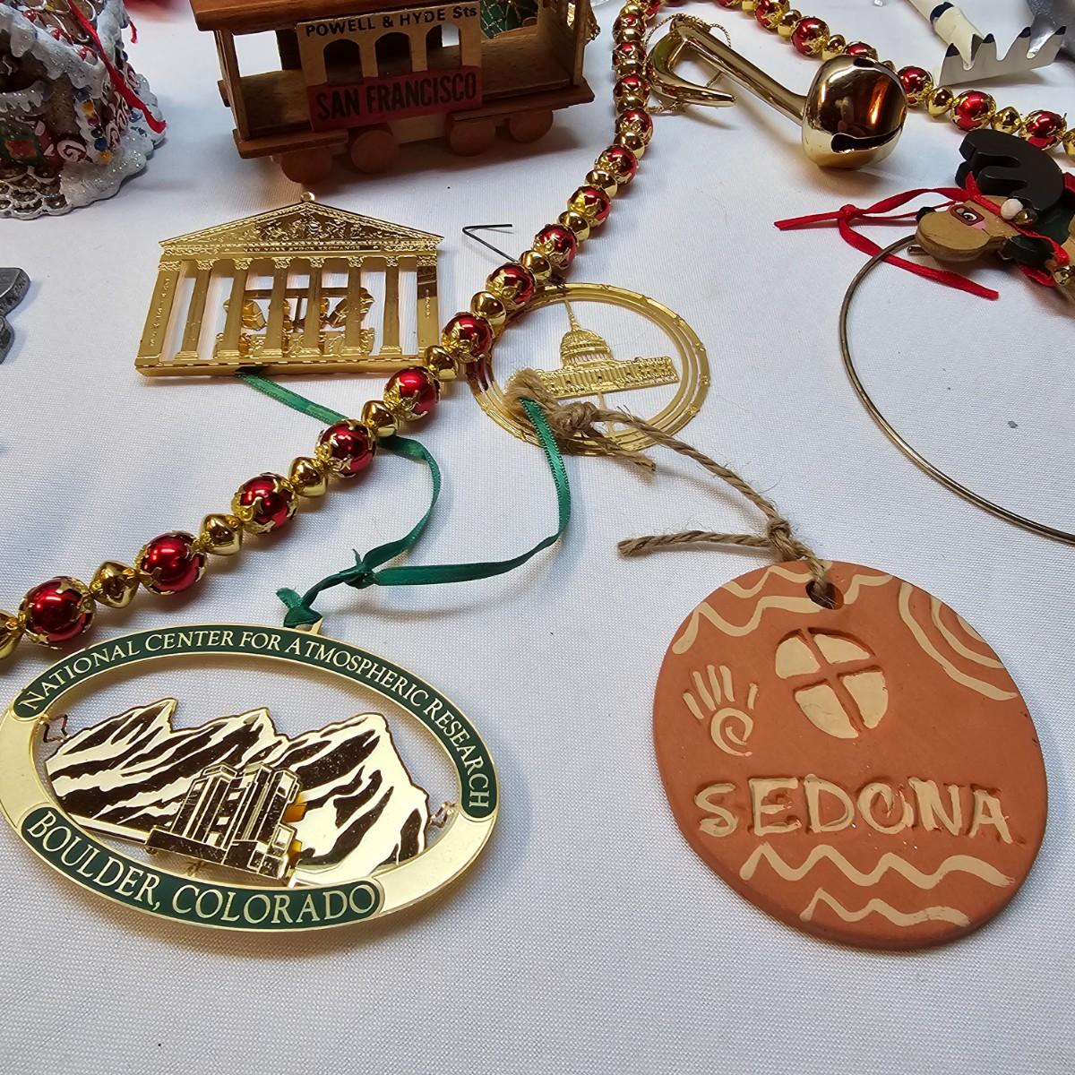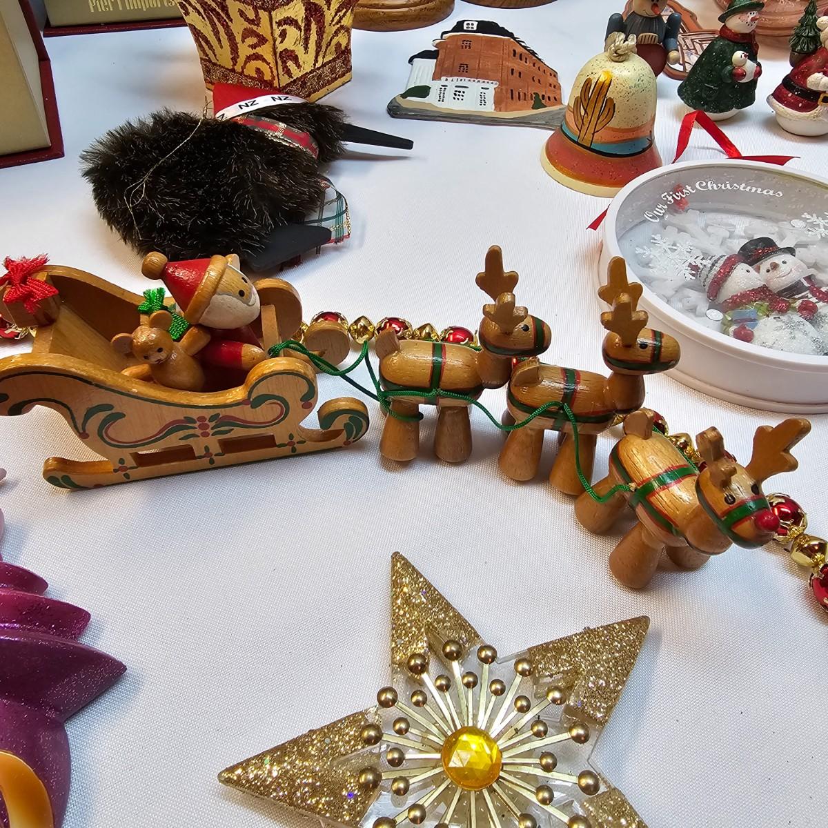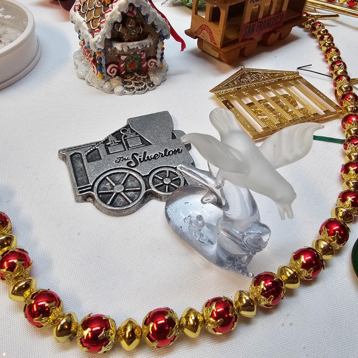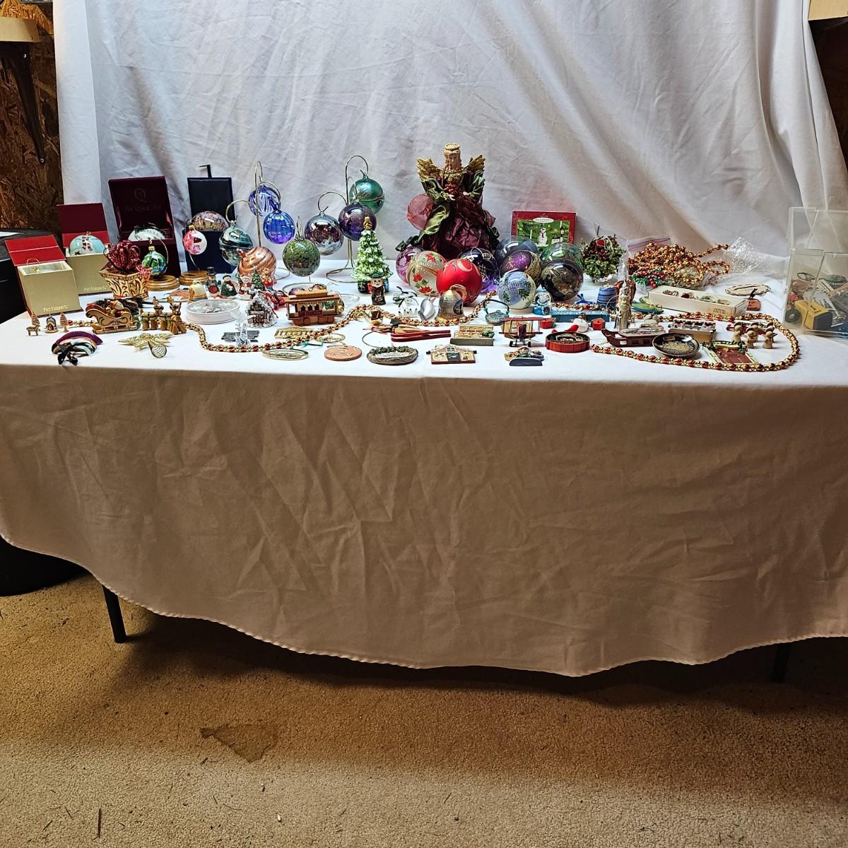 Beautiful selection of hand blown glass ornaments and more. Glass items are from 2" to 4.5" D, stands shown are included. Other ornaments are from differentvplaces in the world, collected on travels. Large angel is a tree topper, measures 9" x 7" x 12"H. See photos for details. Storage containers included. Shipping available.