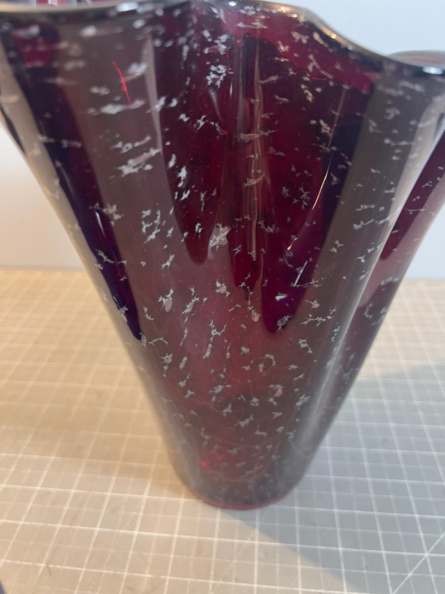 Hand Blown Glass,  Dark Red Vase & Dark Blue Bowl