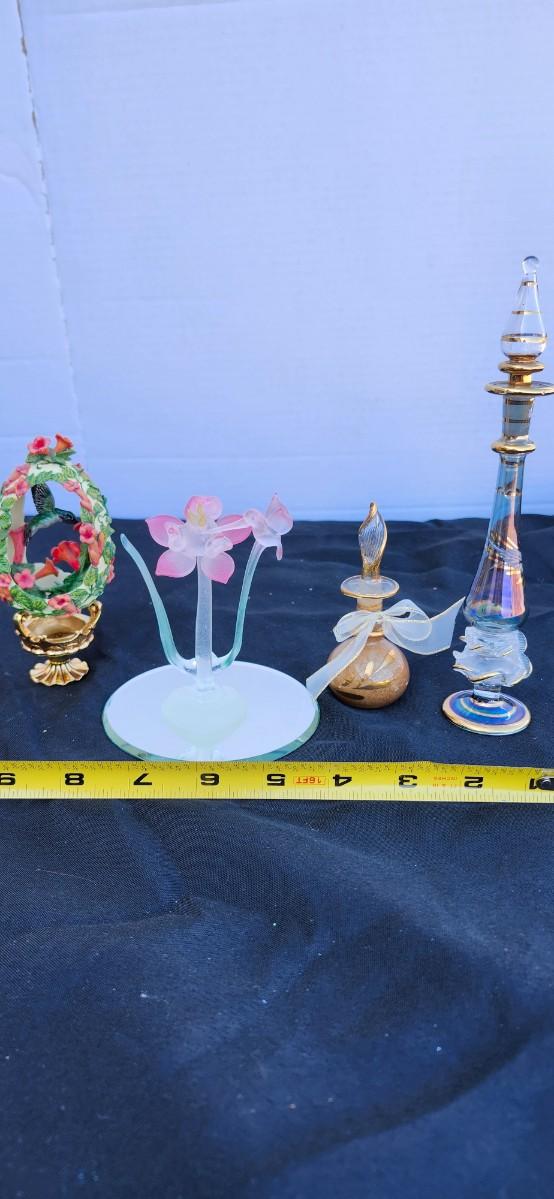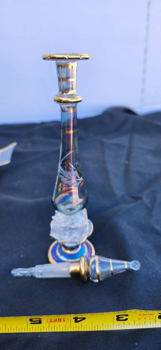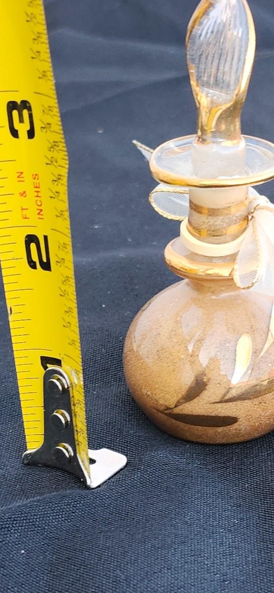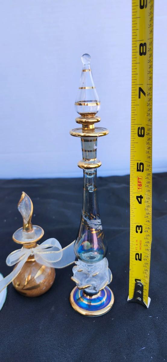 Two Egyptian Glass Gold Accent Perfume Bottle Mouth Blown