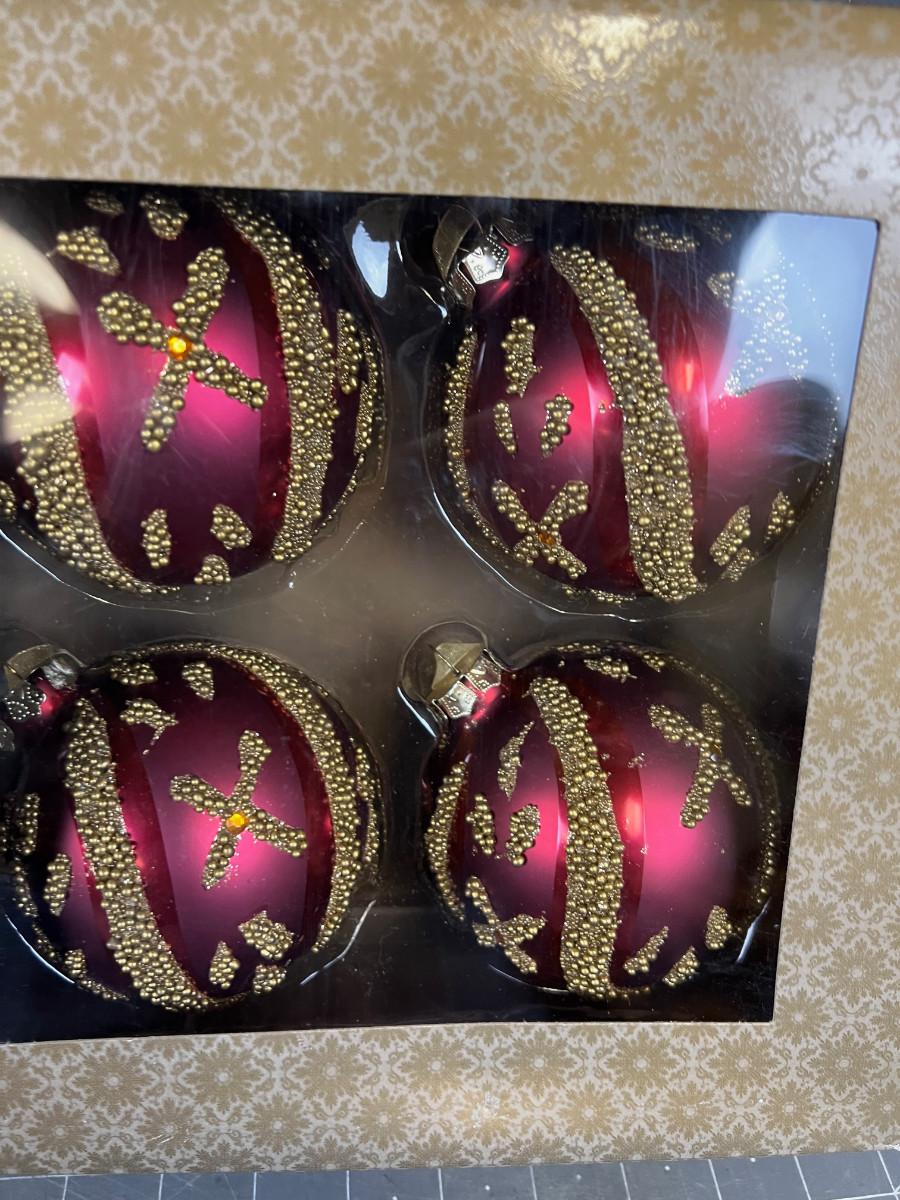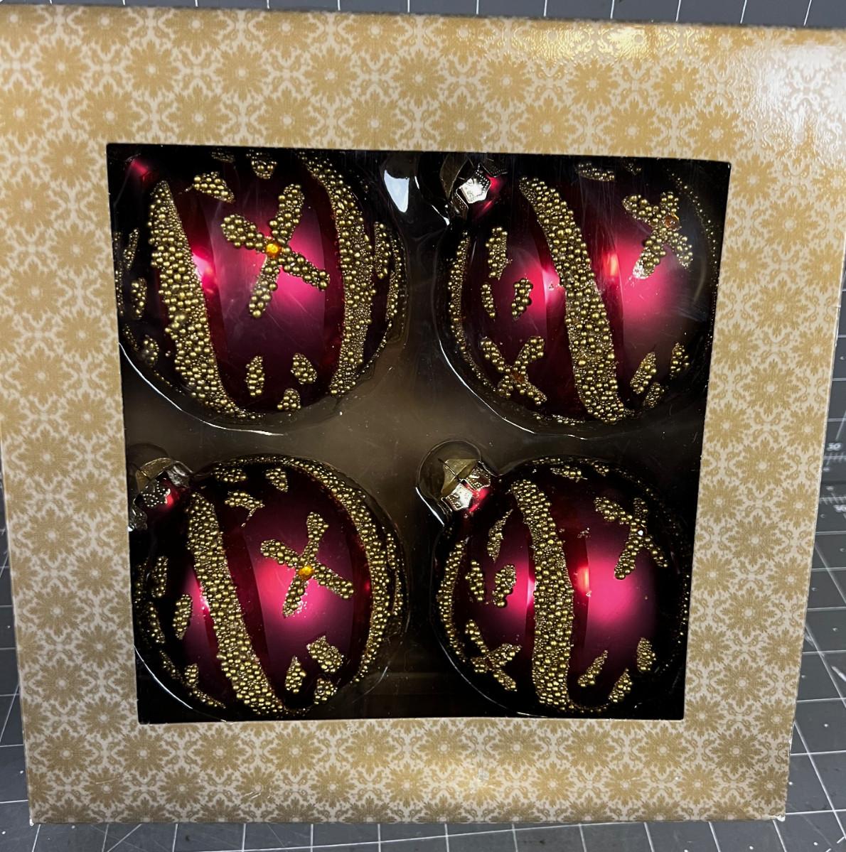 Hand Blown Glass Ornaments (4) per Box  Deep Rich Red Color