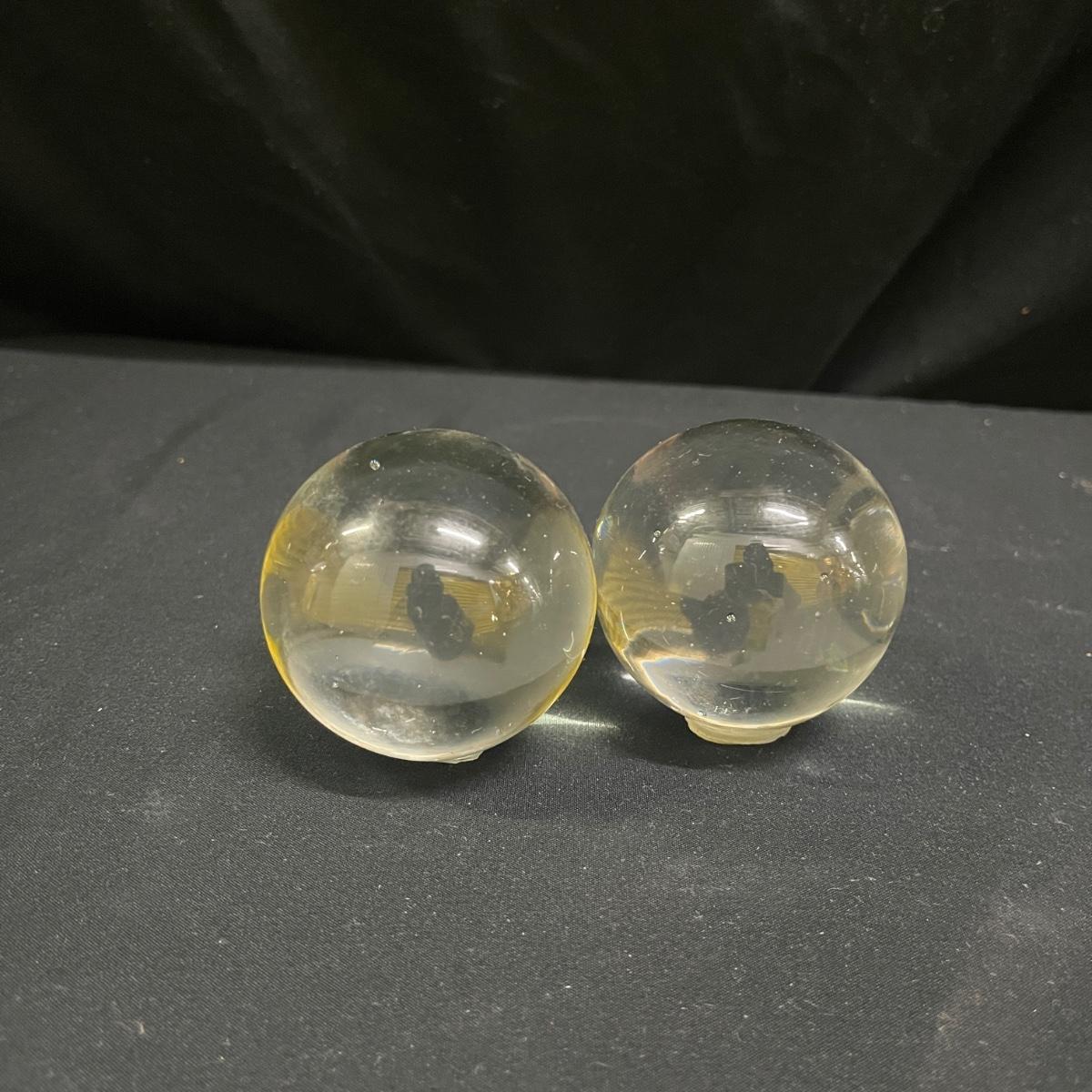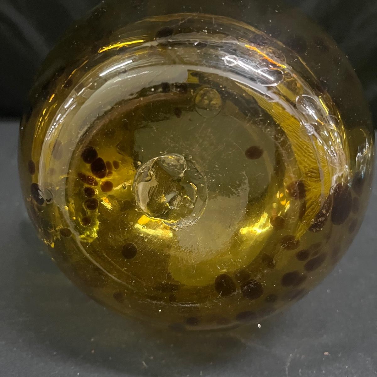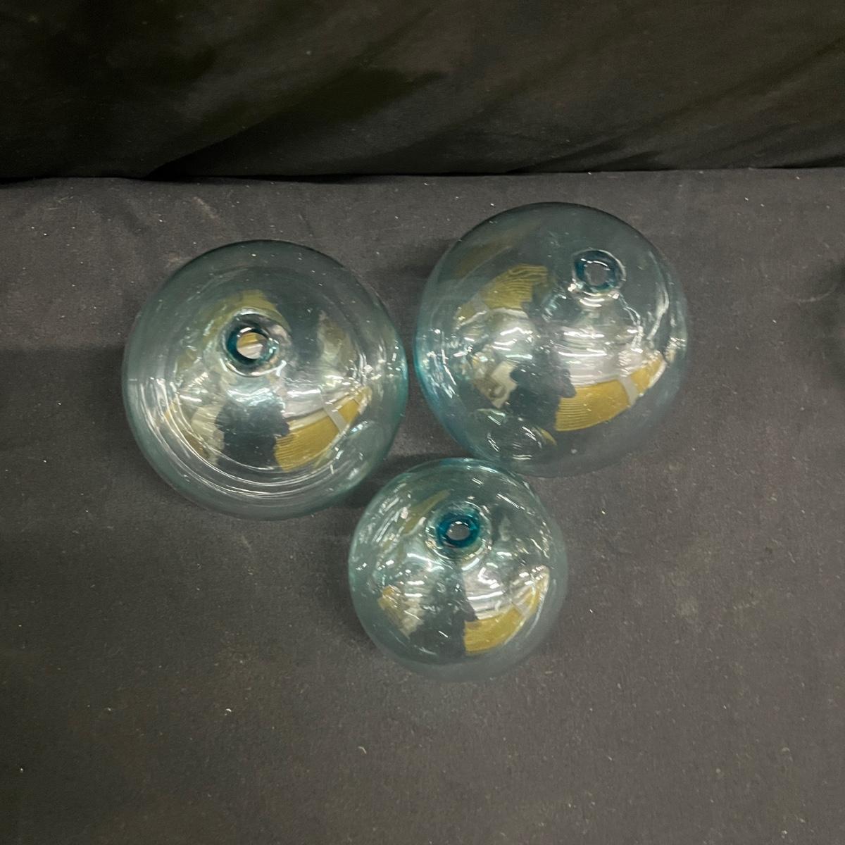 Lot includes a spotted hand blown glass pitcher, two solid glass orbs and six hollow glass balls. Pitcher measures 8.5” x 7” x 8”H.