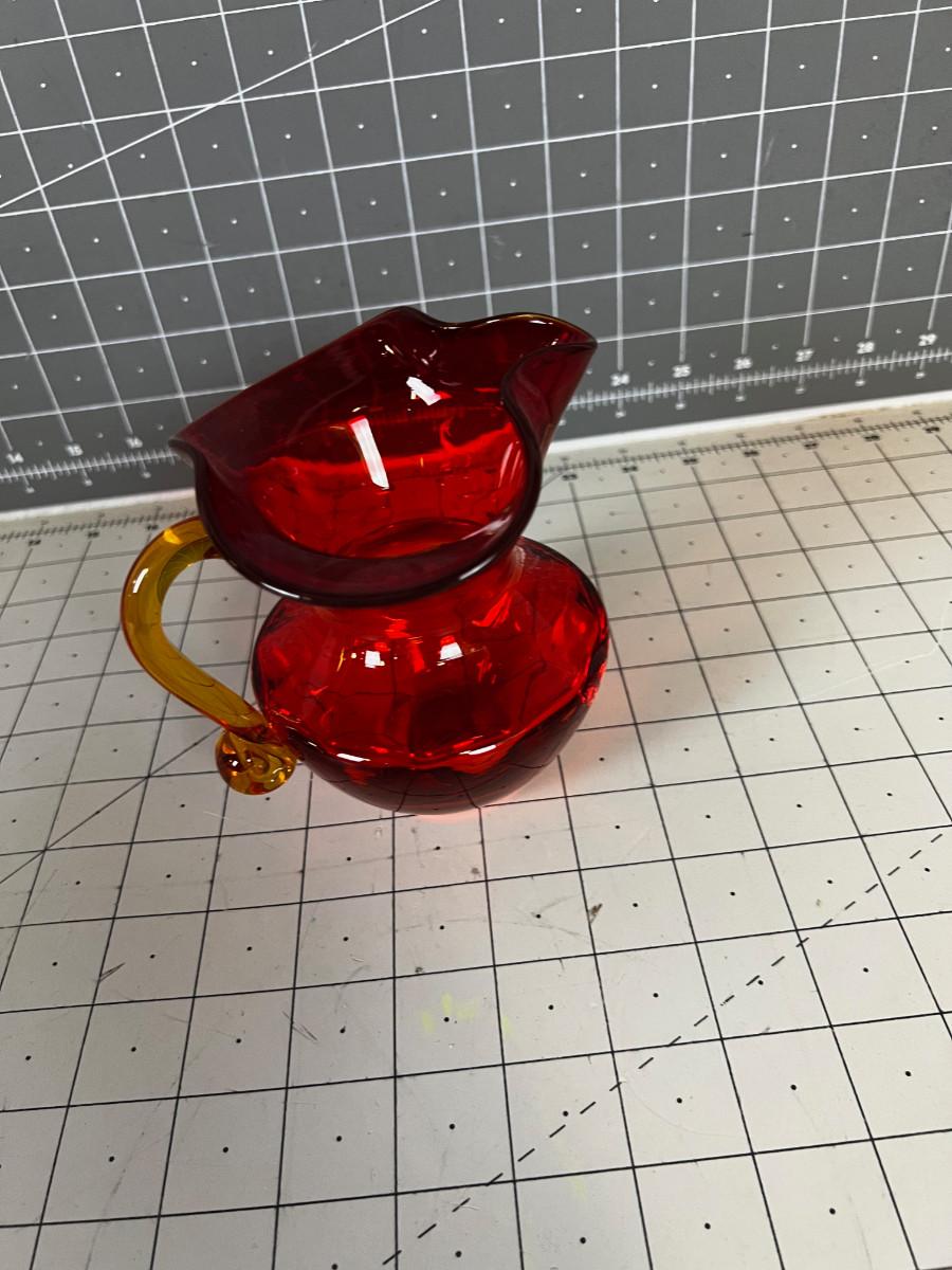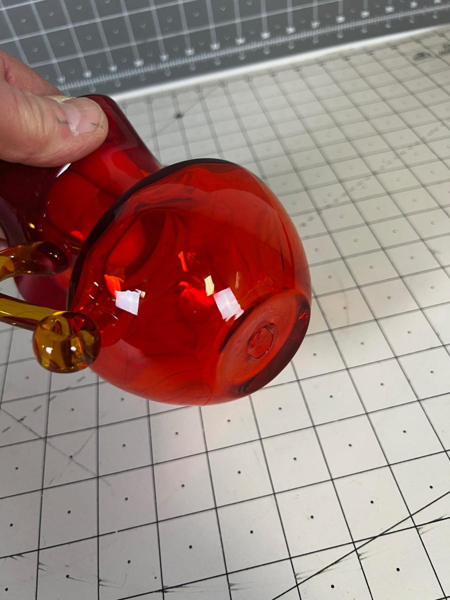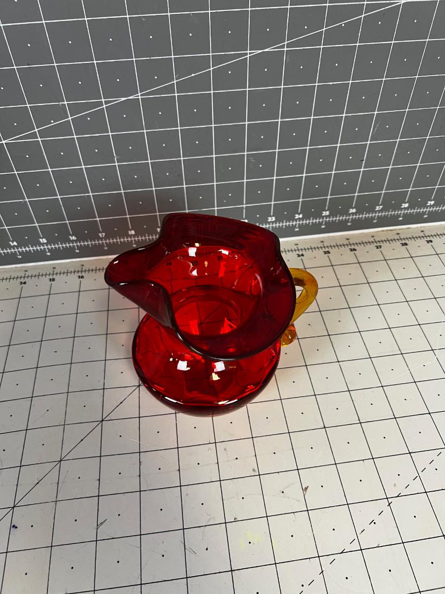 Hand Blown Glass Pitcher Orange/Red and Amber.