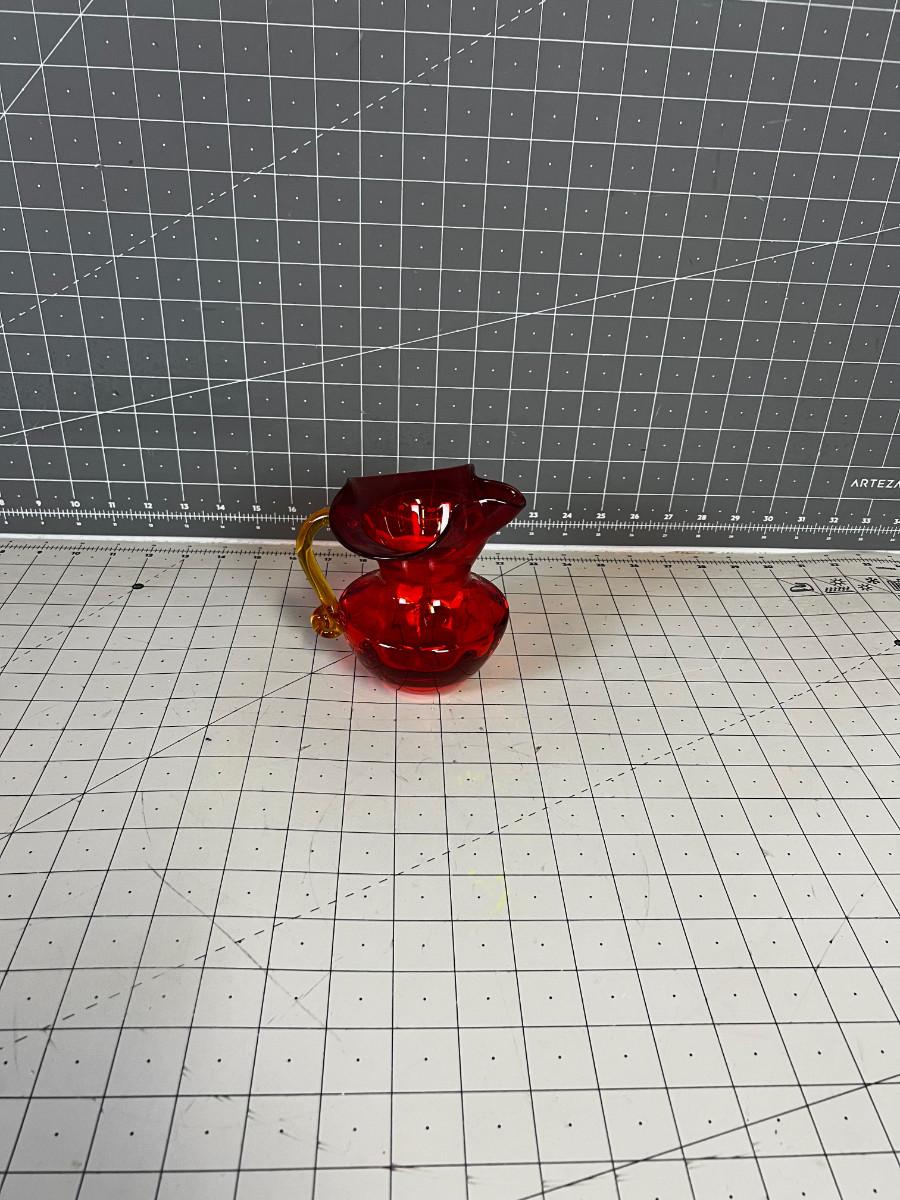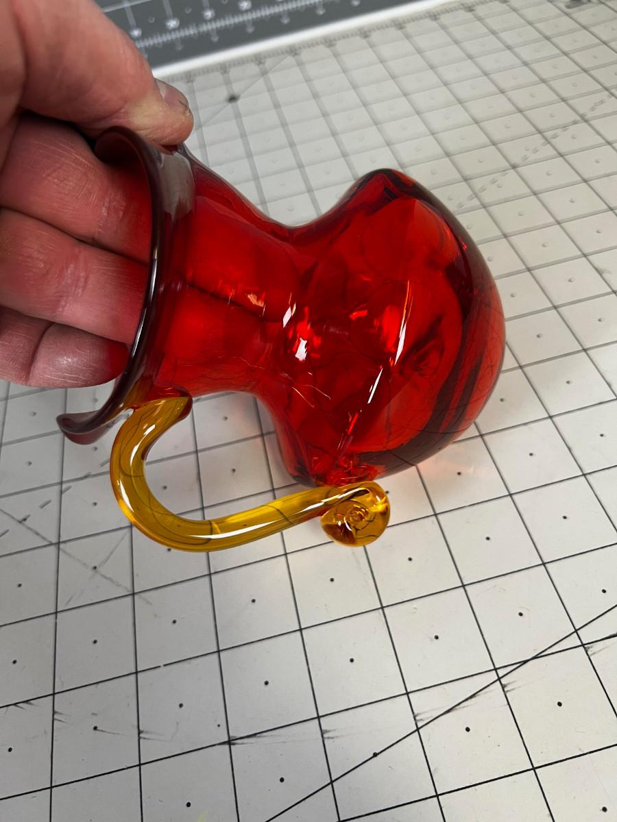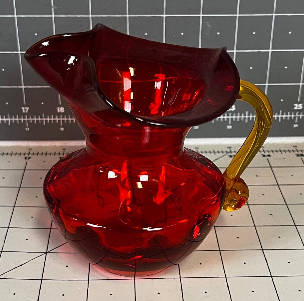 Hand Blown Glass Pitcher Orange/Red and Amber.