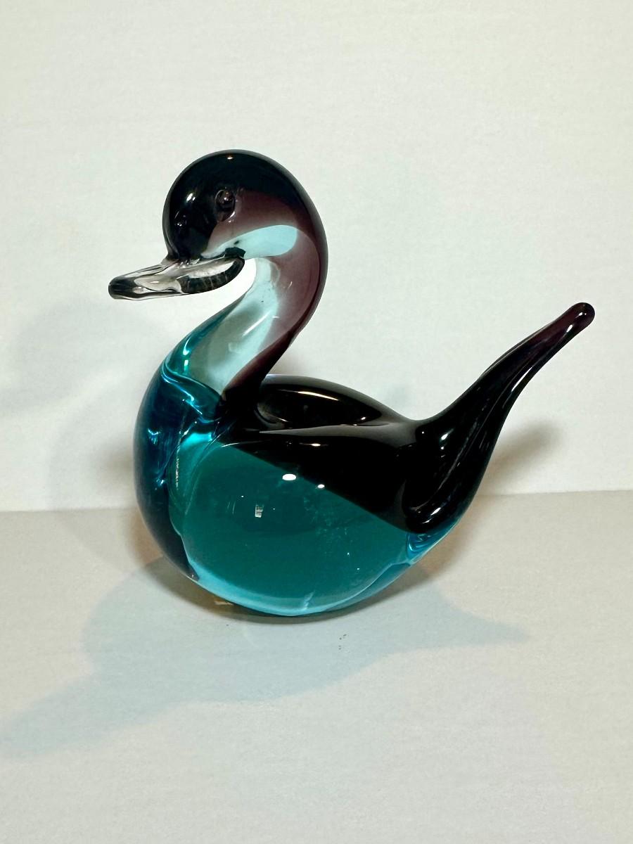 Vintage glass swan with original labels "Made in Italy" and import sticker.