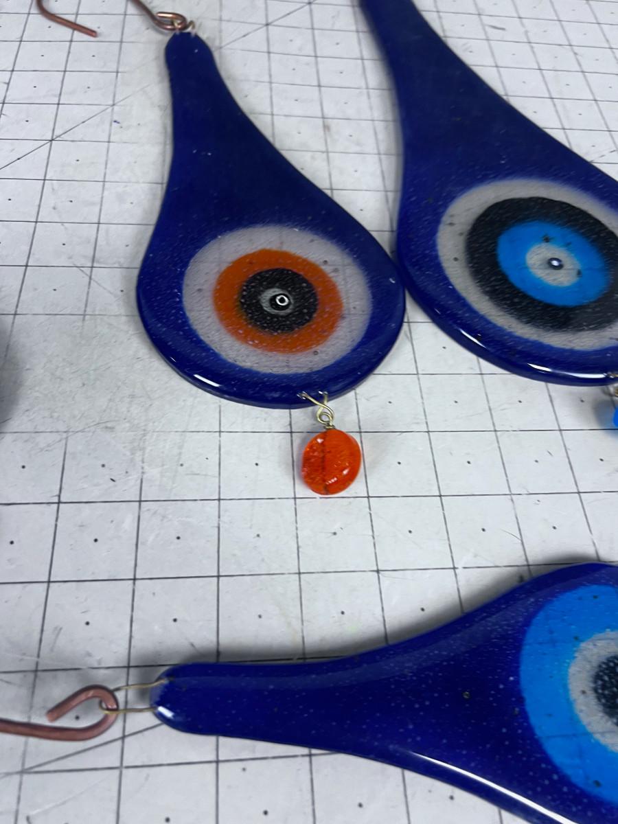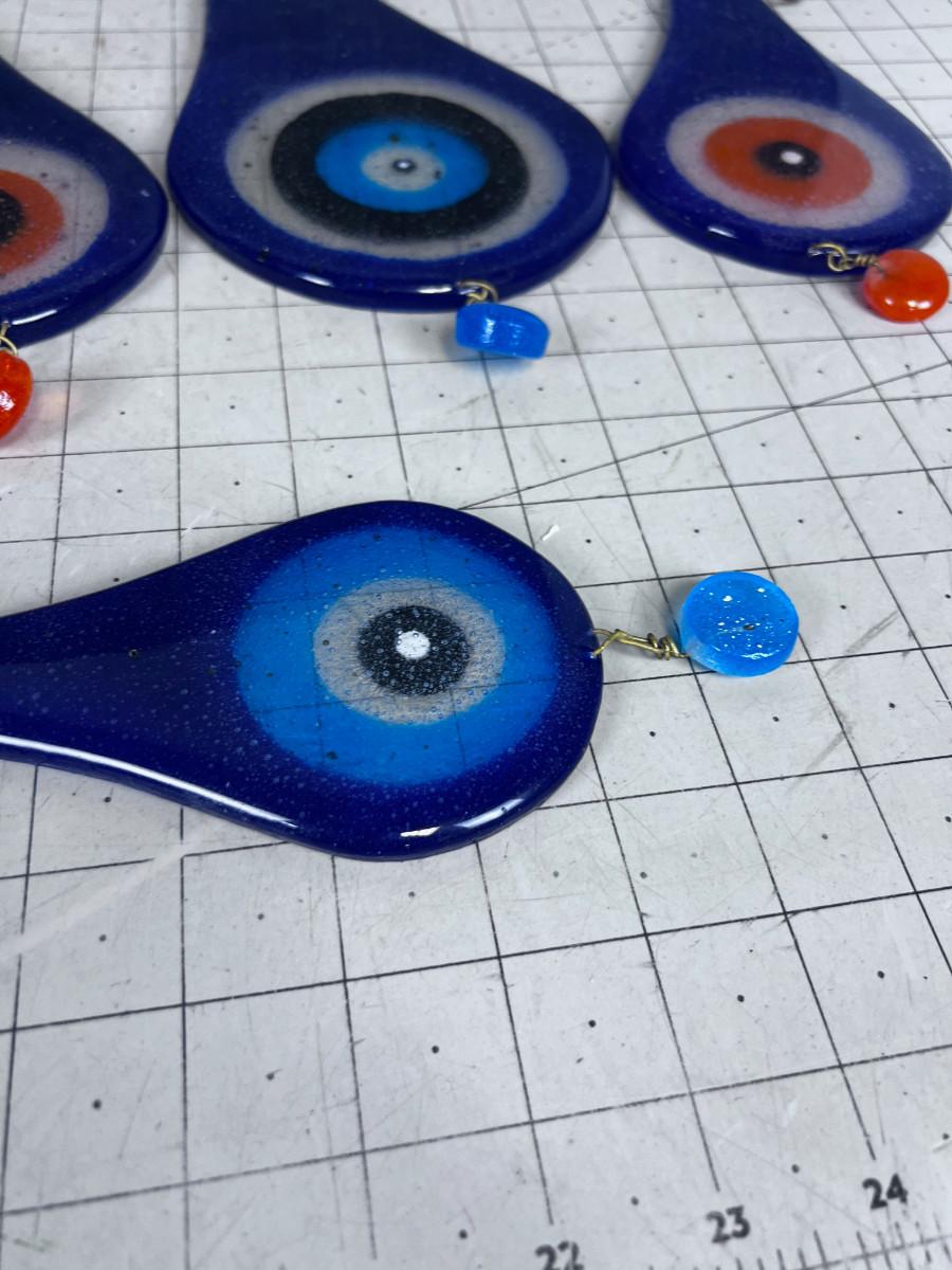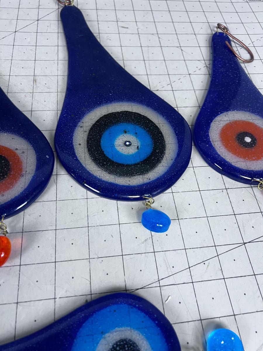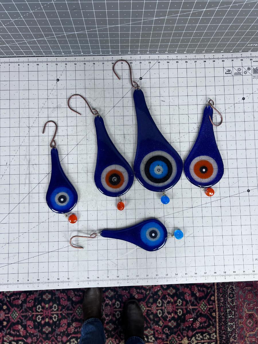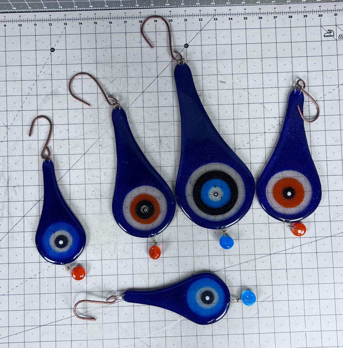 Hand Blown Glass Tear Drops (5) Various Sizes Blue tone