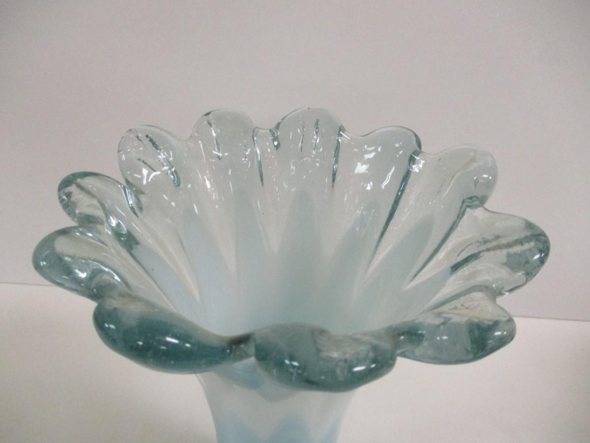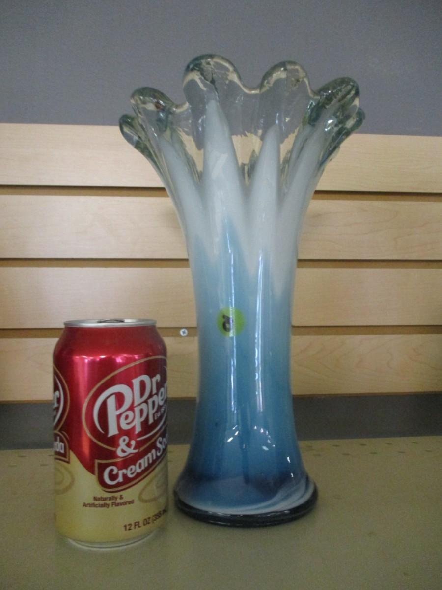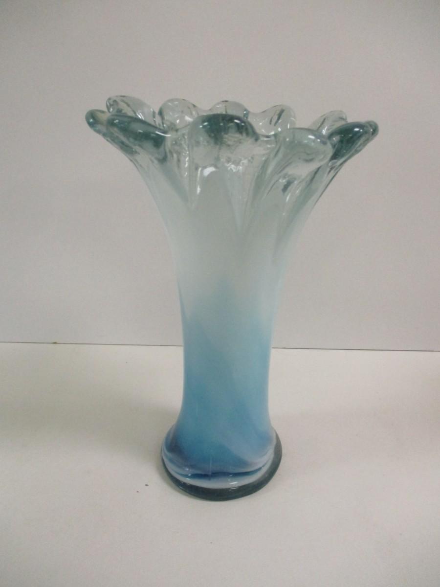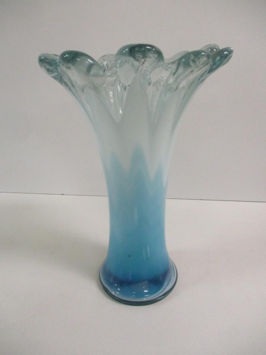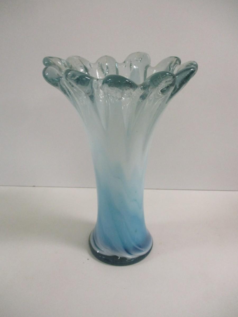 Hand Blown Glass Vase Blue Clear Swirl Flower Petal Approx 10 1/2" Tall #10