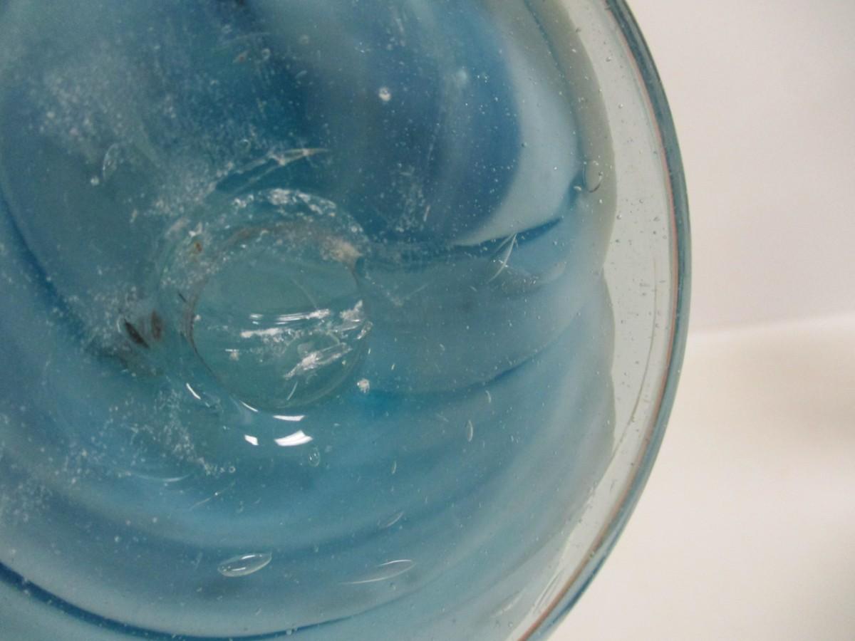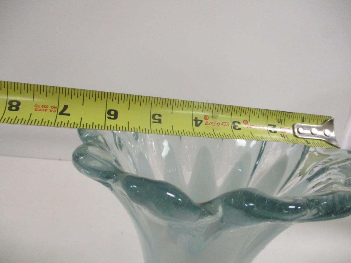 Hand Blown Glass Vase Blue Clear Swirl Flower Petal Approx 10 1/2" Tall #9