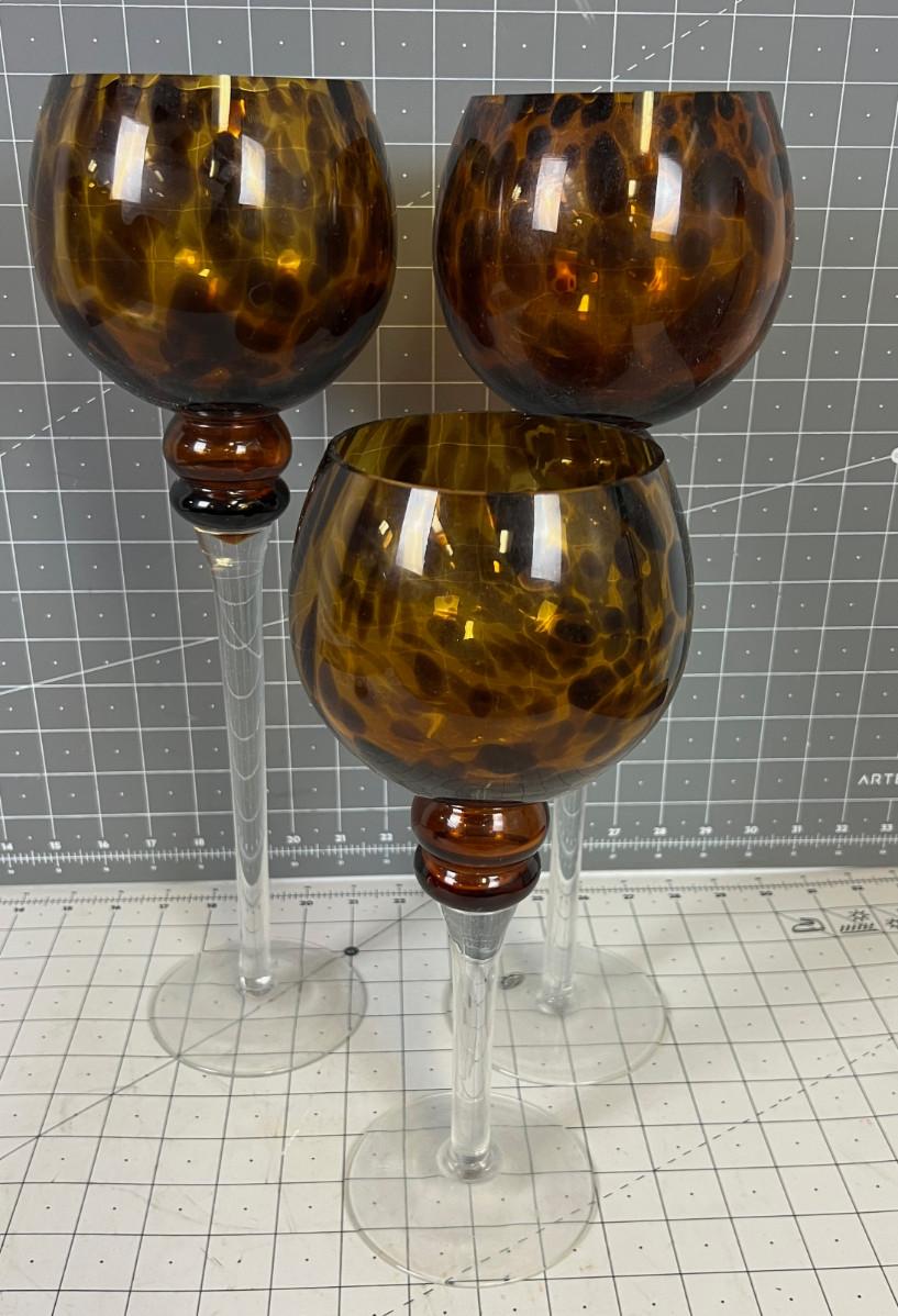 Hand Blown Glass Vases  (3) Giant Goblet Style