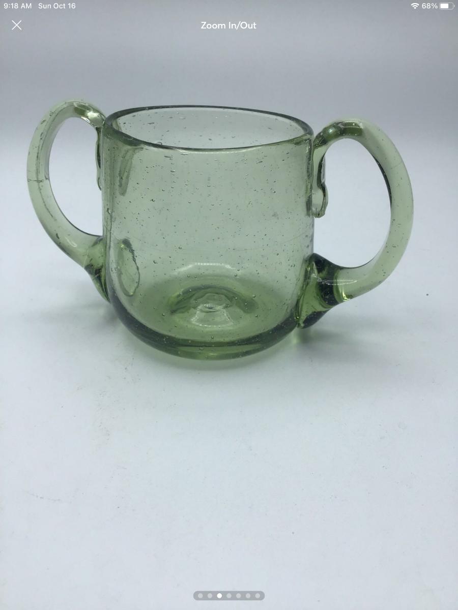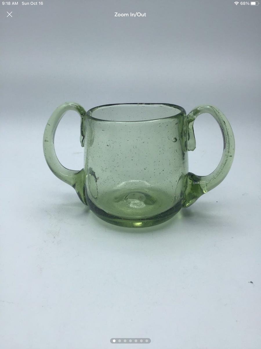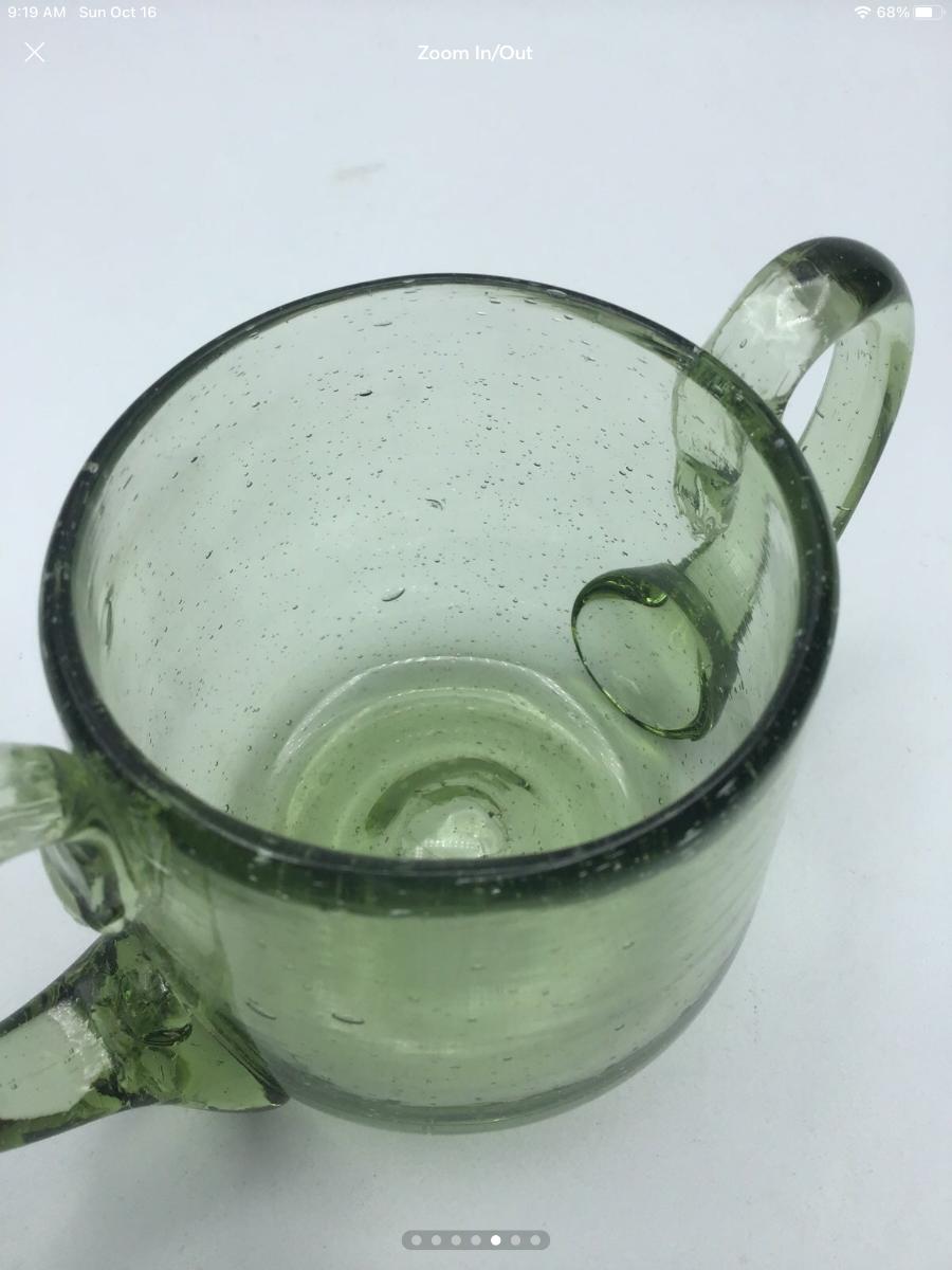 Hand blown Green Glass Open Sugar Pontil Mark Applied Handles