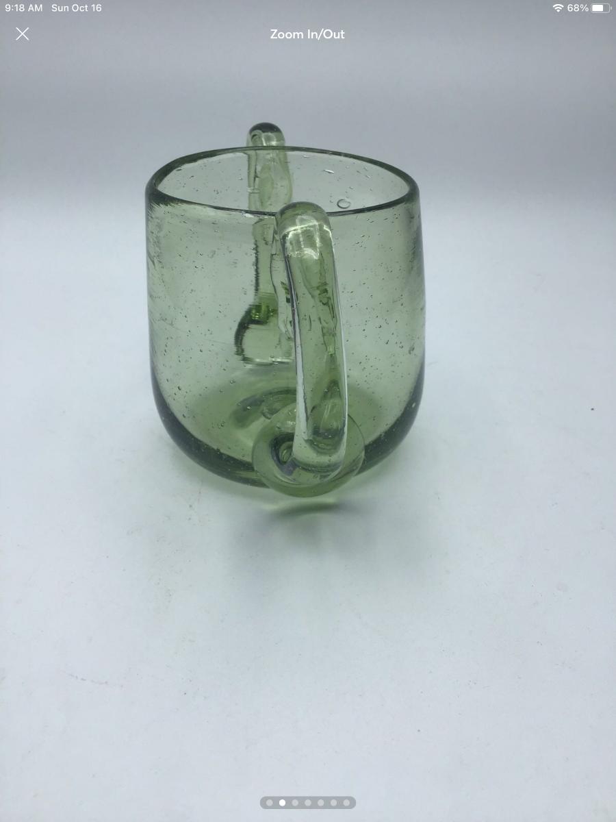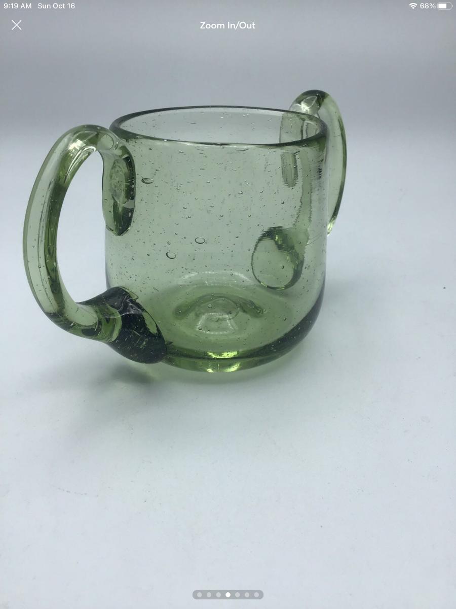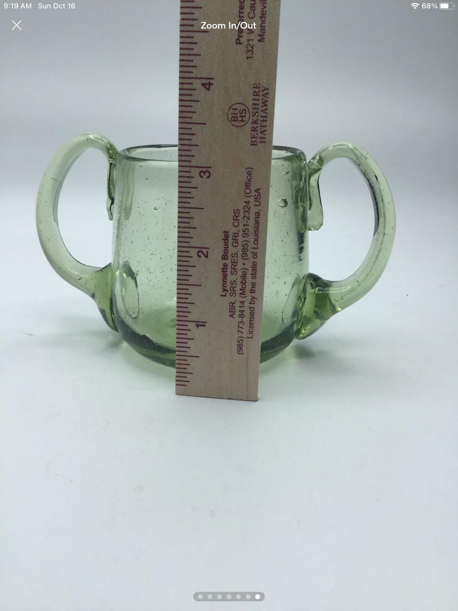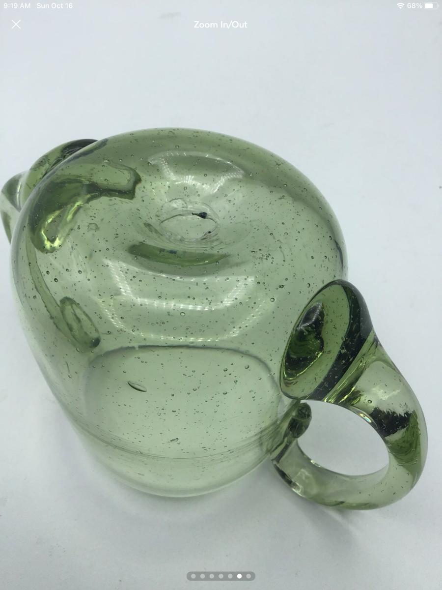 Hand blown Green Glass Open Sugar Pontil Mark Applied Handles