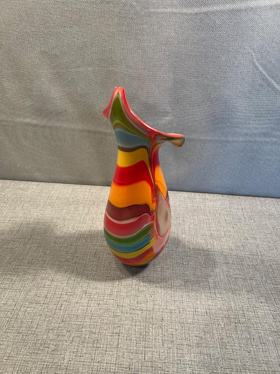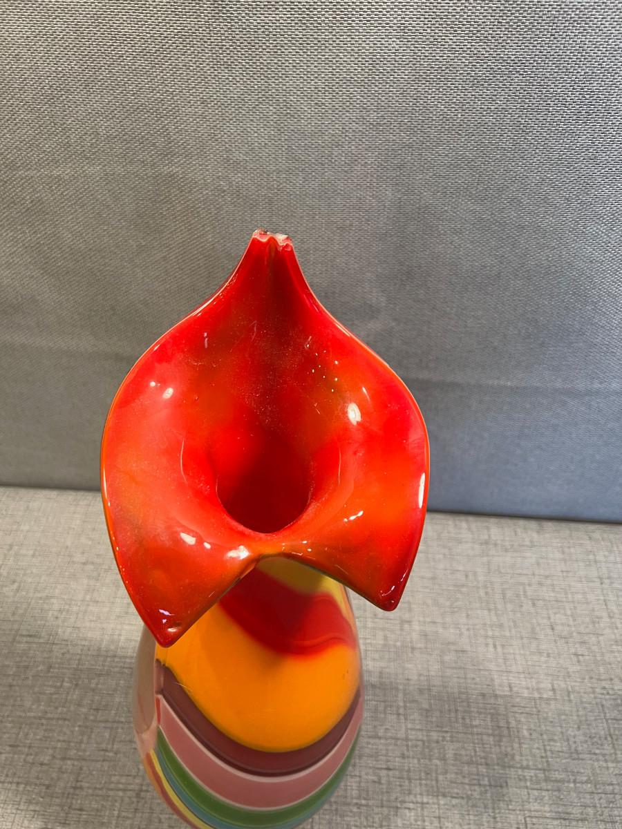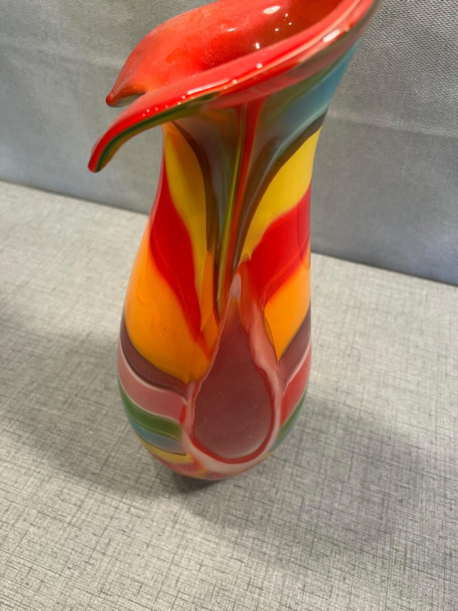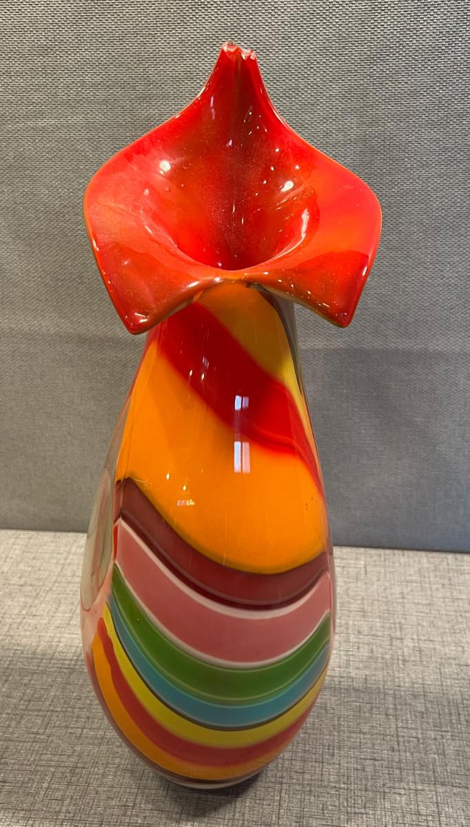Hand Blown "Jack in the Pulpit" Glass Vase Rainbow Colors