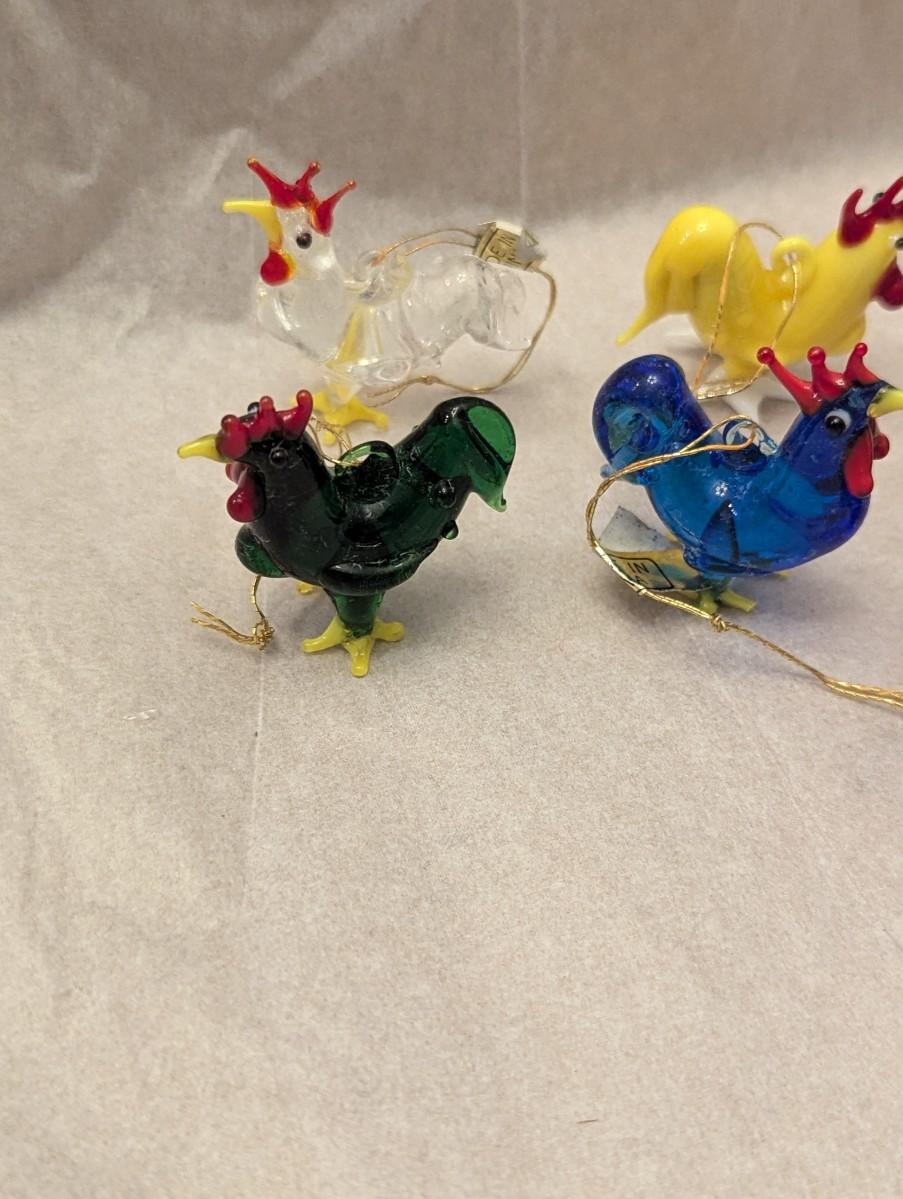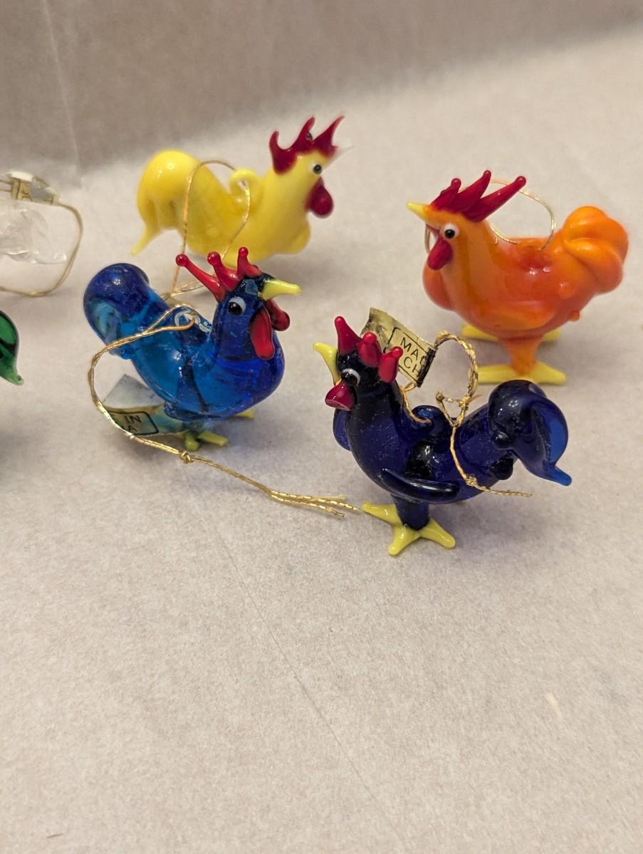 Hand Blown Miniature Glass Rooster Ornaments #18