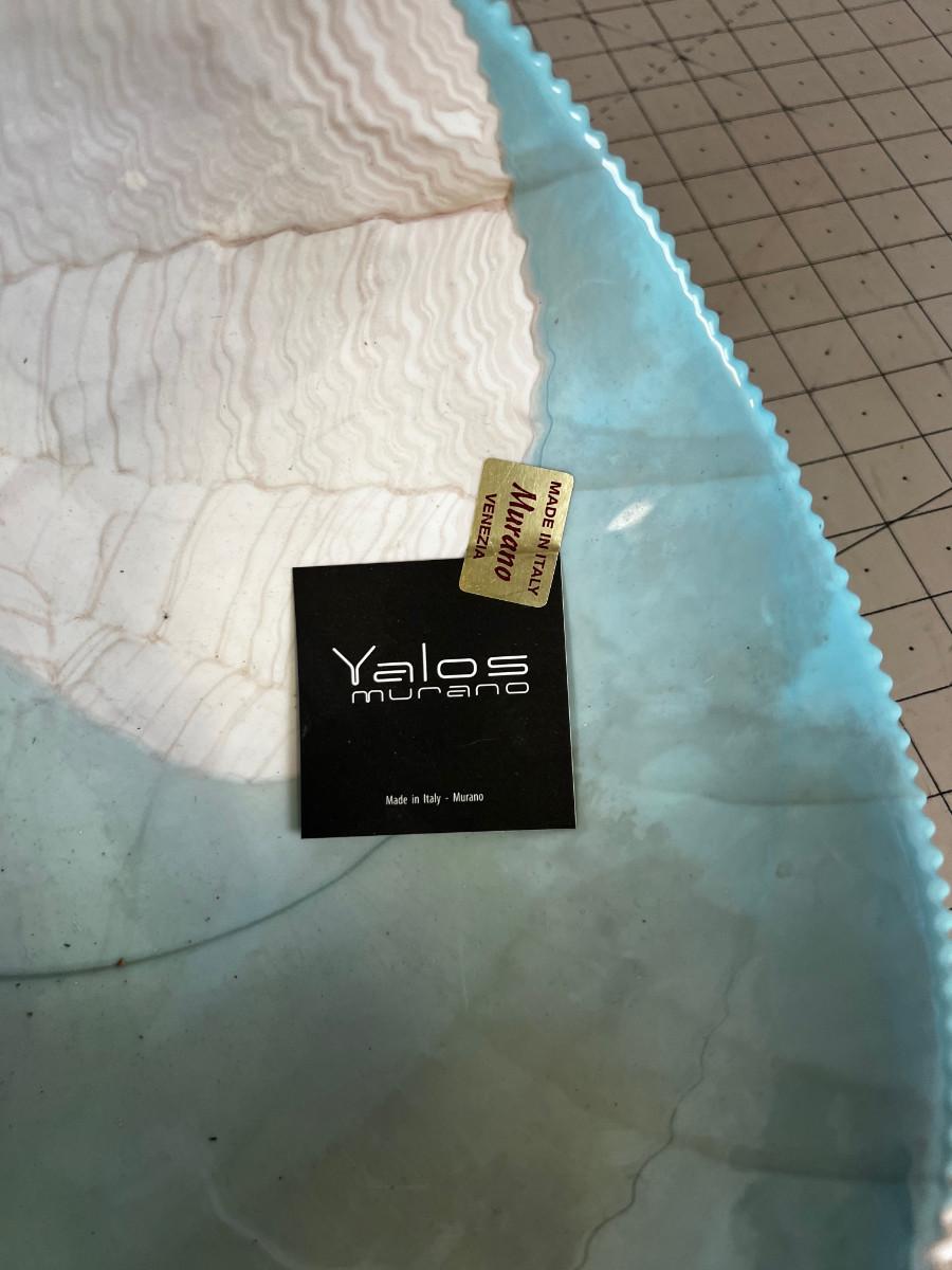 Hand Blown Murano GLASS Bowl, Light Blue and White Colors