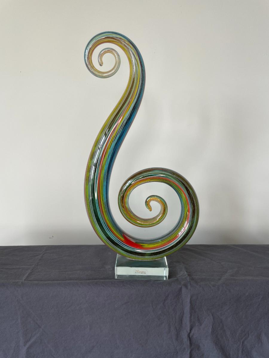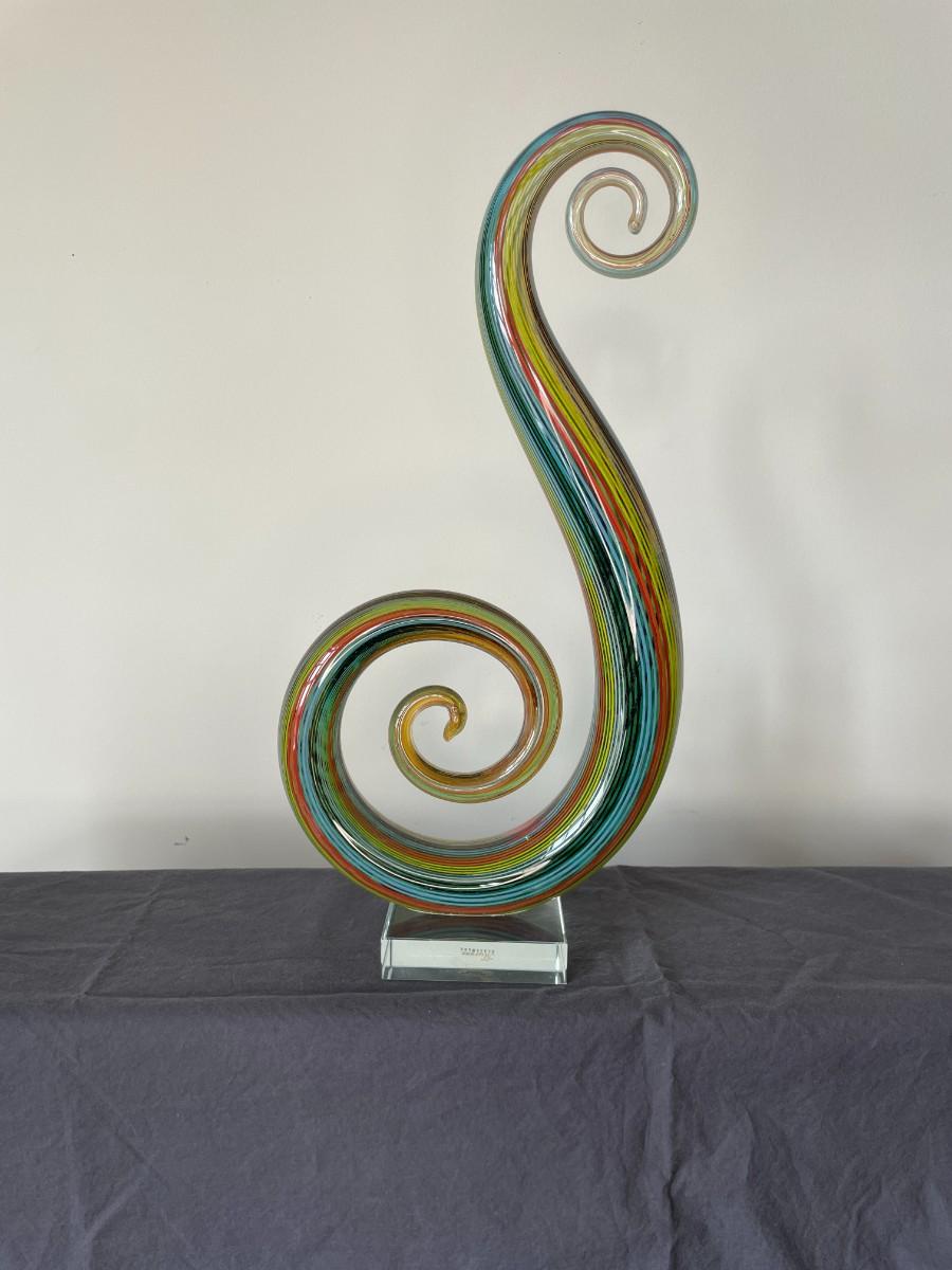 Hand Blown Murano Glassware Art Glass Sculpture Music Treble Clef Note. 14"H x 7"W x 3.25D. Two available!