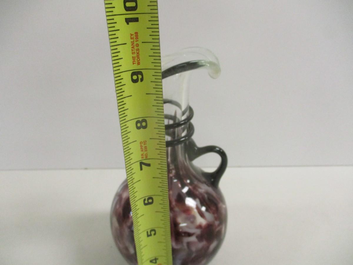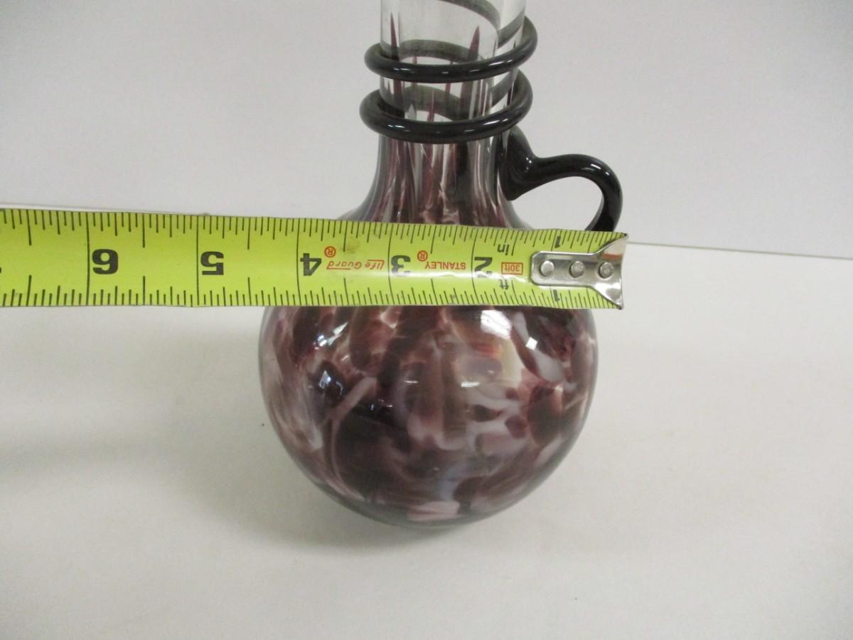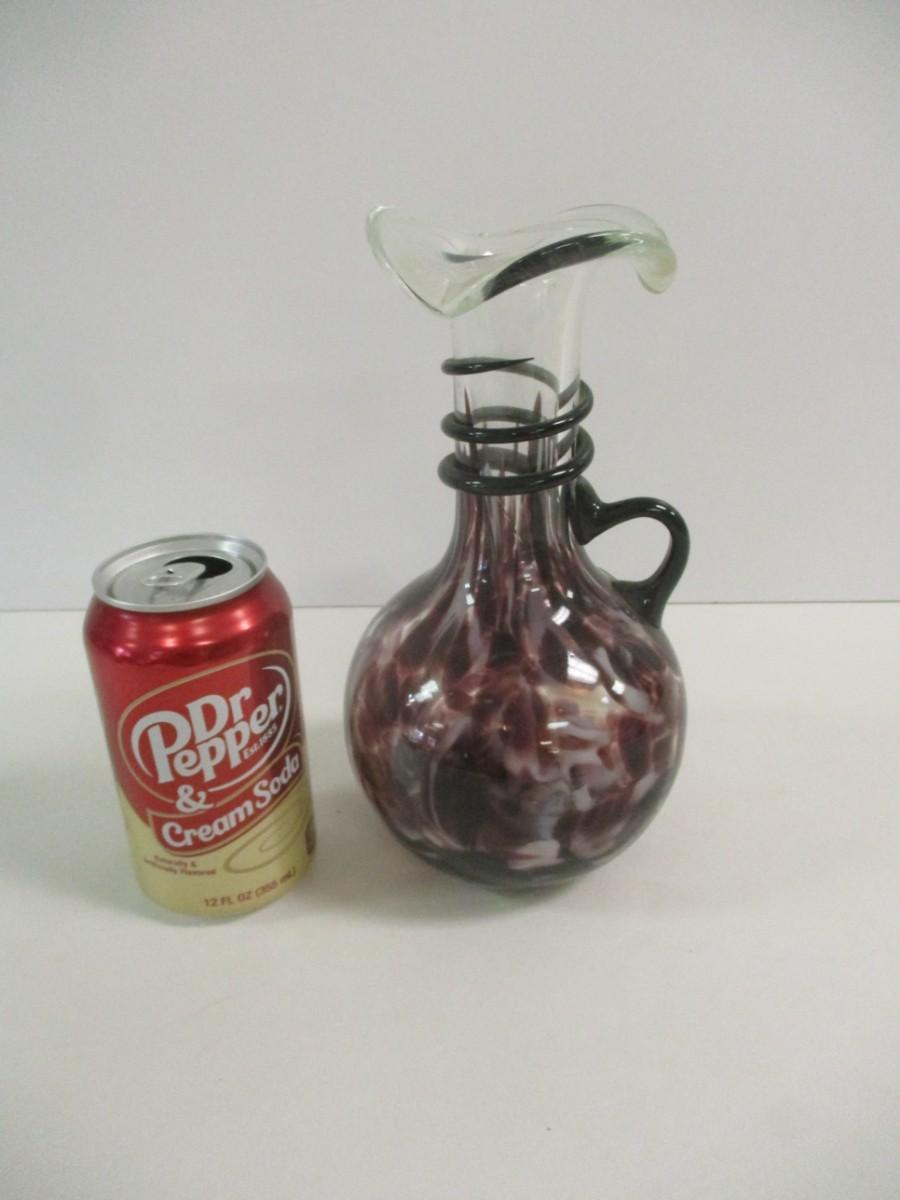 Hand Blown Murano Venetian Amethyst Spotted Vase With Handle & Ruffled Top Approx 9" Tall #38