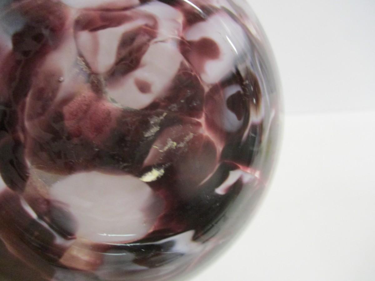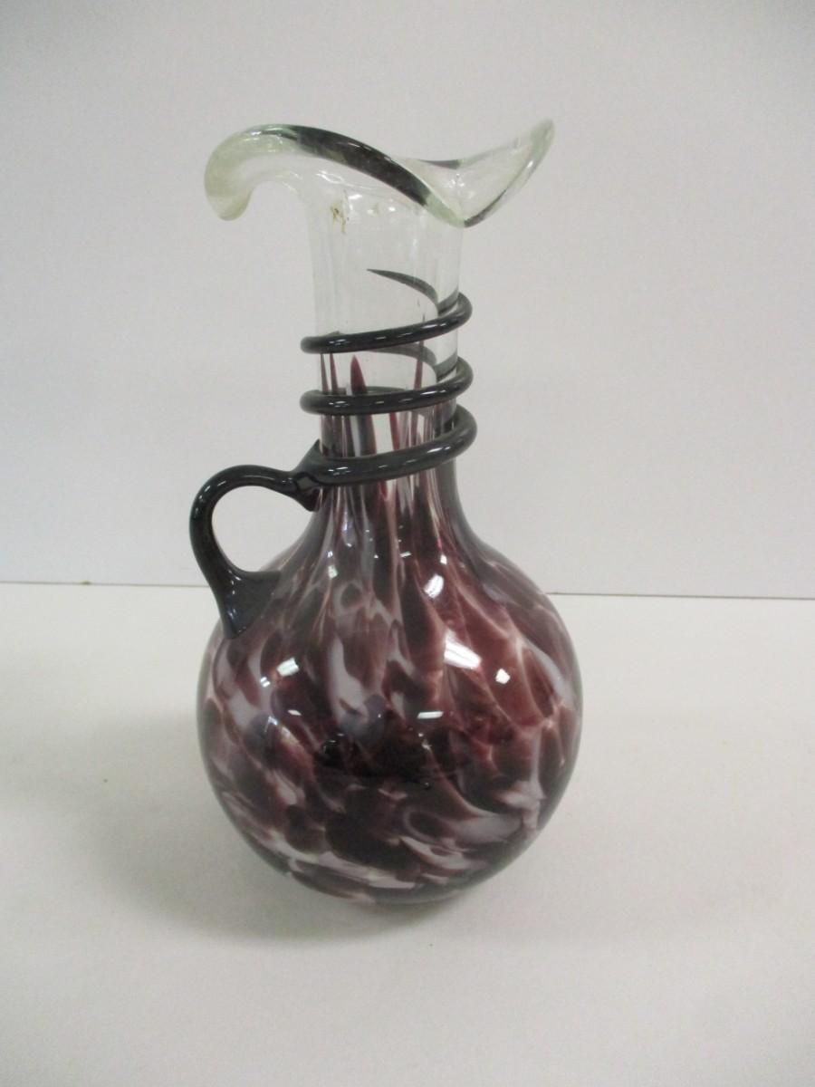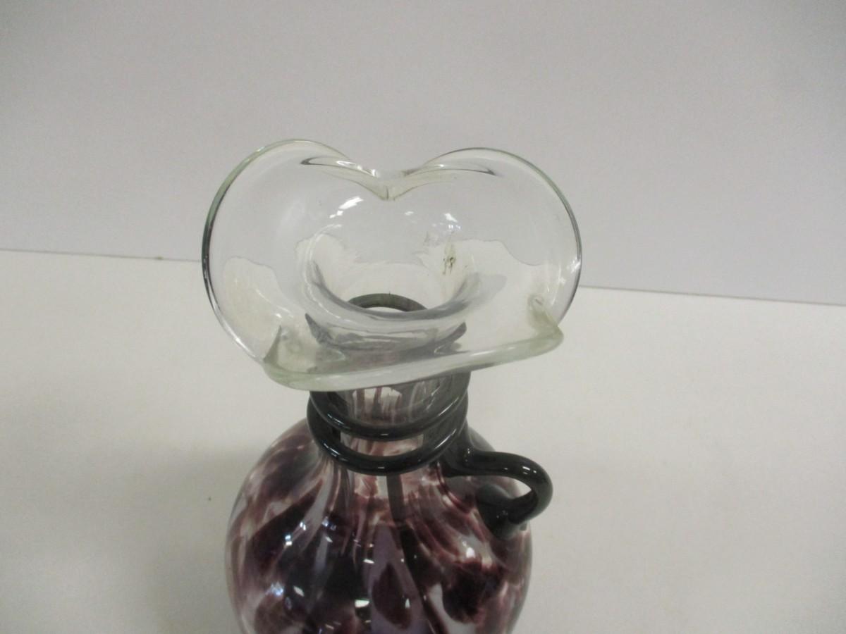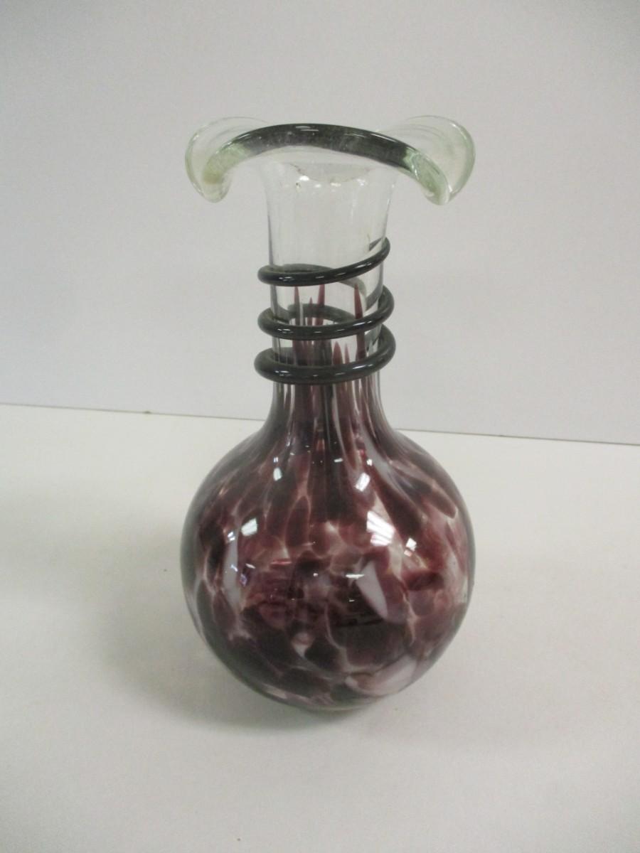 Hand Blown Murano Venetian Amethyst Spotted Vase With Handle & Ruffled Top Approx 9" Tall #38