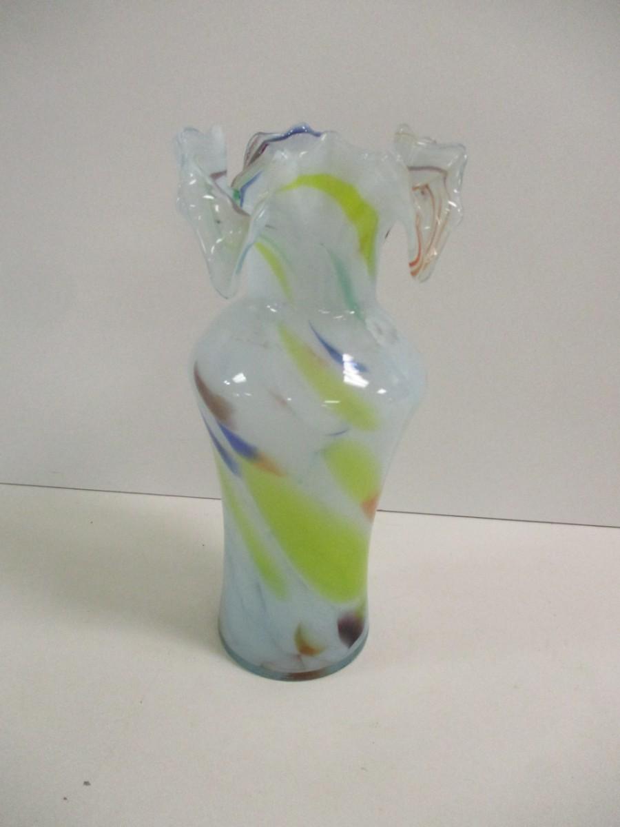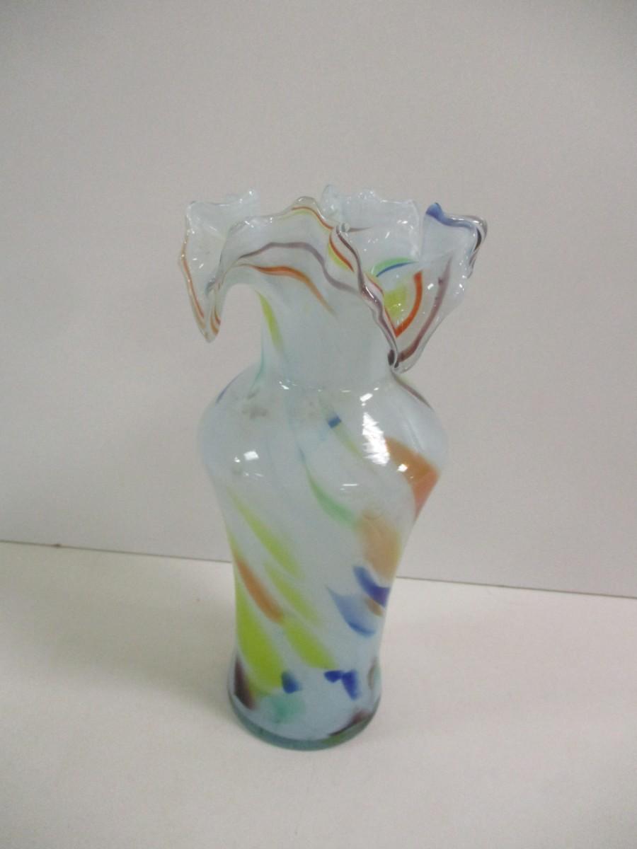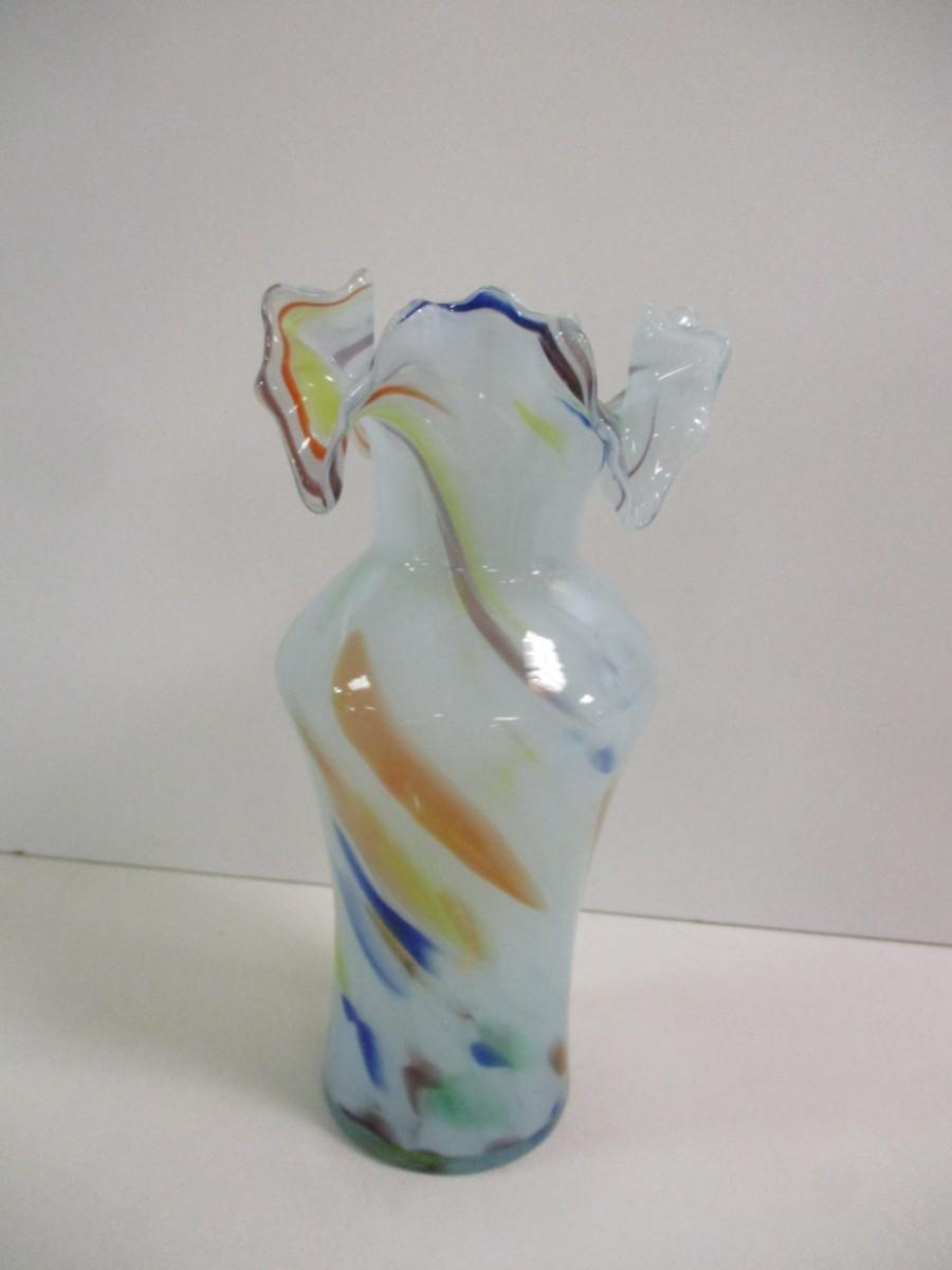 Hand Blown Multi-Colored Murano Ruffled Vase #17