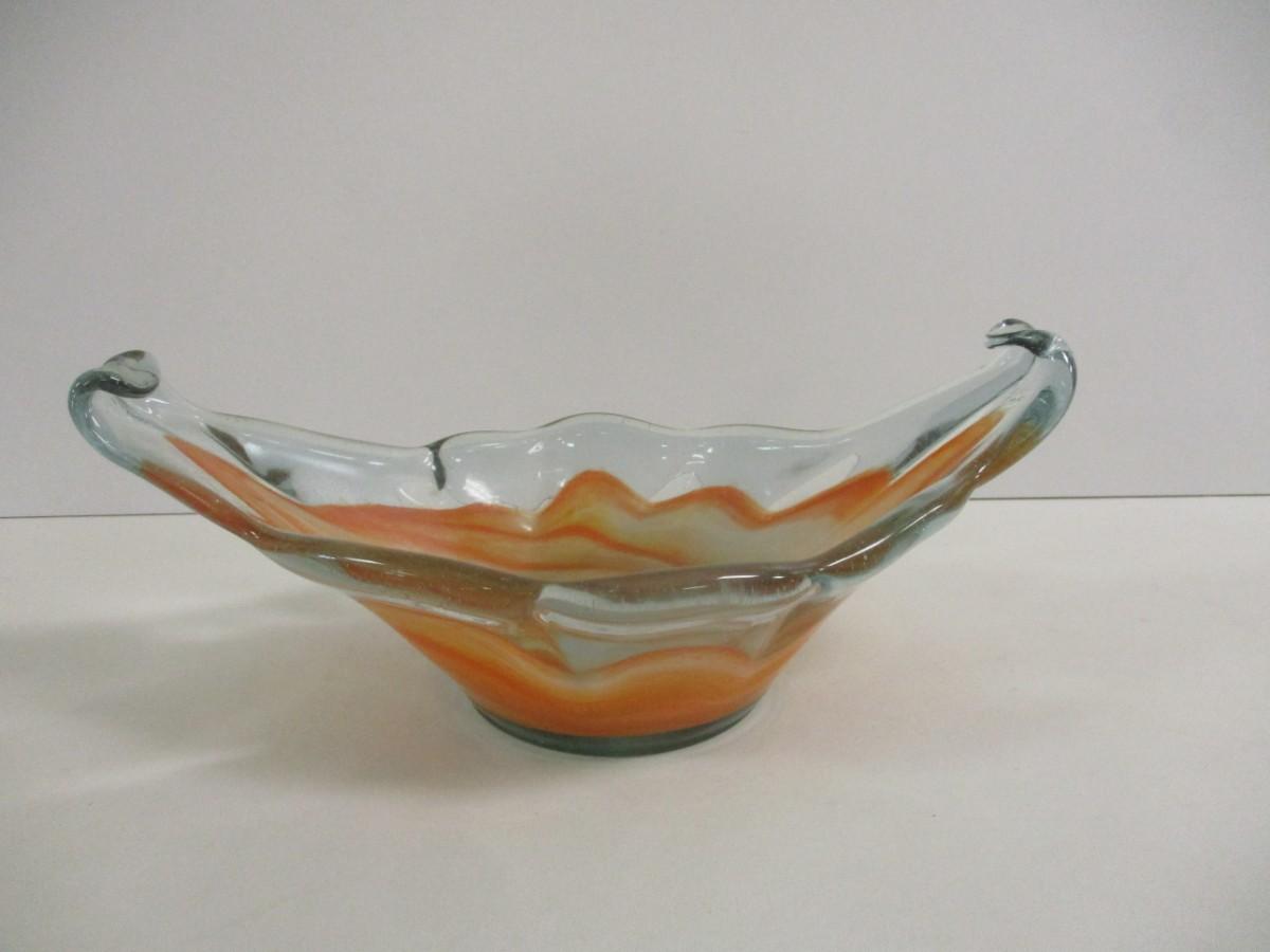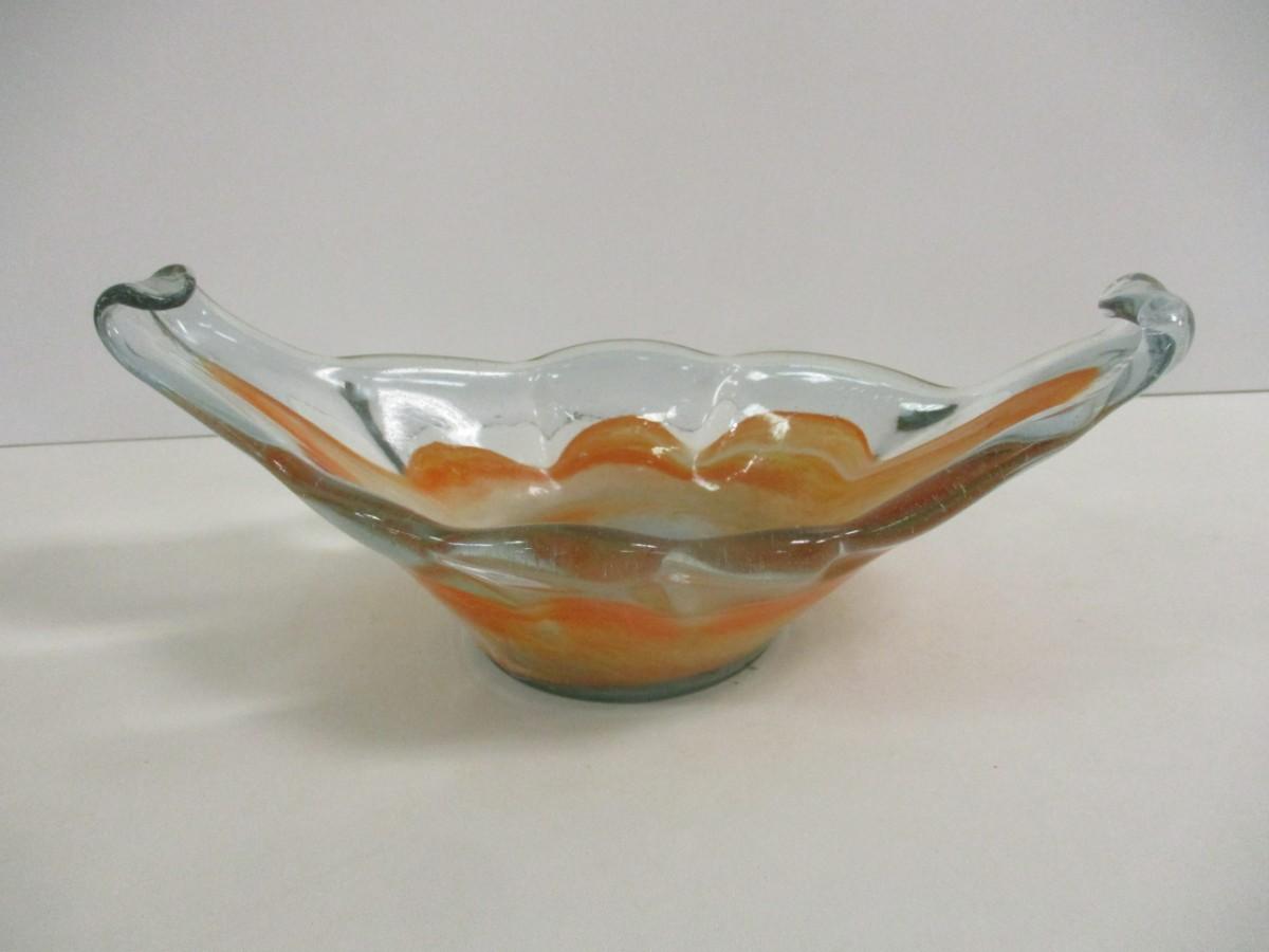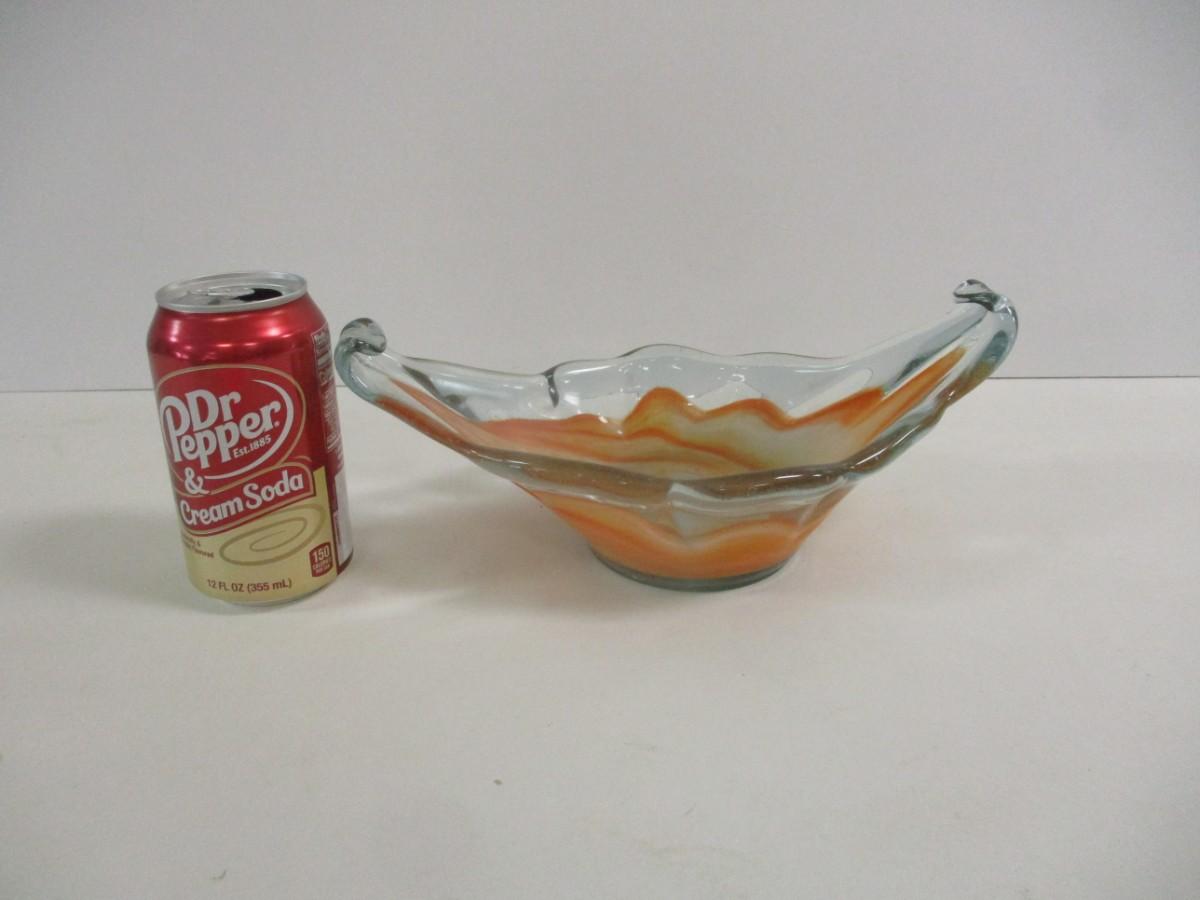 Hand Blown Orange & Clear Sooner Stretch Glass Vase #30