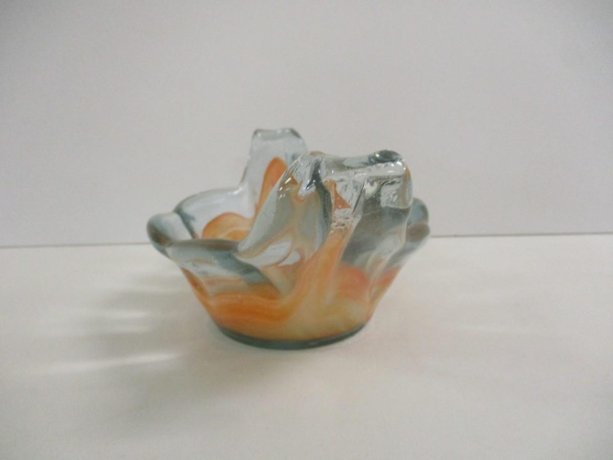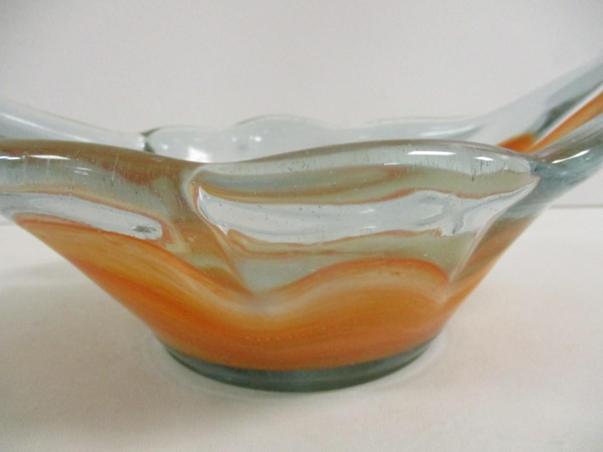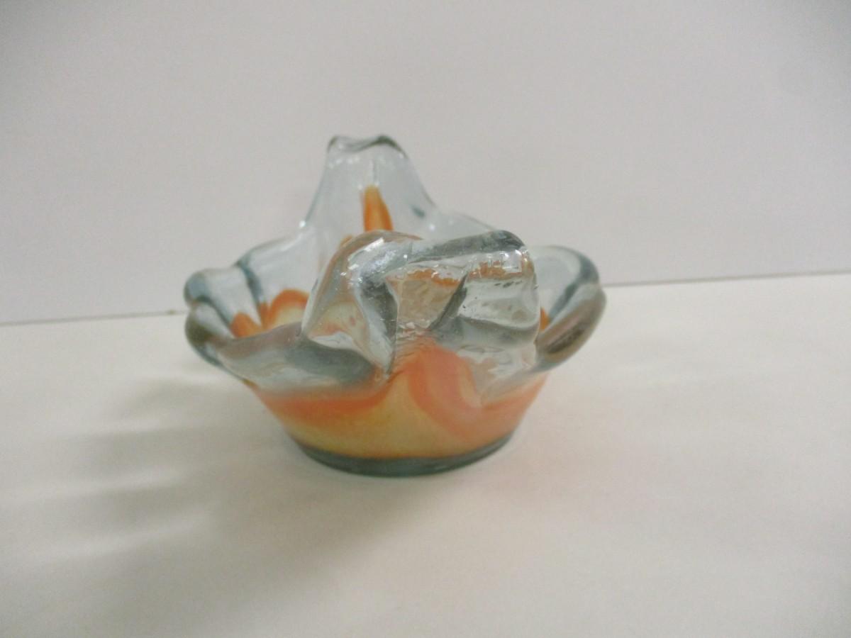Hand Blown Orange & Clear Sooner Stretch Glass Vase #30