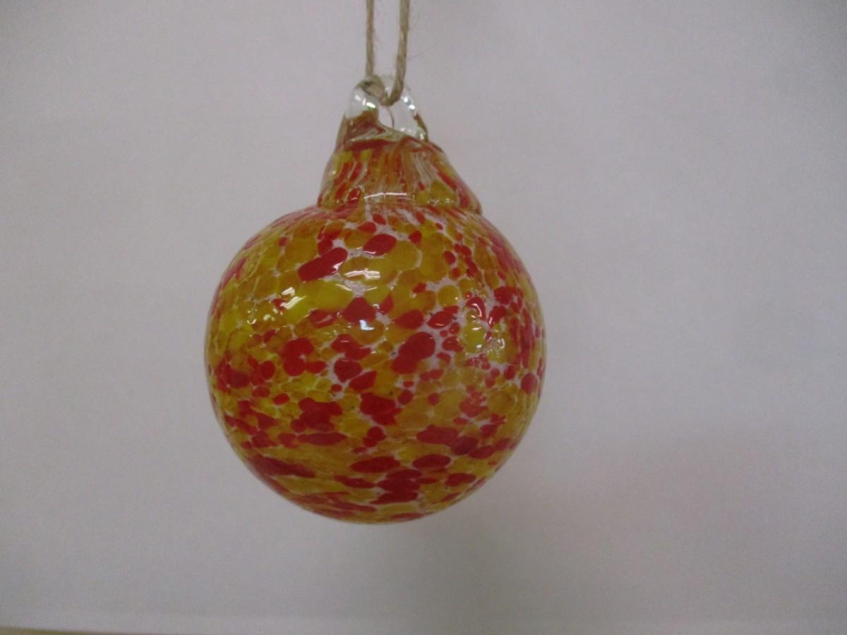 Hand Blown Red & Yellow Glass Ornament