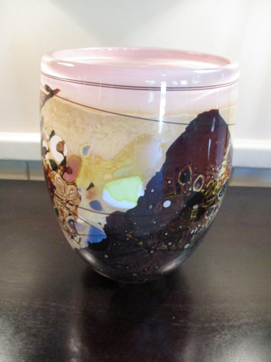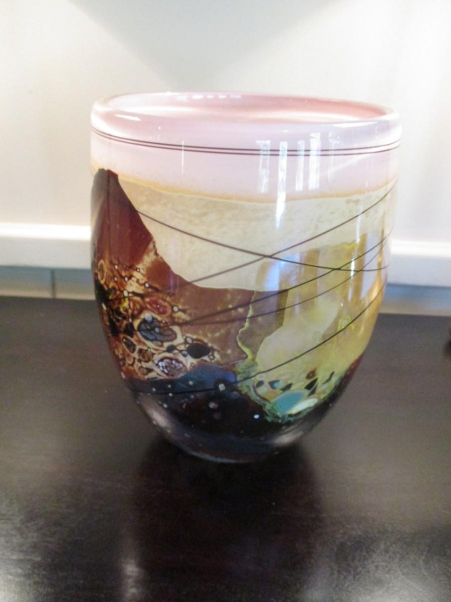 John Gerletti Abstract Design Hand Blown Studio Art Glass Vase - B