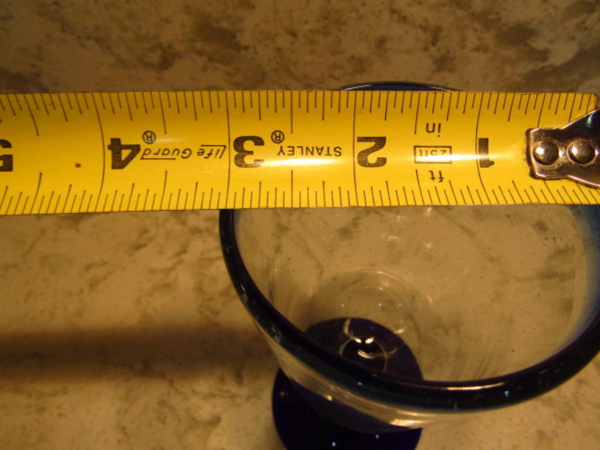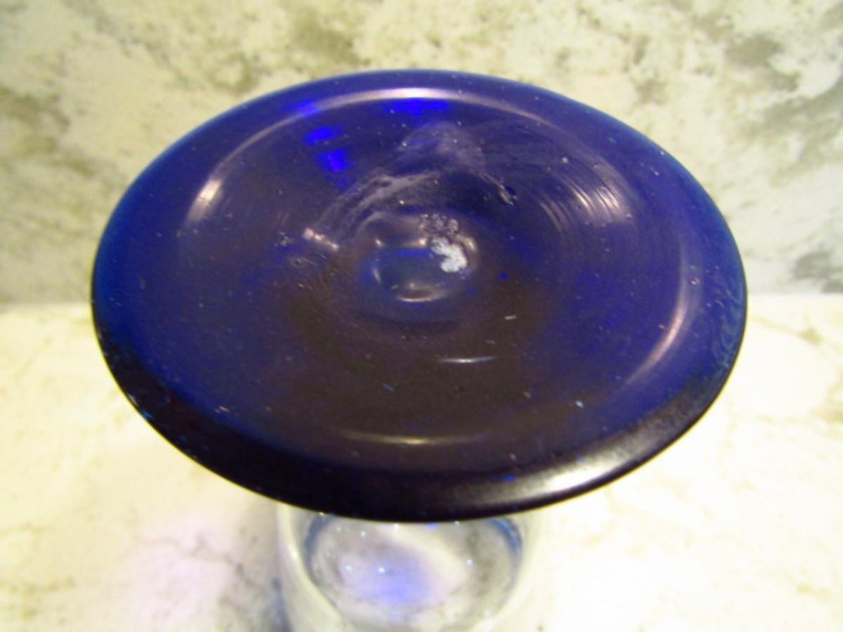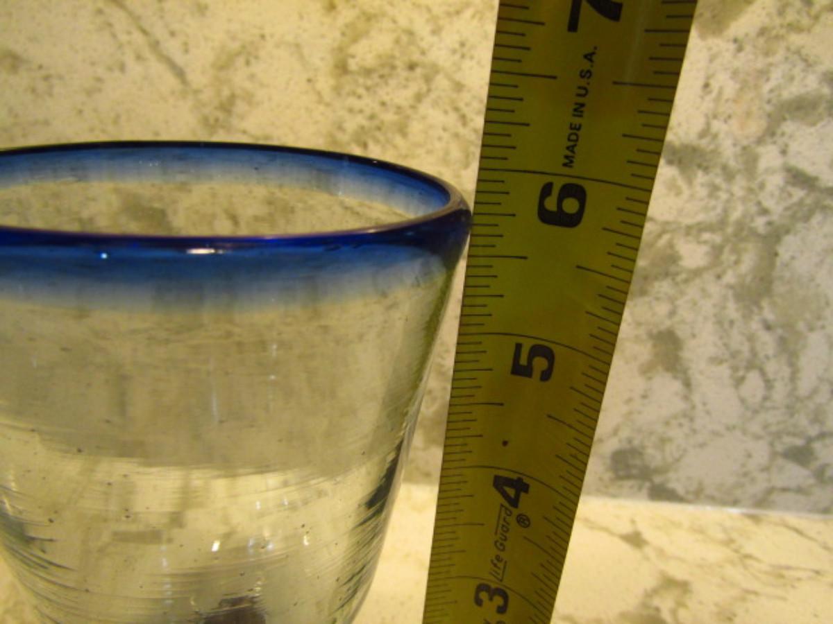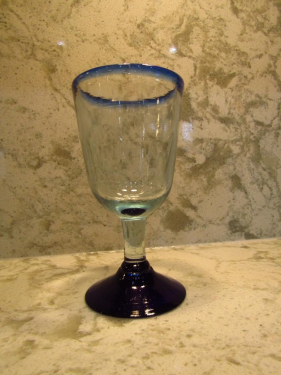 Hand Blown Stemmed Wine Glasses- Rounded Bottom- 12 Pieces (Kitchen). Clear and cobalt blue with air inclusions.