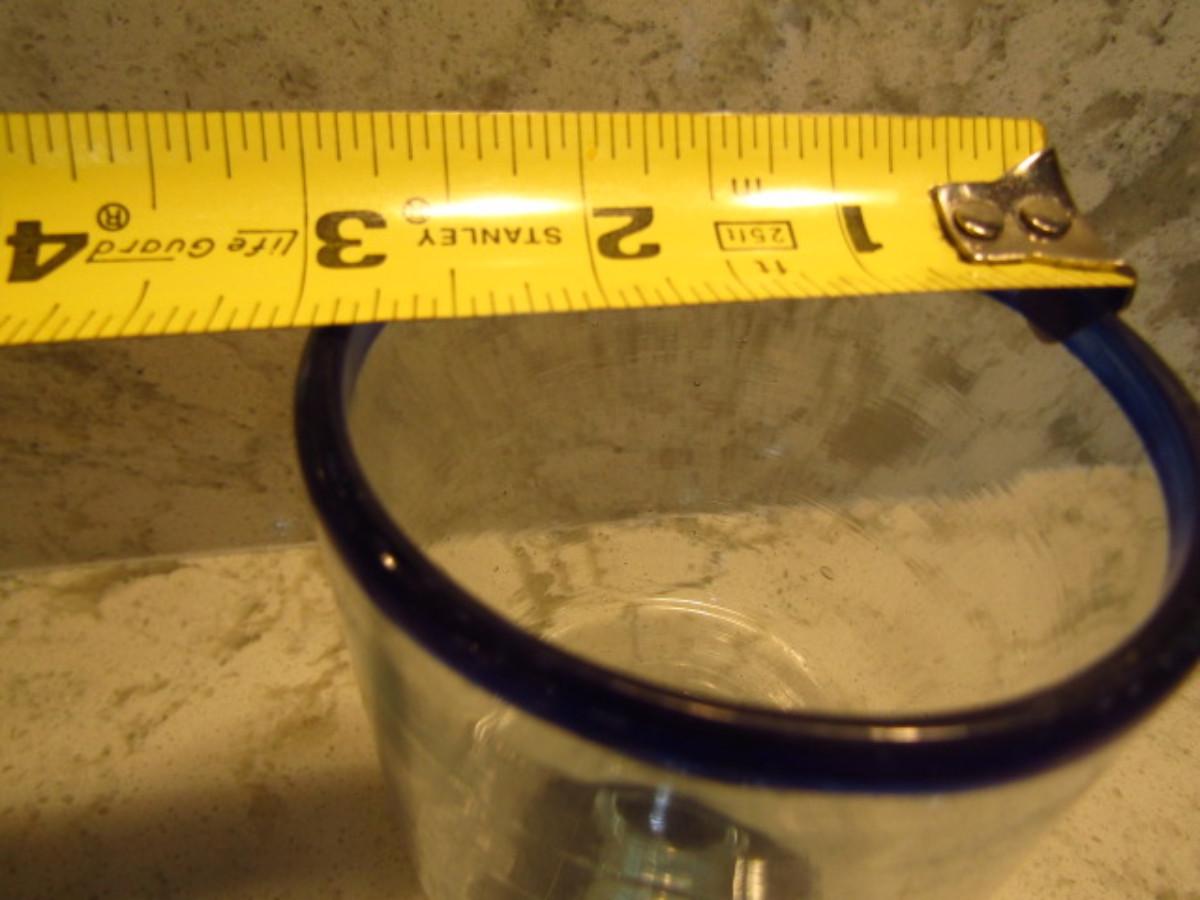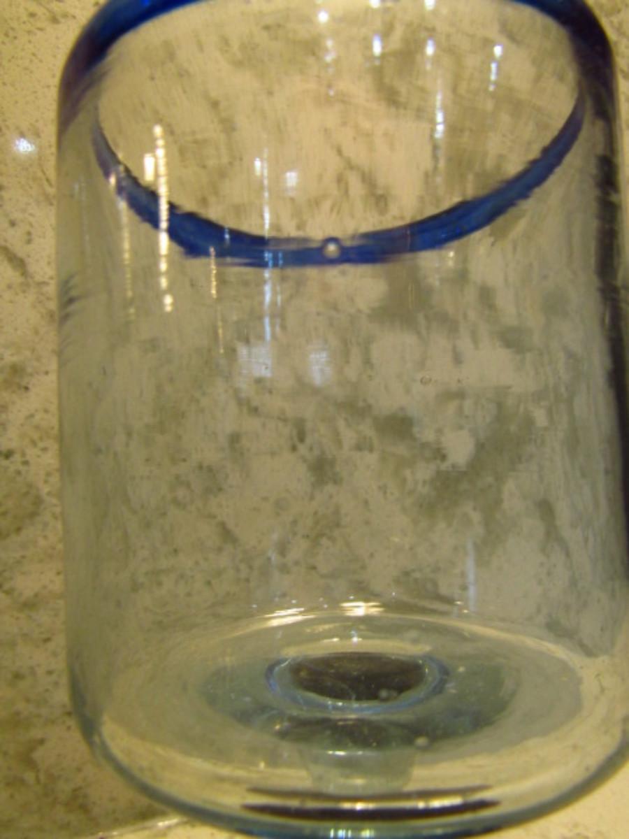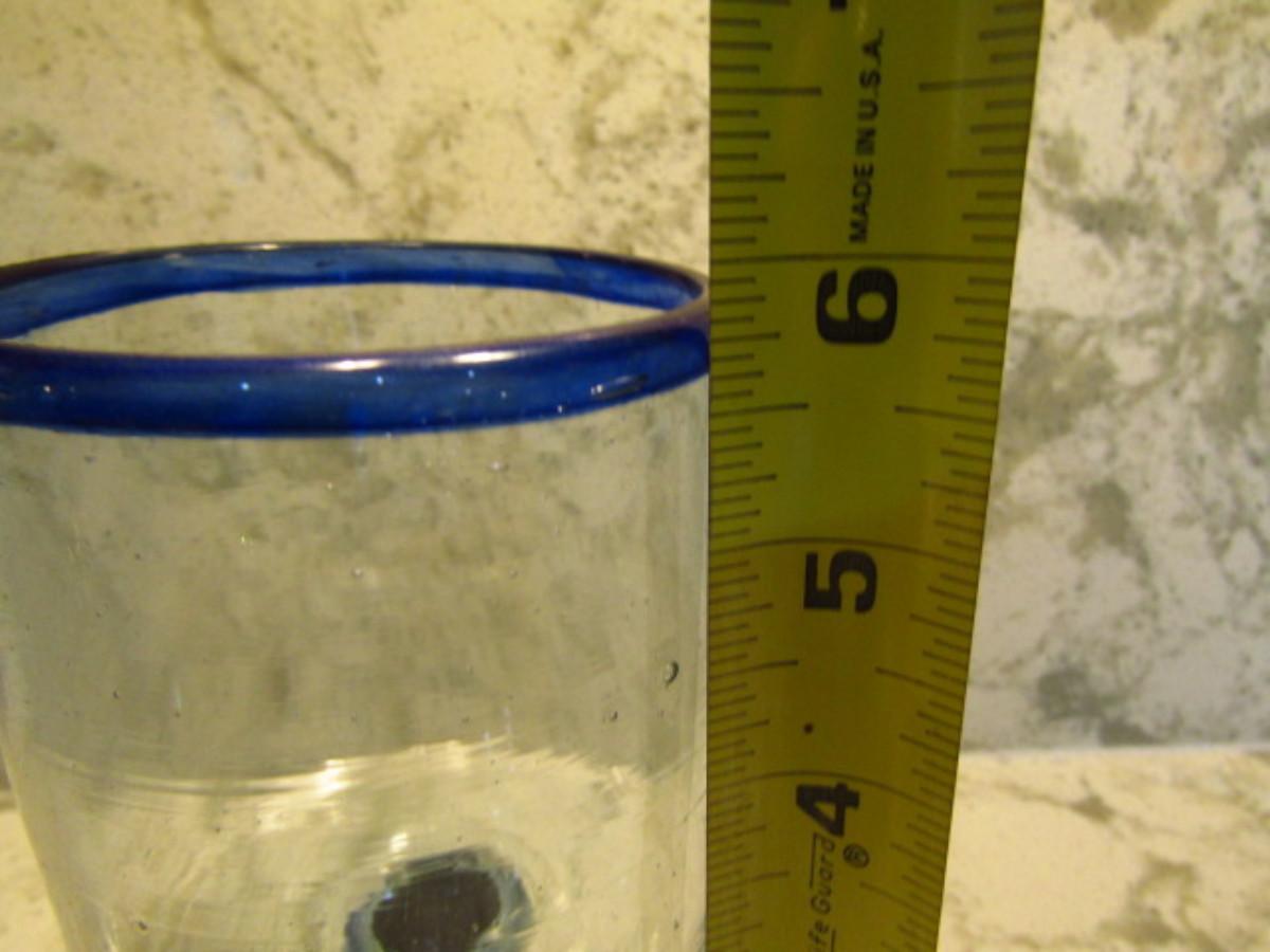 Hand Blown Stemmed Wine/Parfait Glasses- 11 Pieces (Kitchen). Clear and cobalt blue with air inclusions.
