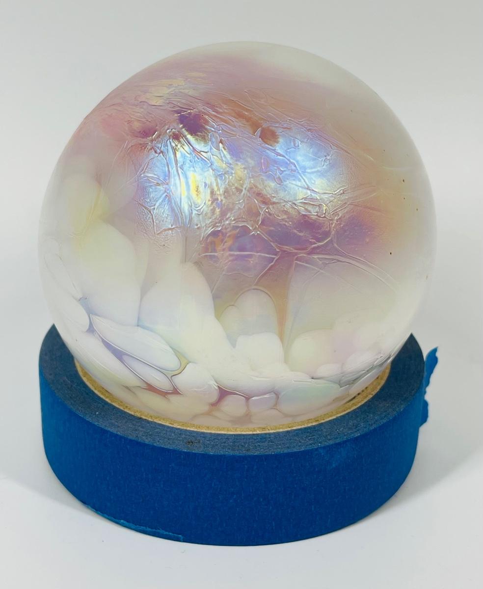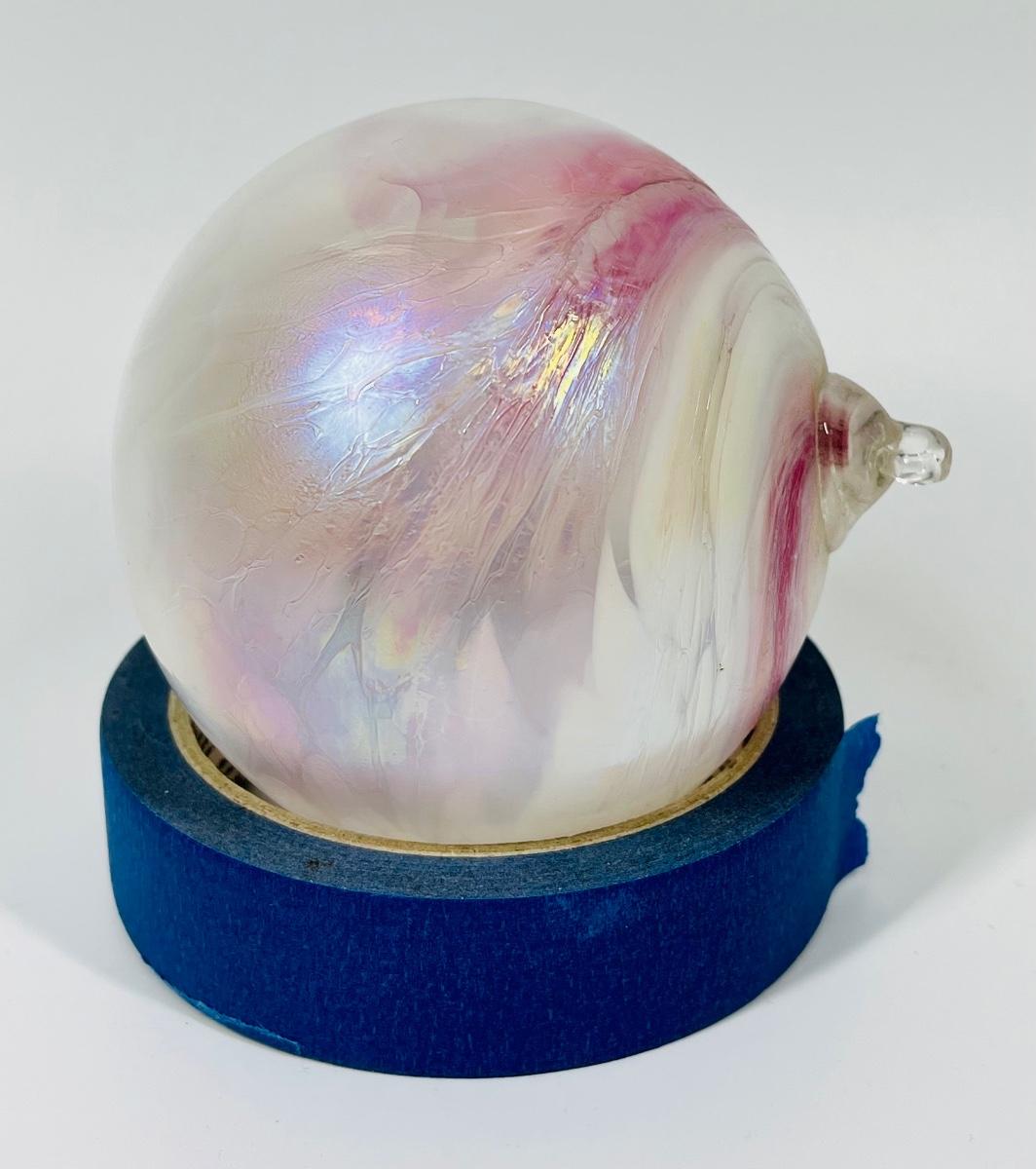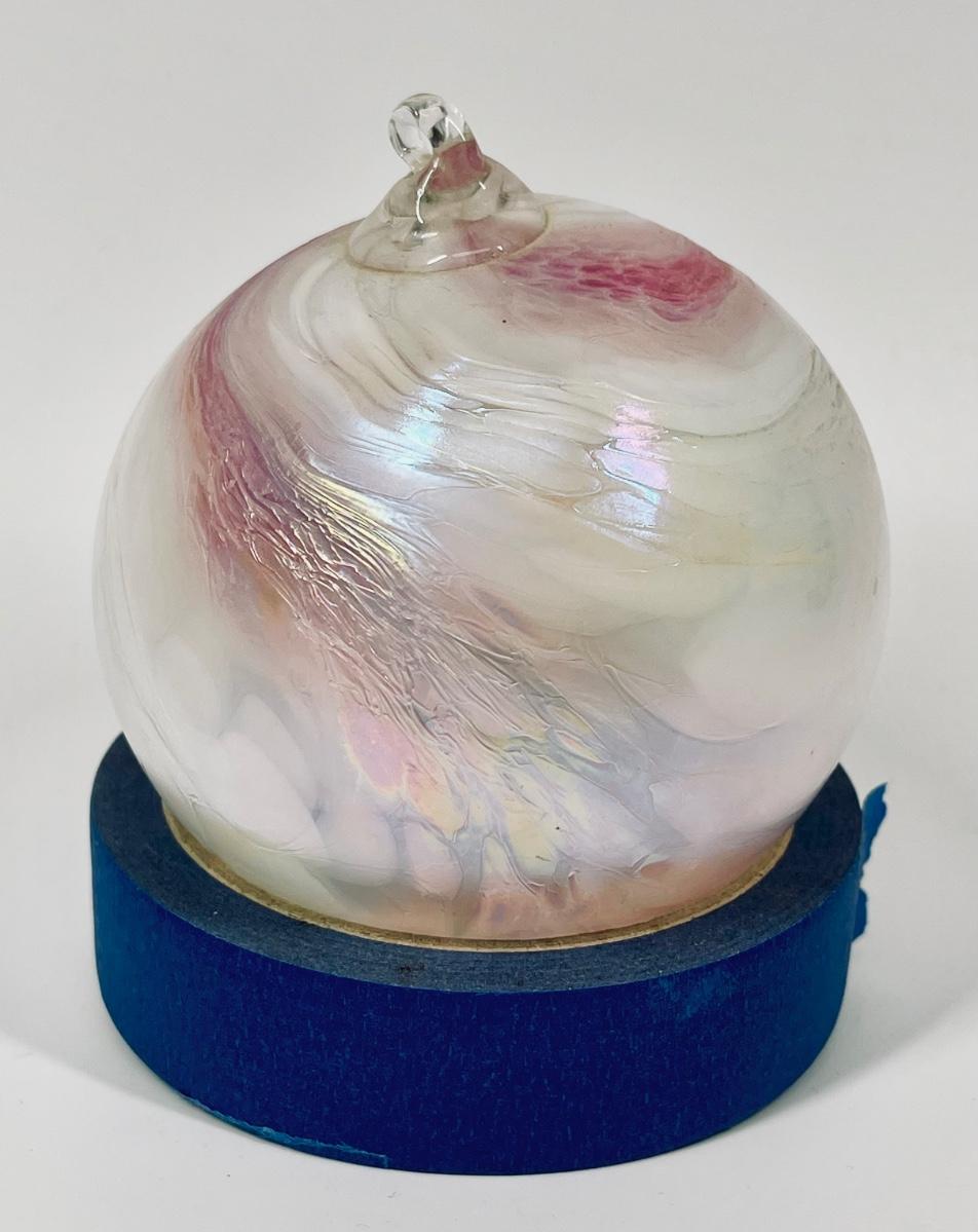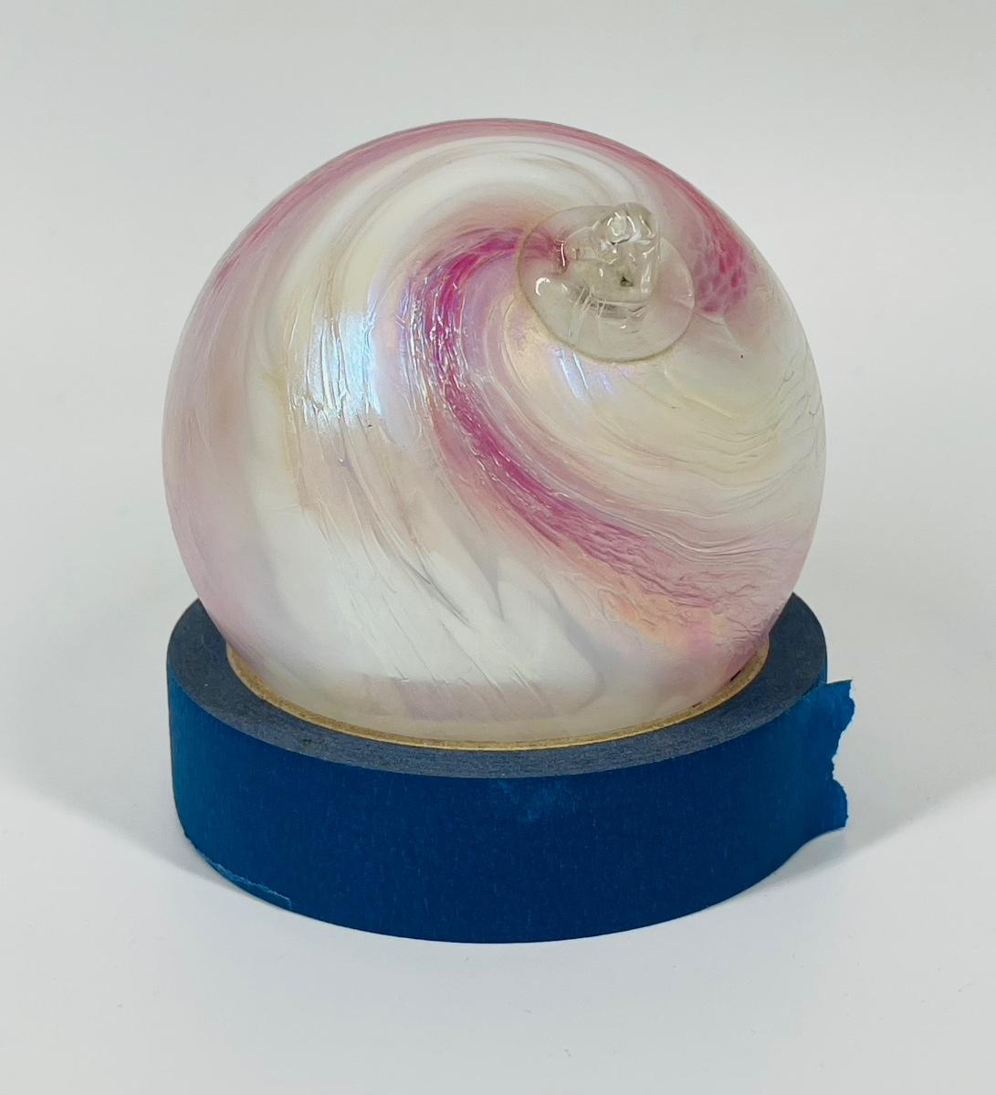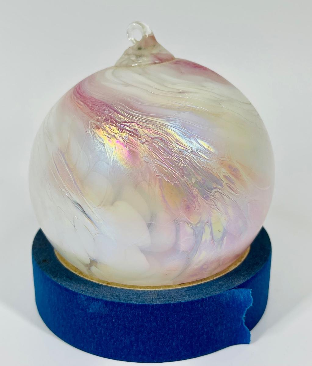 Hand Blown Studio Art Glass Pink Swirl Iridescent Ornament Friendship Ball Orb