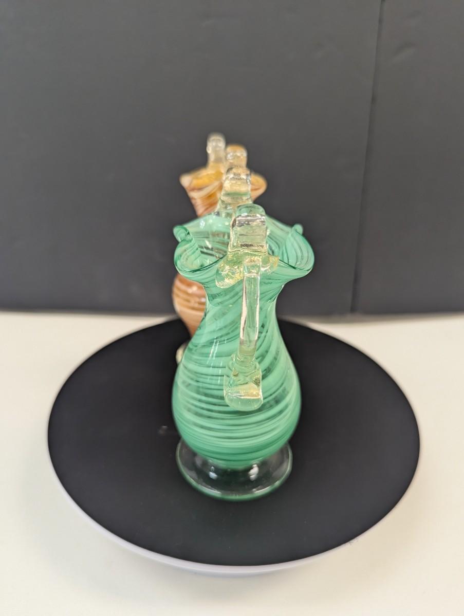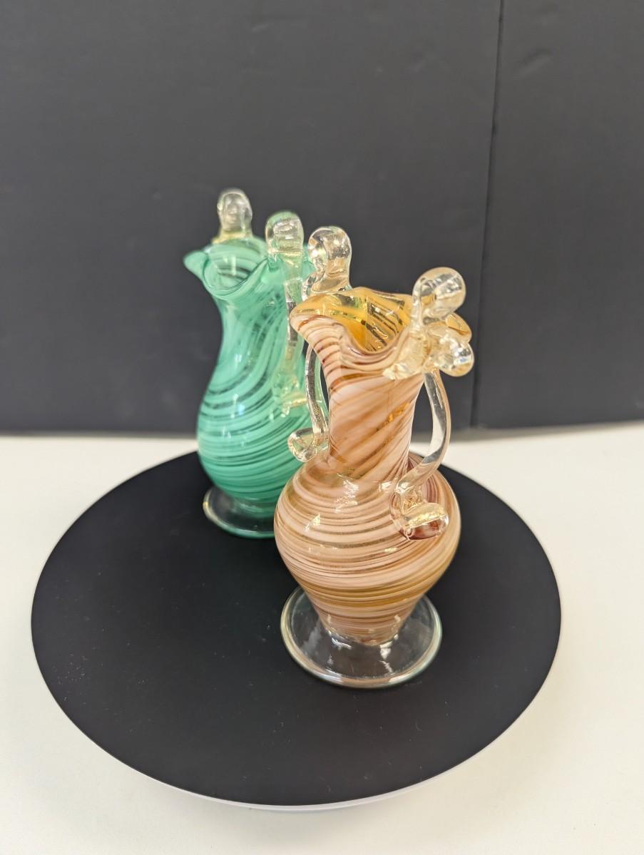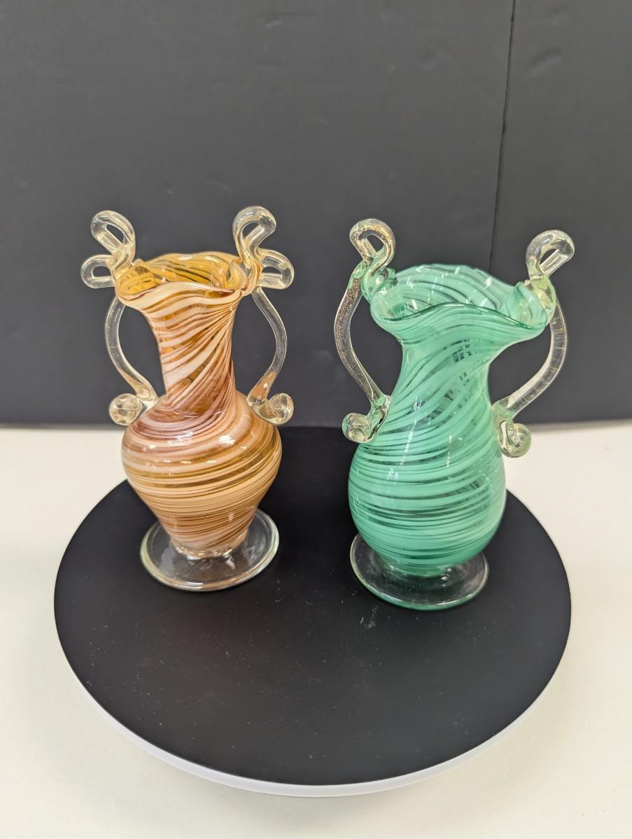 Hand Blown Venetian Glass Orange Stripe & Green Stripe Vases