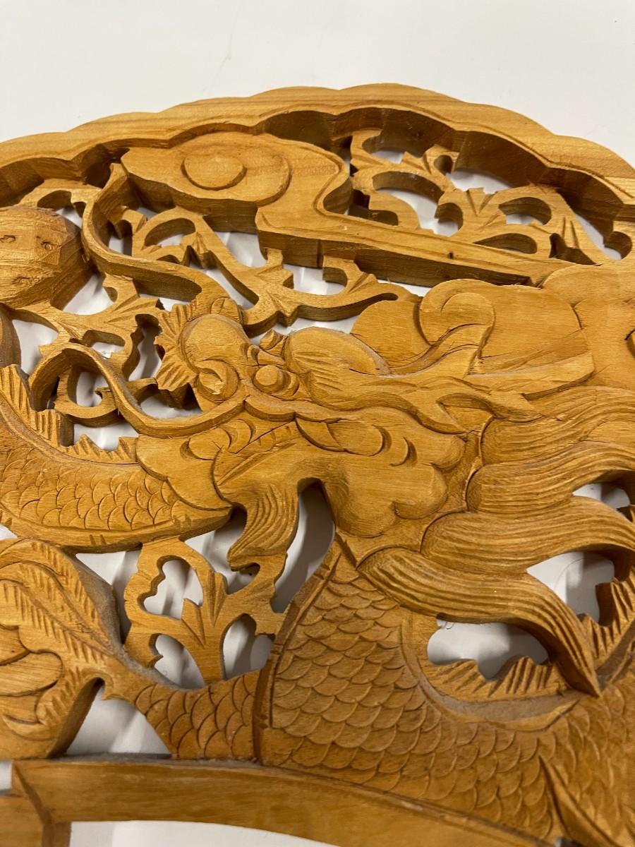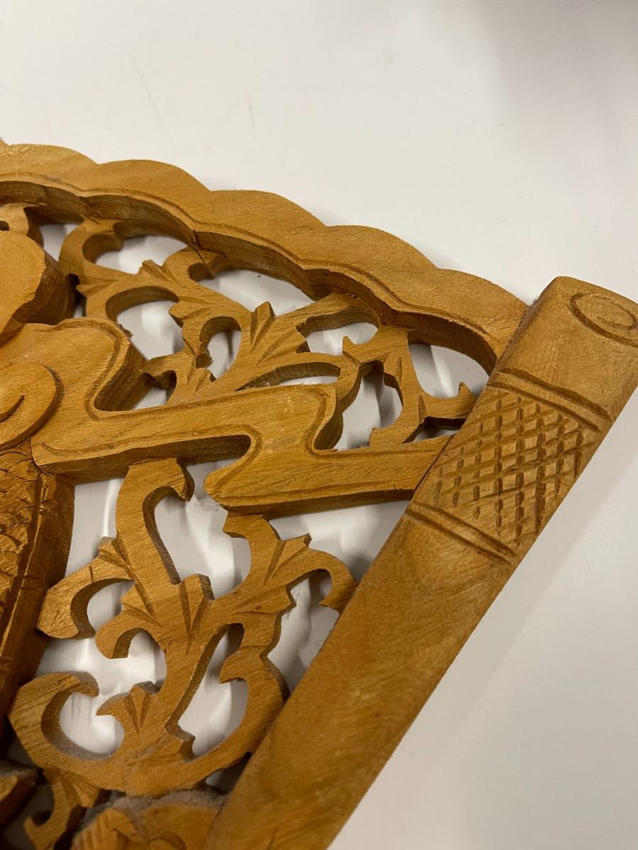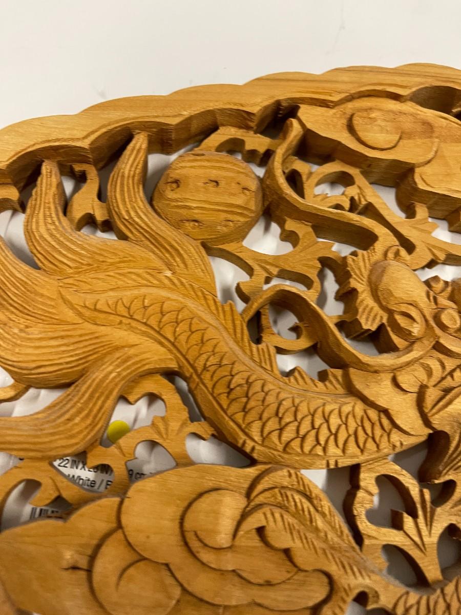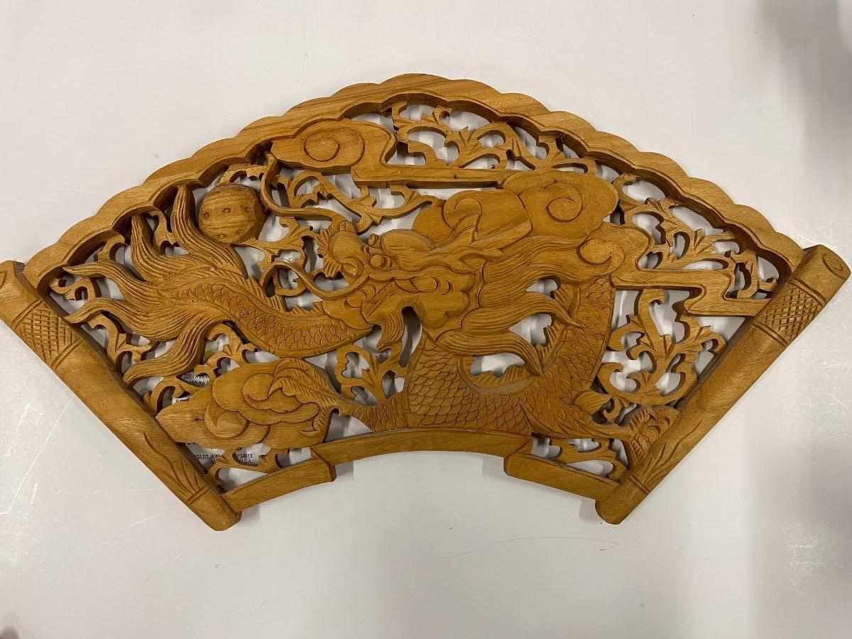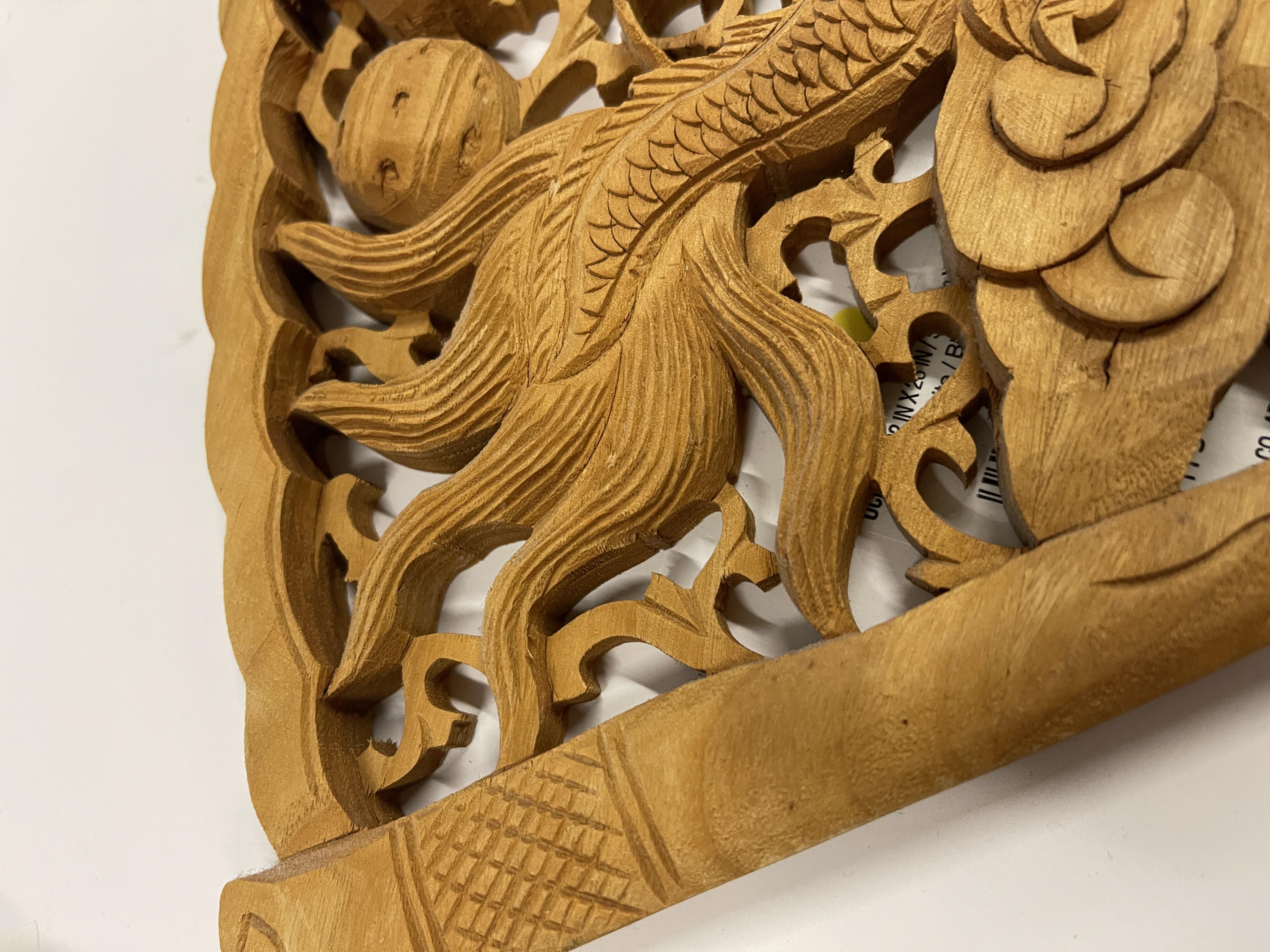 Hand Carved Asian Themed Wood Relief