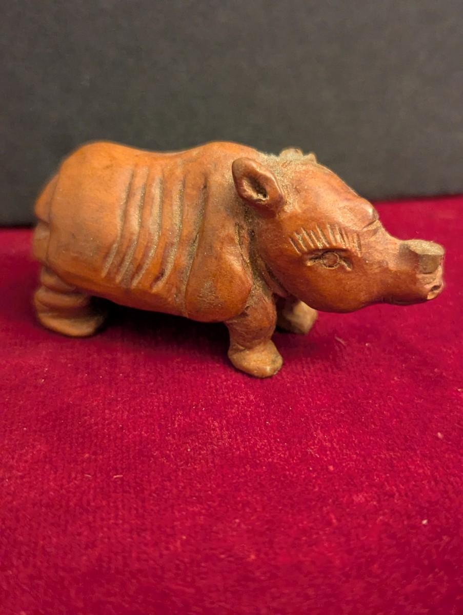 Hand Carved Boxwood Netsuke Rhino Animal #97