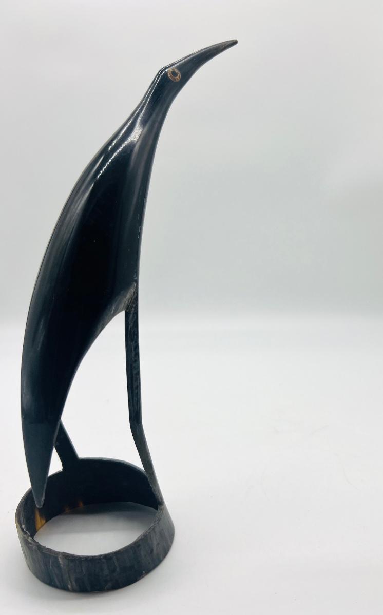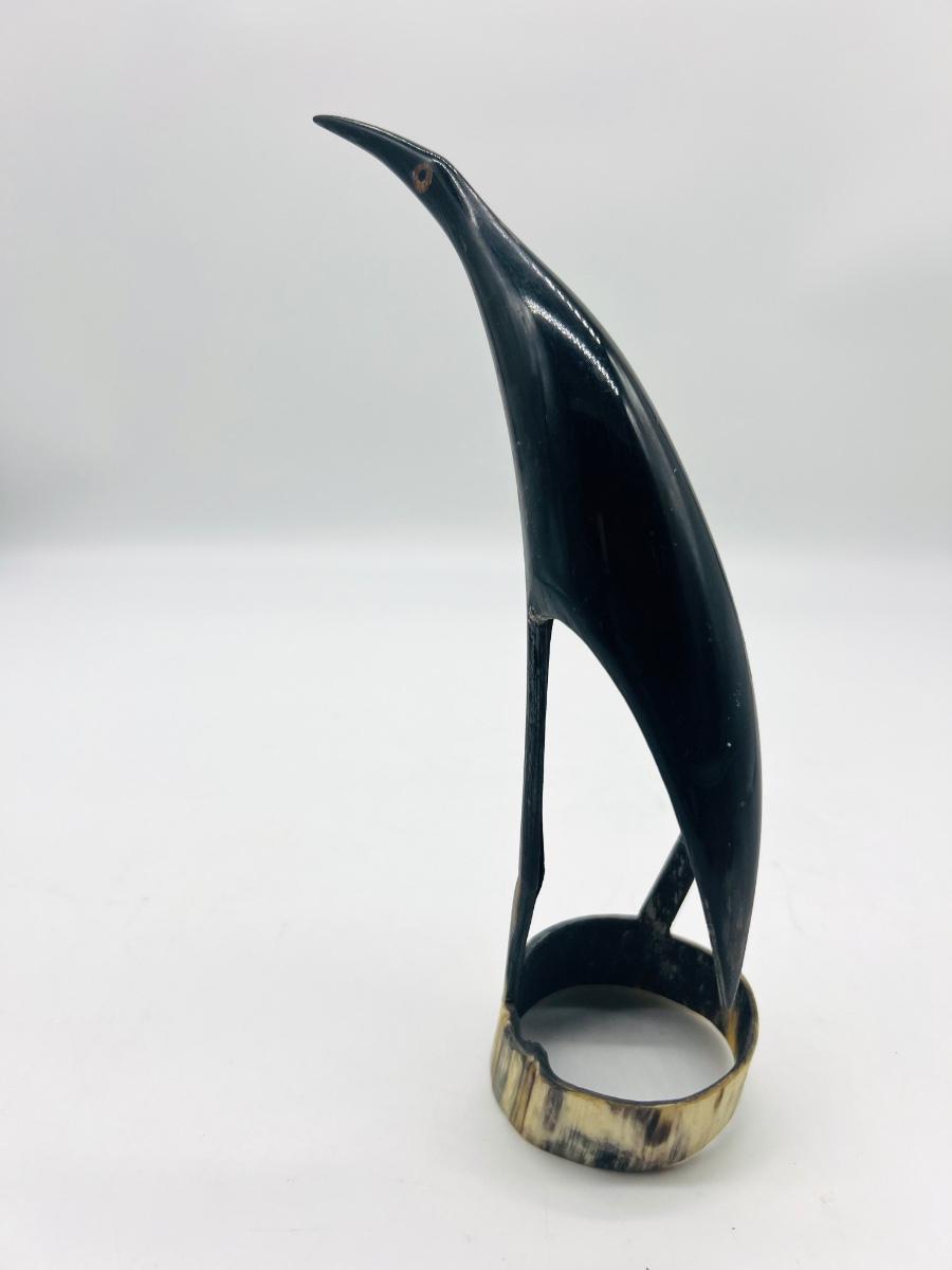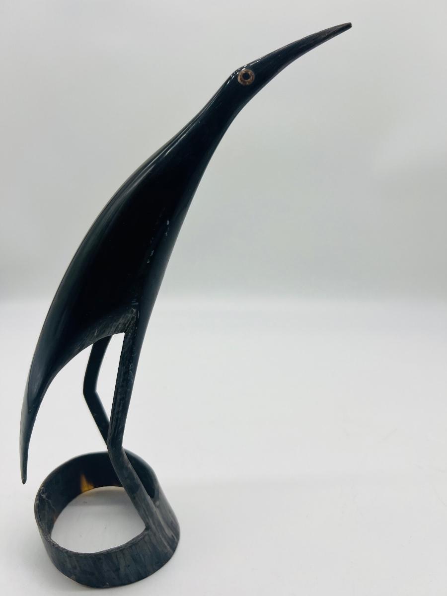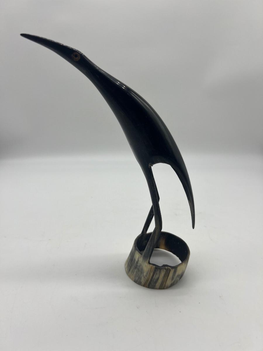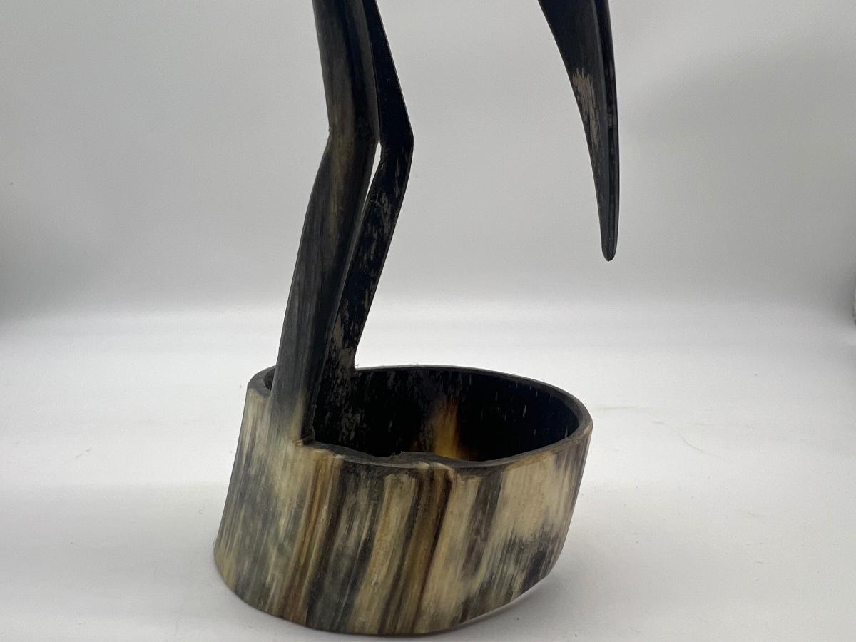 Hand Carved Bull Horn Heron Measures 9 1/2 inches at its tallest.