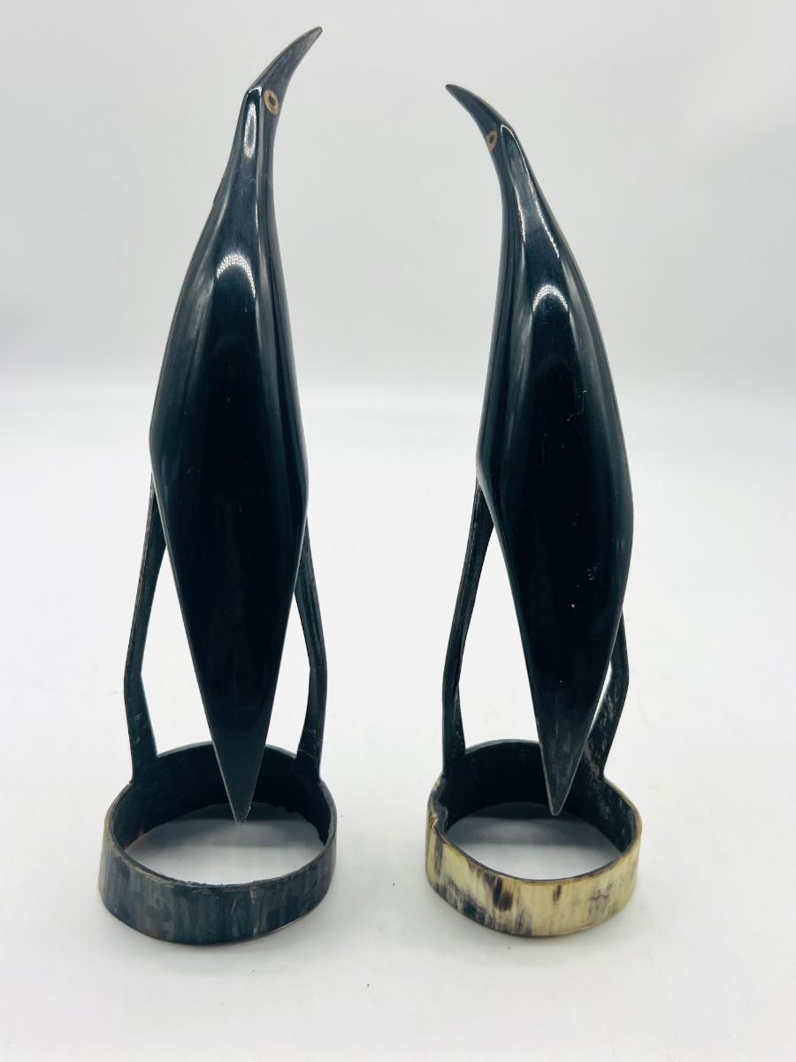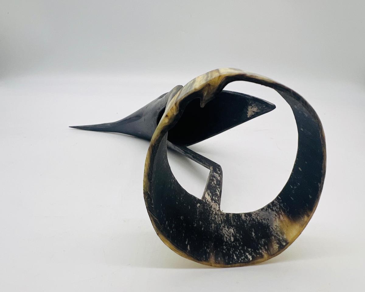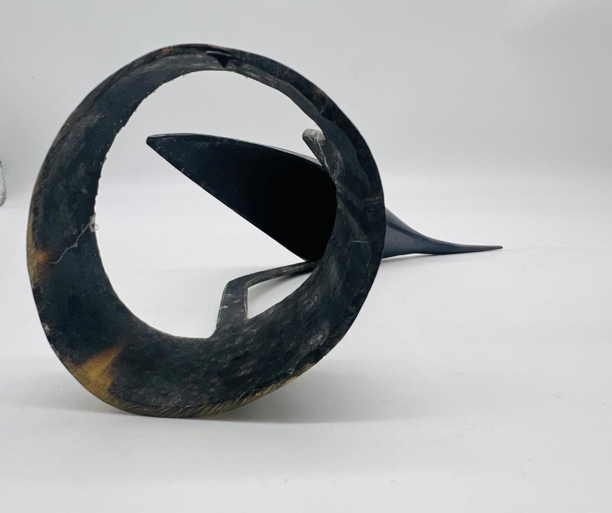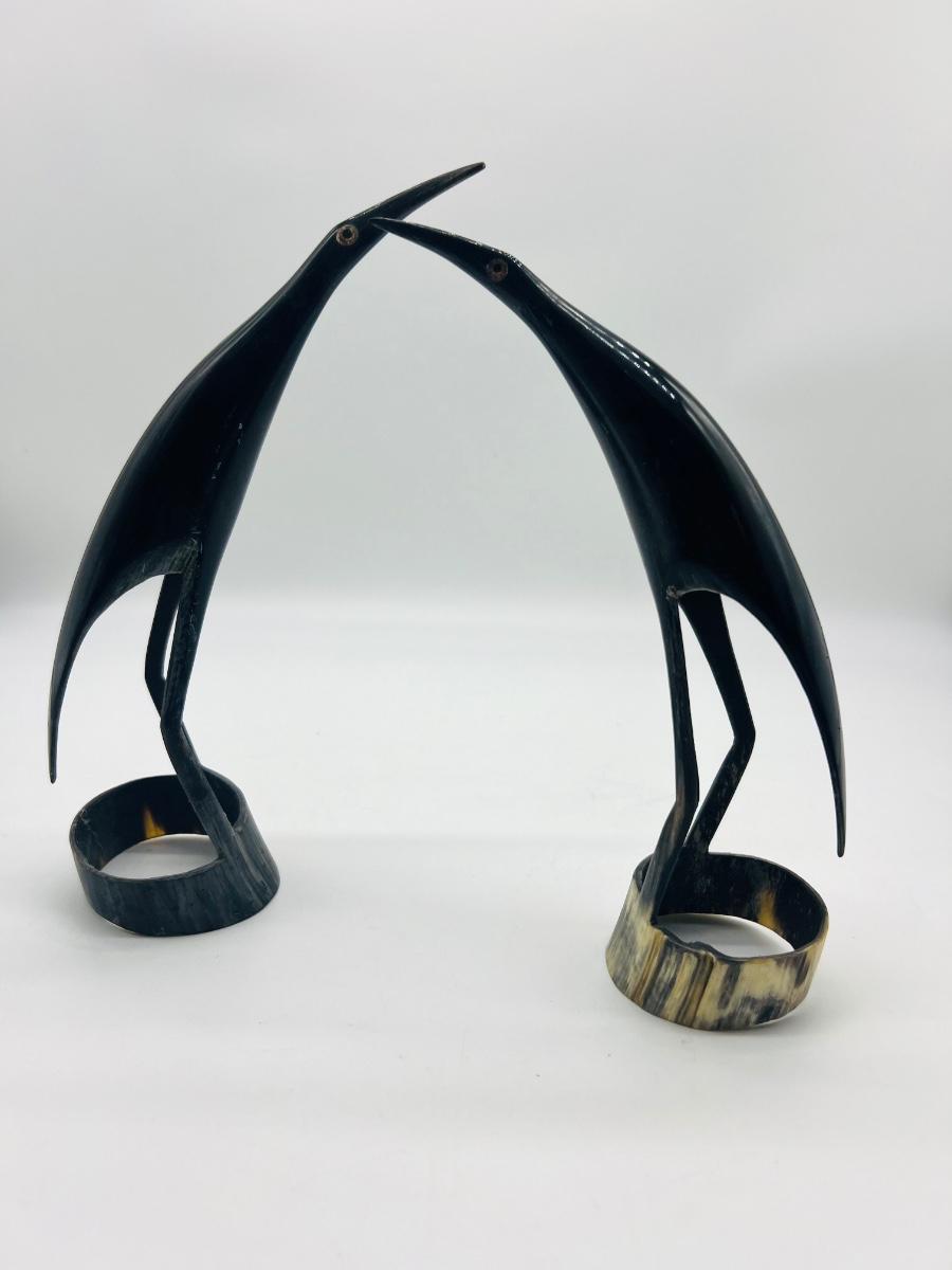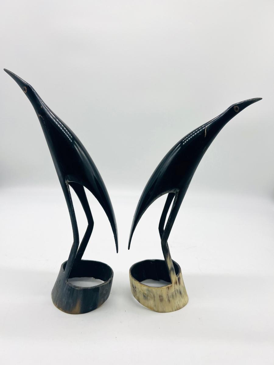Hand Carved Bull Horn Heron Measures 9 1/2 inches at its tallest.