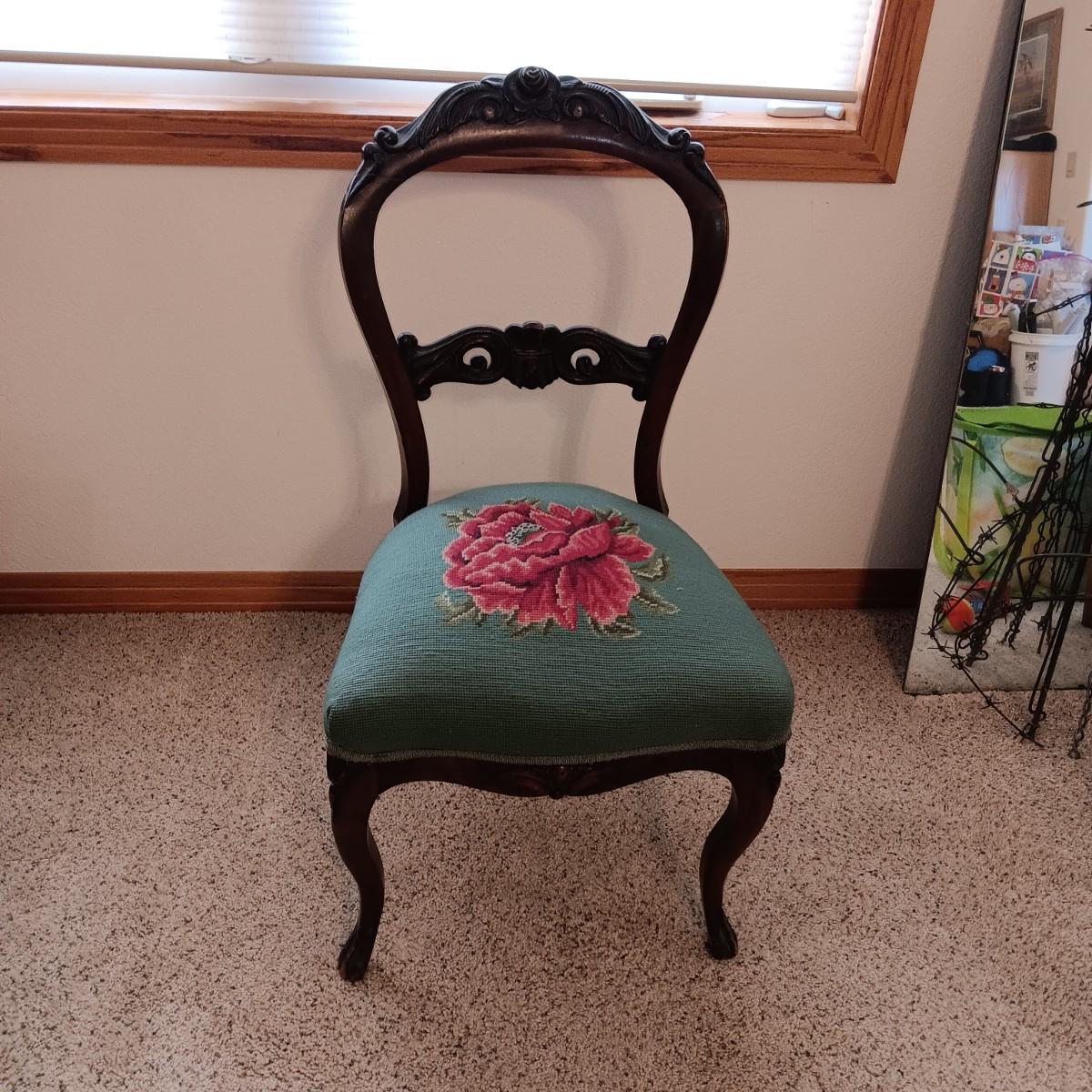 HAND CARVED CHAIR WITH NEEDLEPOINT SEAT