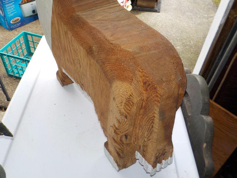 Approx. 28:height x 32" x 10". Real nice carved out of a solid block of wood.