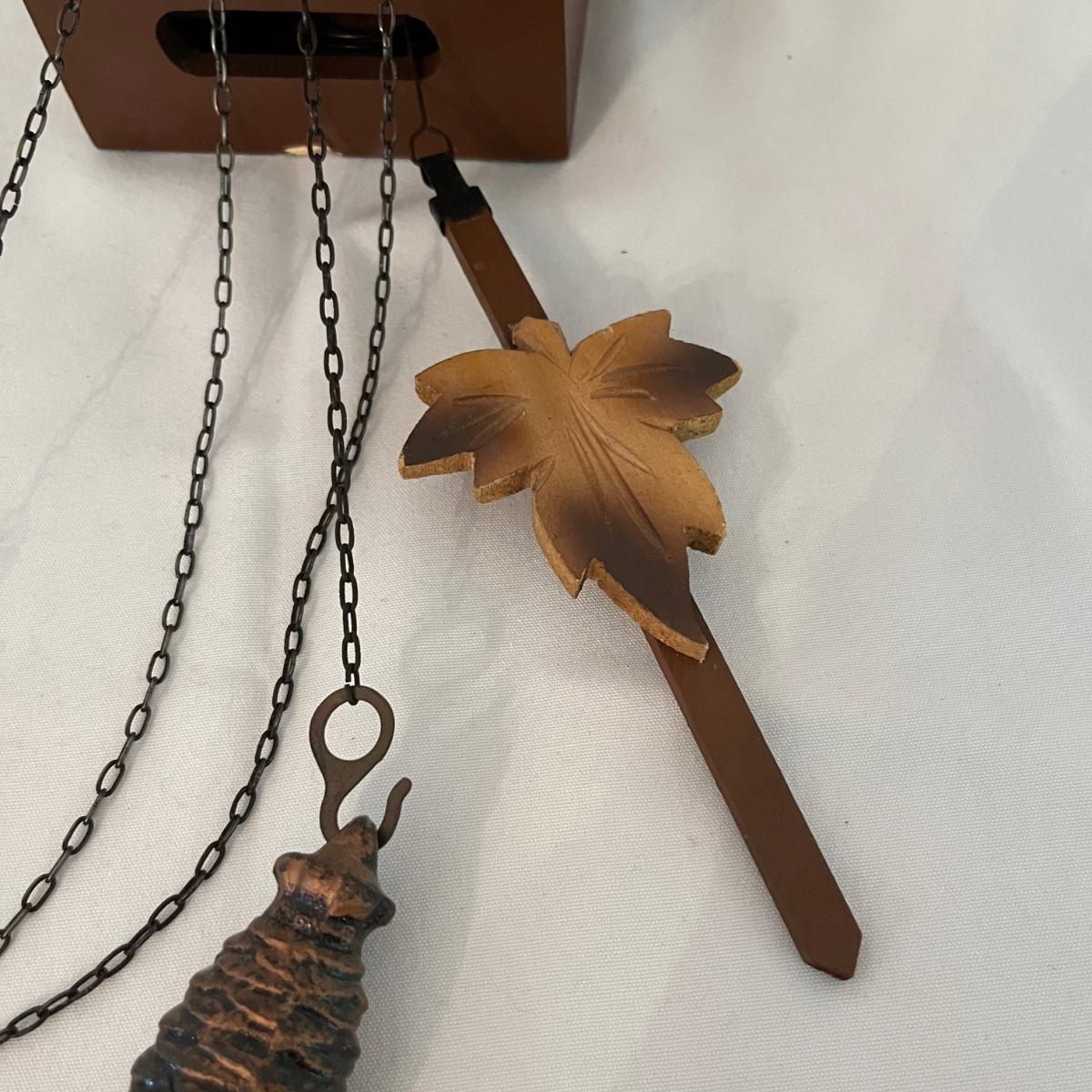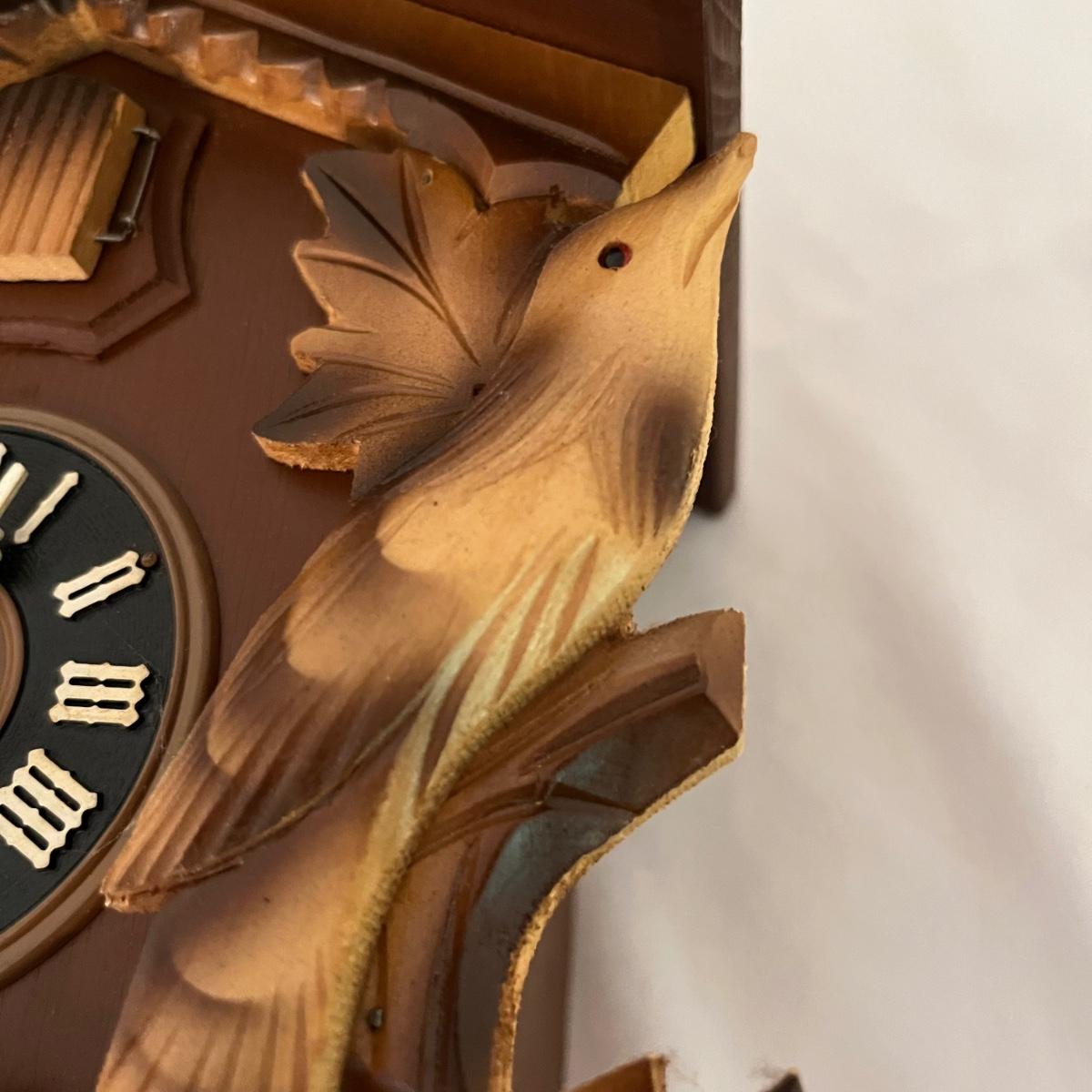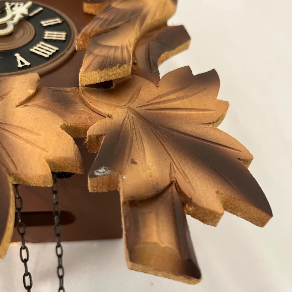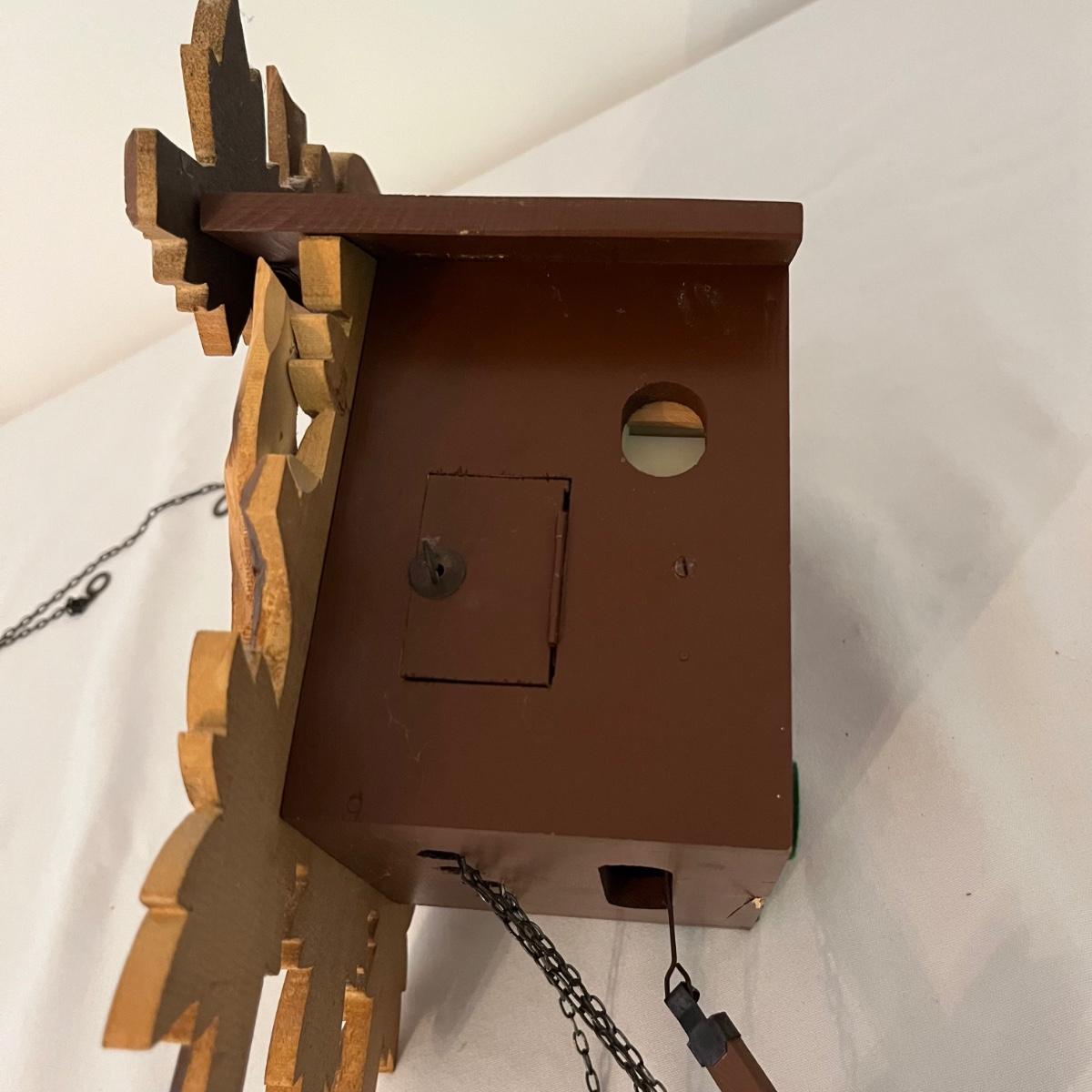 This lot includes one hand carved cuckoo clock with weights. There is one chip on the back of the clock (see photos). Some of the decor on the clock is attachable (see photos). The clock measures about 8.5” x 11.5” x 4.5”H (not including the weights or dangling pieces). Shipping available. Shipping can be costly. We suggest contacting our preferred local shipping provider, Postage Express, with dimensions and getting an estimate before bidding: (828) 670-5501.