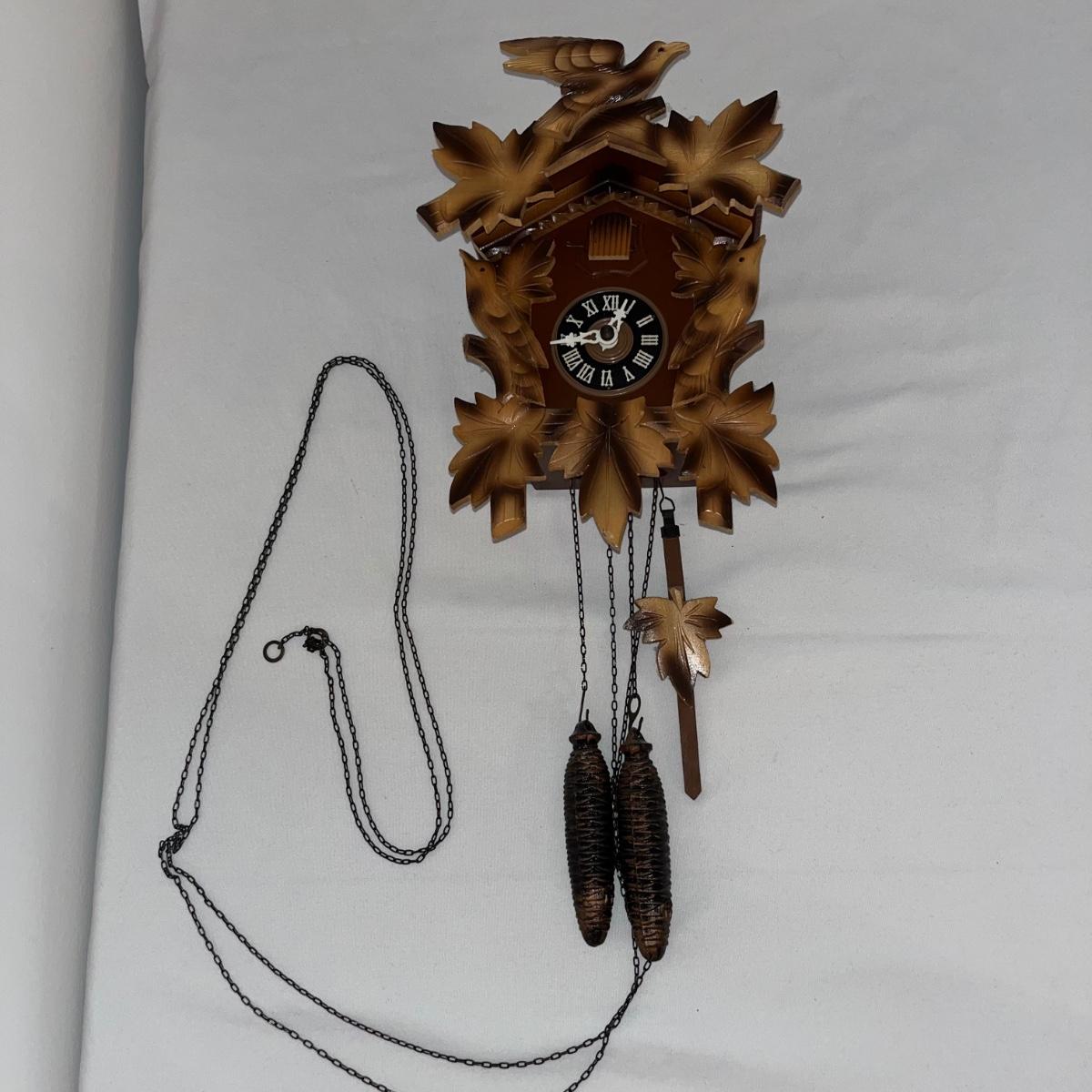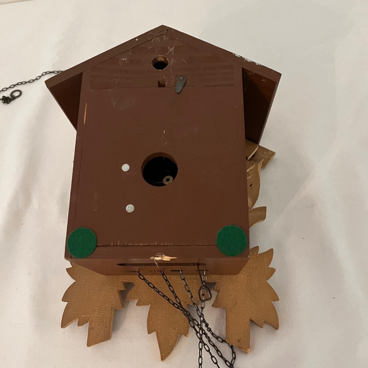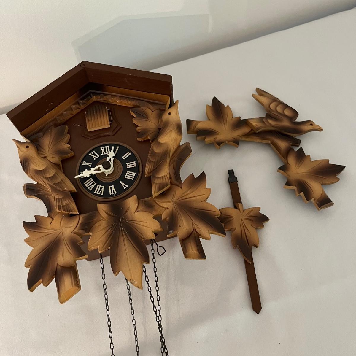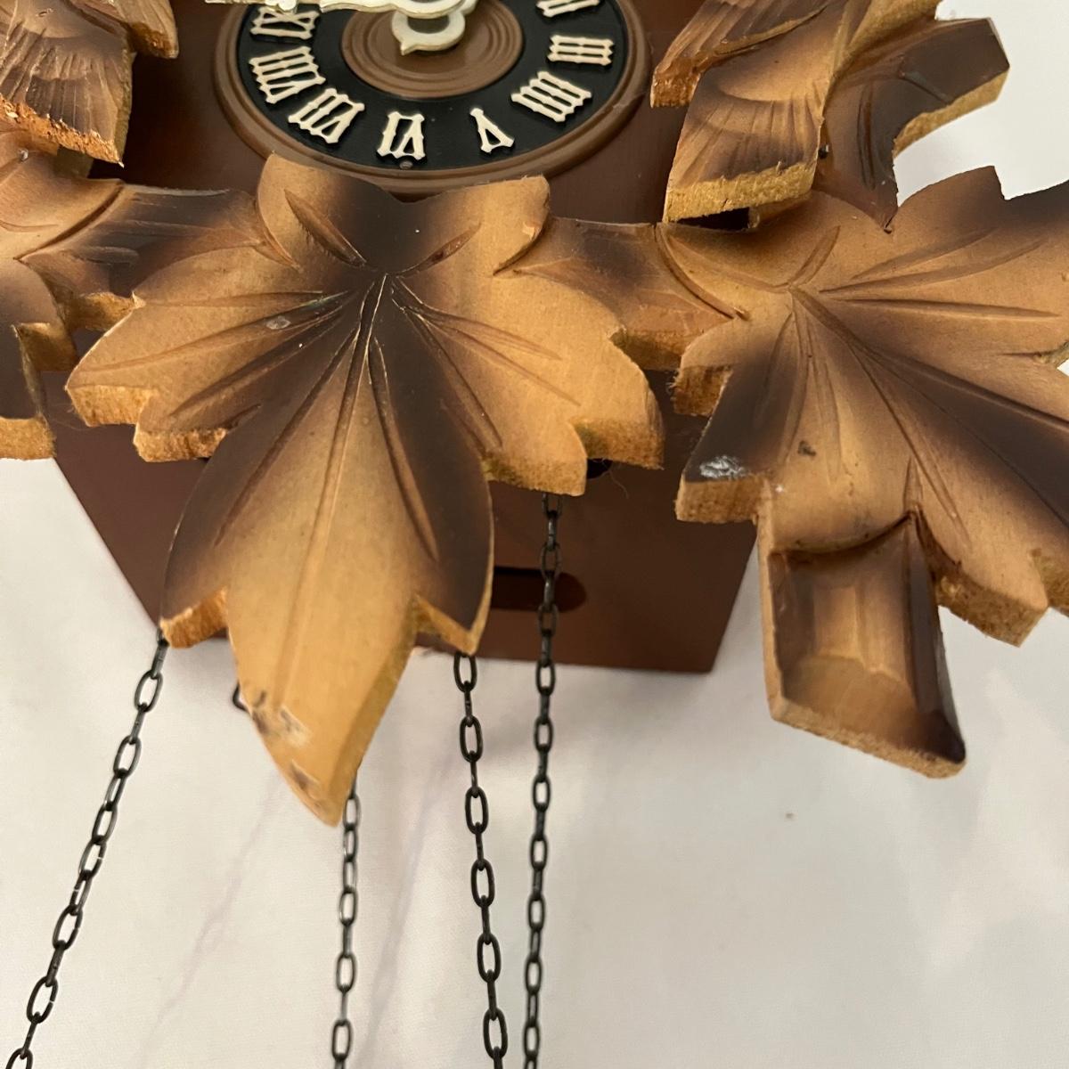 This lot includes one hand carved cuckoo clock with weights. There is one chip on the back of the clock (see photos). Some of the decor on the clock is attachable (see photos). The clock measures about 8.5” x 11.5” x 4.5”H (not including the weights or dangling pieces). Shipping available. Shipping can be costly. We suggest contacting our preferred local shipping provider, Postage Express, with dimensions and getting an estimate before bidding: (828) 670-5501.