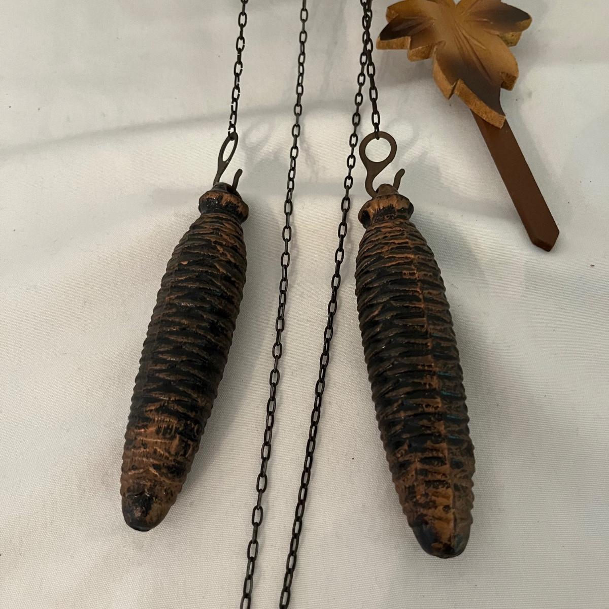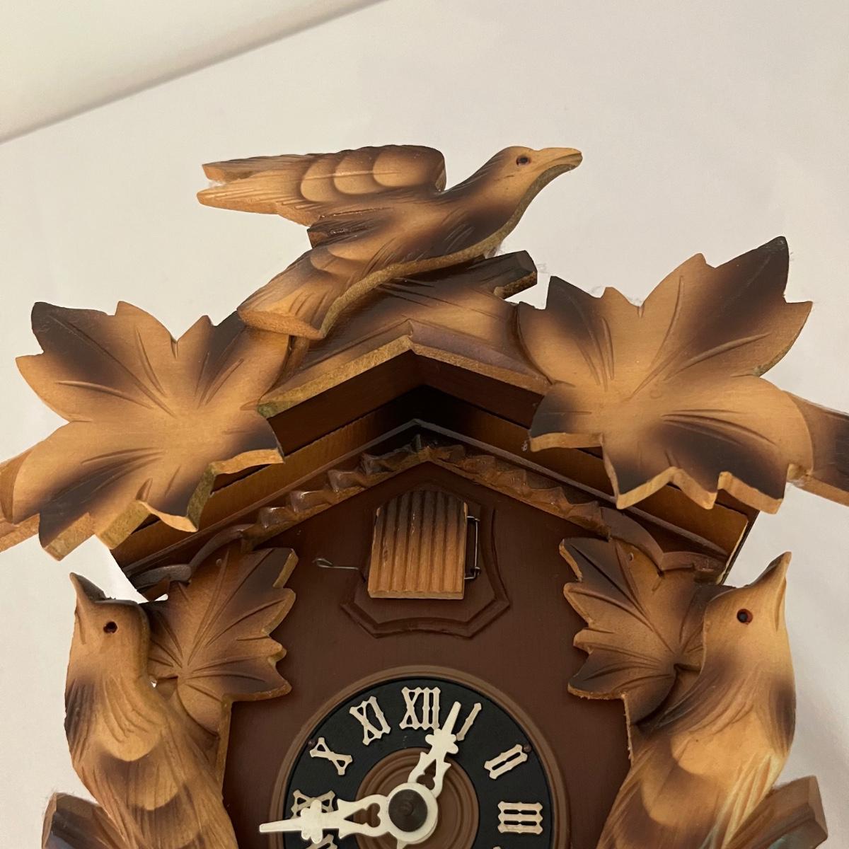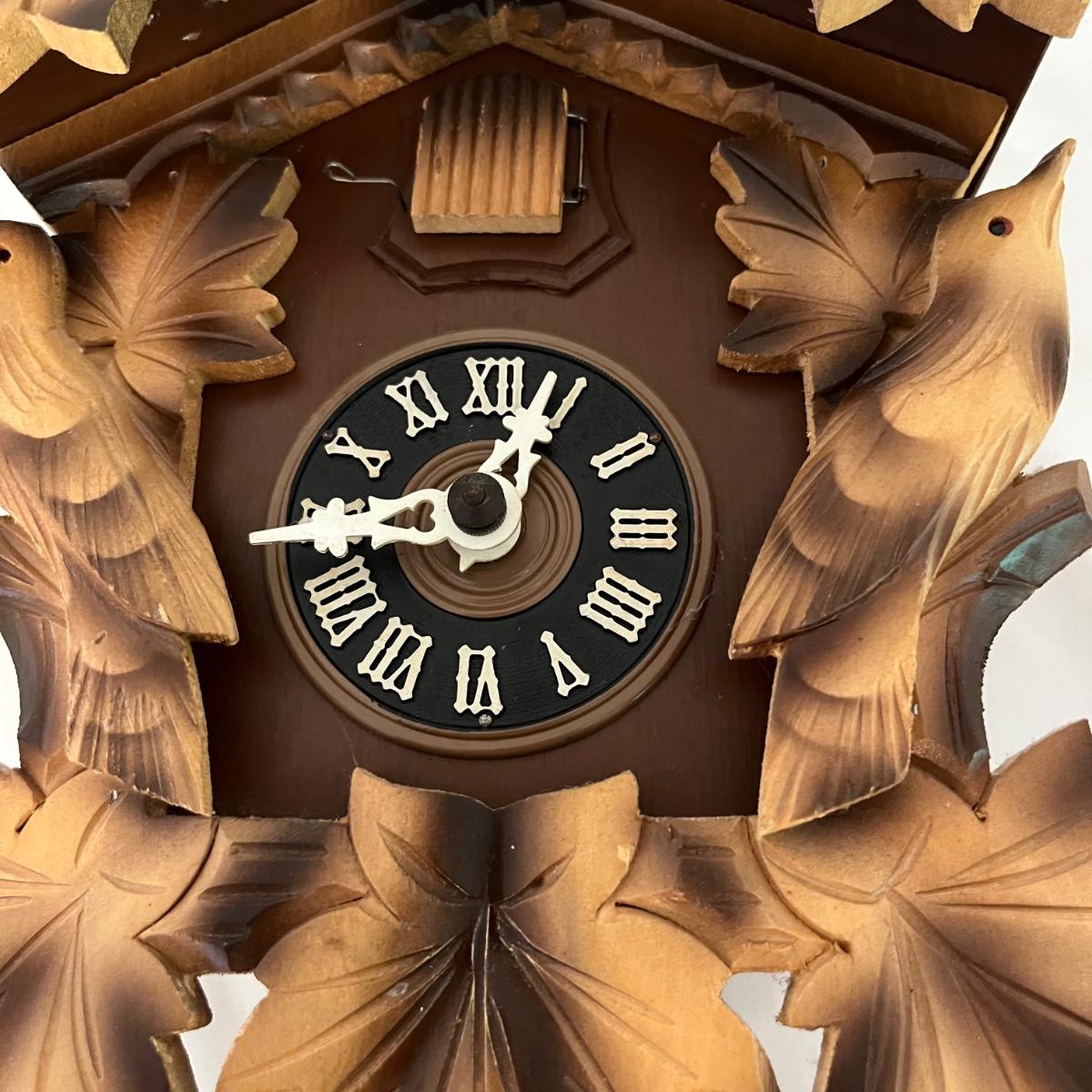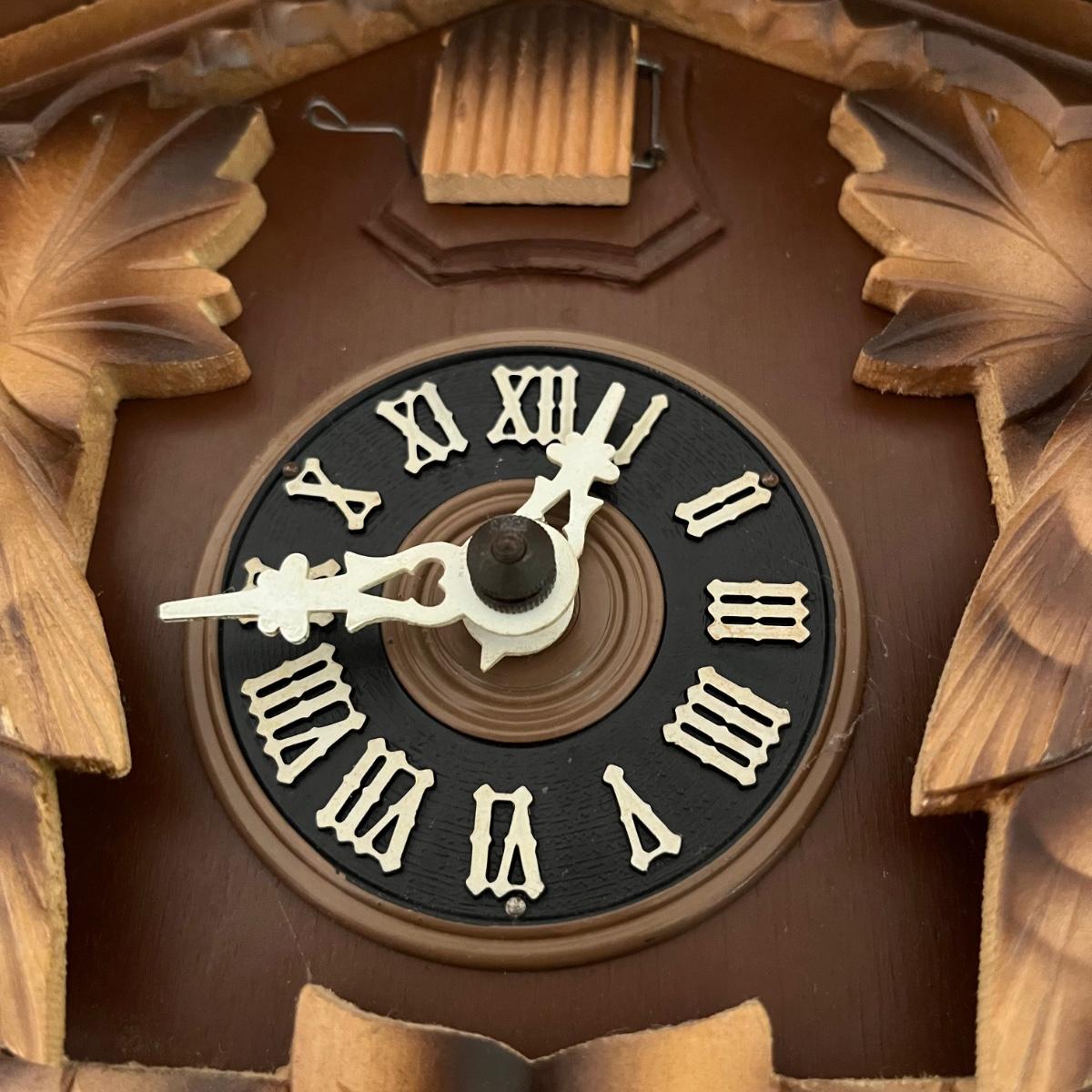This lot includes one hand carved cuckoo clock with weights. There is one chip on the back of the clock (see photos). Some of the decor on the clock is attachable (see photos). The clock measures about 8.5” x 11.5” x 4.5”H (not including the weights or dangling pieces). Shipping available. Shipping can be costly. We suggest contacting our preferred local shipping provider, Postage Express, with dimensions and getting an estimate before bidding: (828) 670-5501.